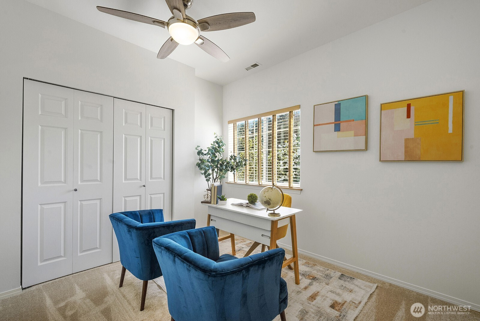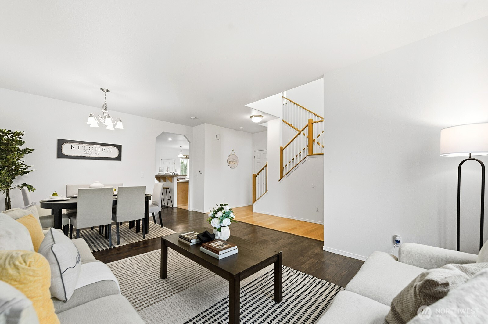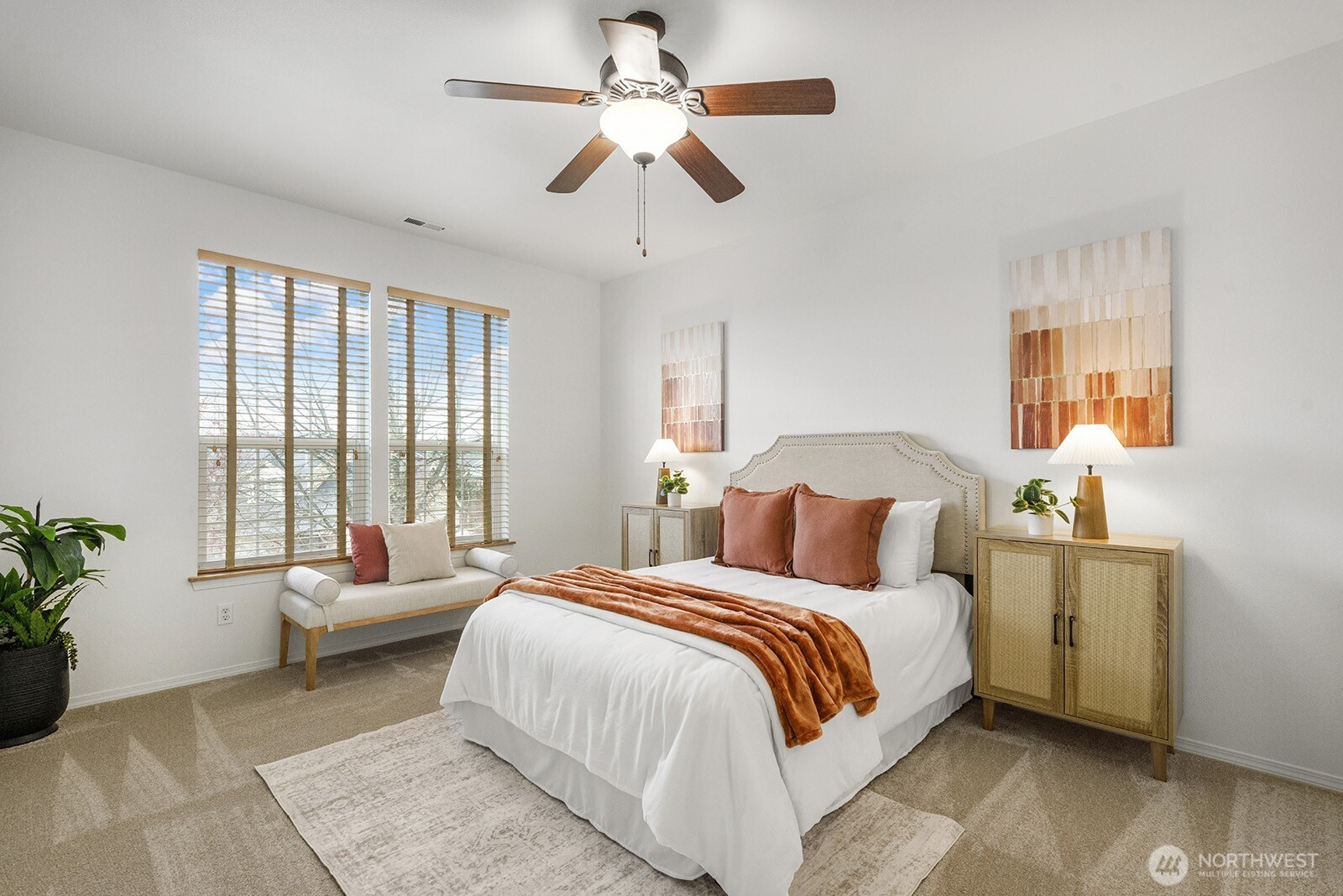 Well-maintained 4 bed, 2.5 bath home designed for comfort and functionality, featuring an open, flowing layout that seamlessly blends formal and casual living spaces. Inviting living and dining areas greet you upon entry, while the open-concept kitchen connects naturally to the family room and dining nook, creating a comfortable setting for both everyday living and entertaining, all centered around a cozy fireplace. The spacious primary suite offers a private retreat with a relaxing 5-piece bath, while three additional bedrooms provide flexibility for guests, a home office, or creative use. Updates include new interior paint, carpet, garage door, and 2021 water heater. Exterior has been refreshed with professional roof and gutter cleaning, along with power-washed concrete. ADT security system with optional monitoring (main-level entries/windows + motion detectors). Last home on alley-access row near community park, cul-de-sac style homes, and extra parking. Minutes to medical, shopping, LA Fitness, dining, and ~30 mins to JBLM, Costco, Hwy 512.