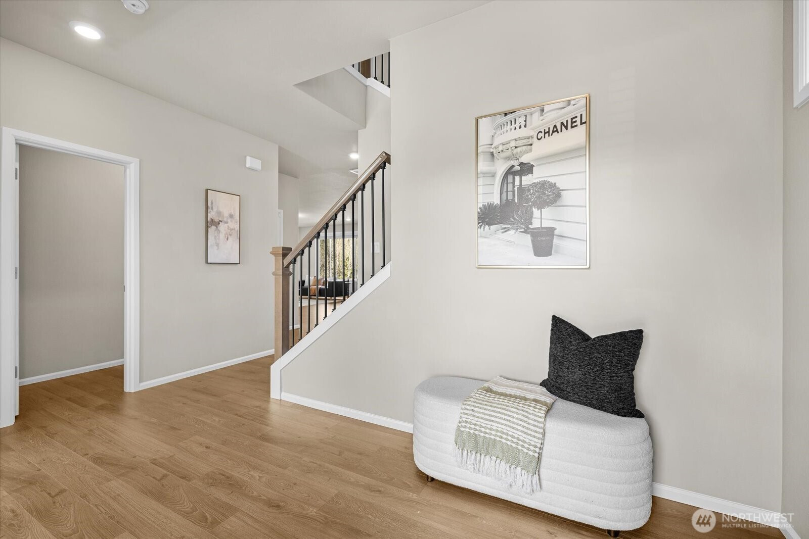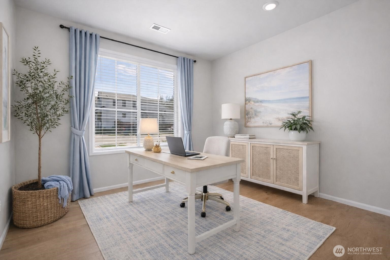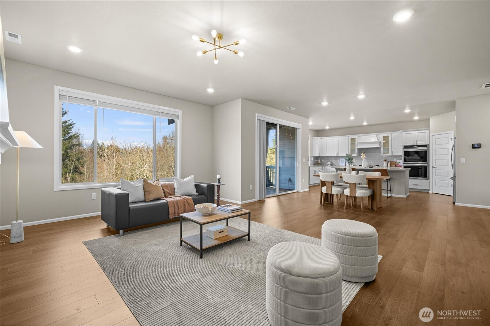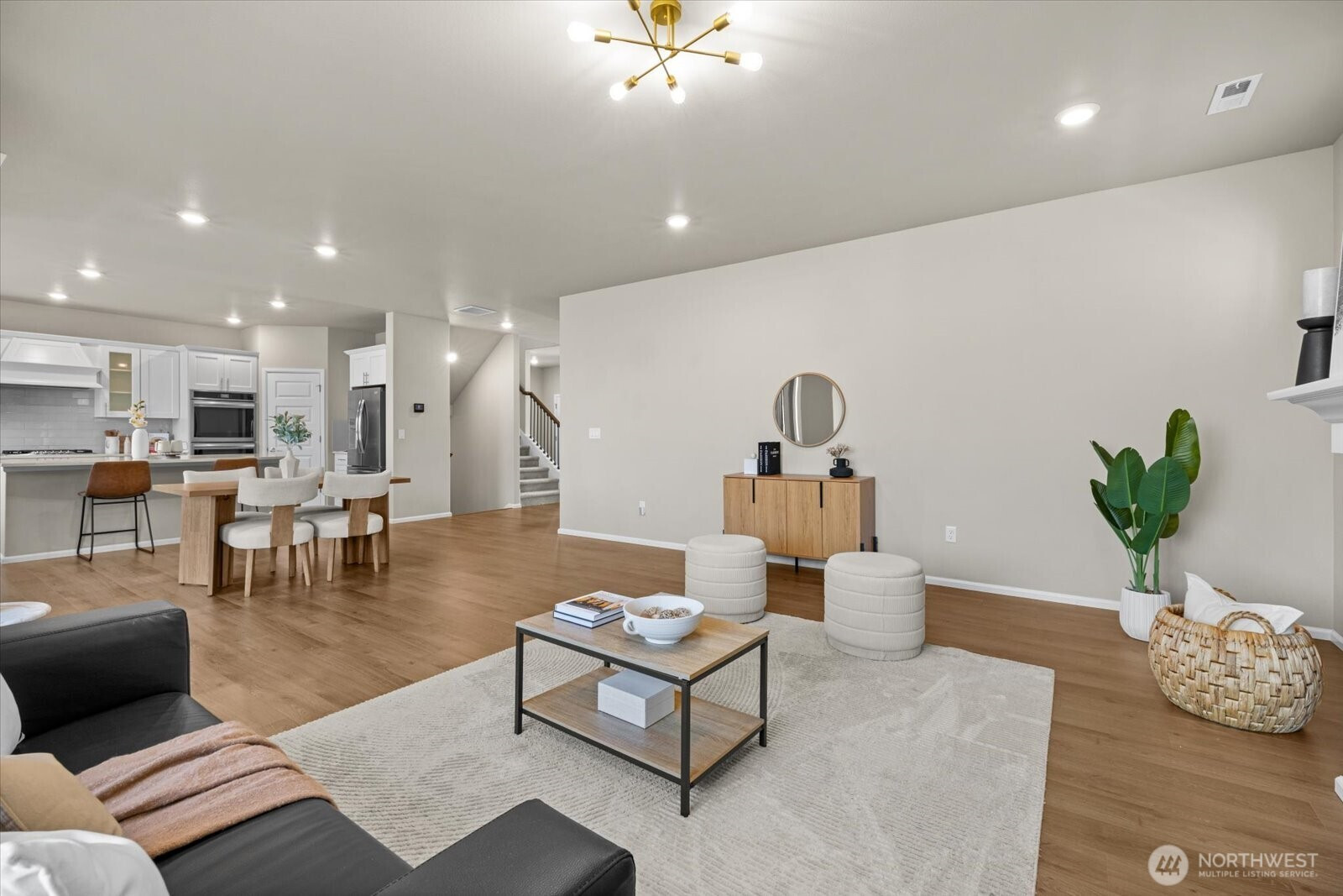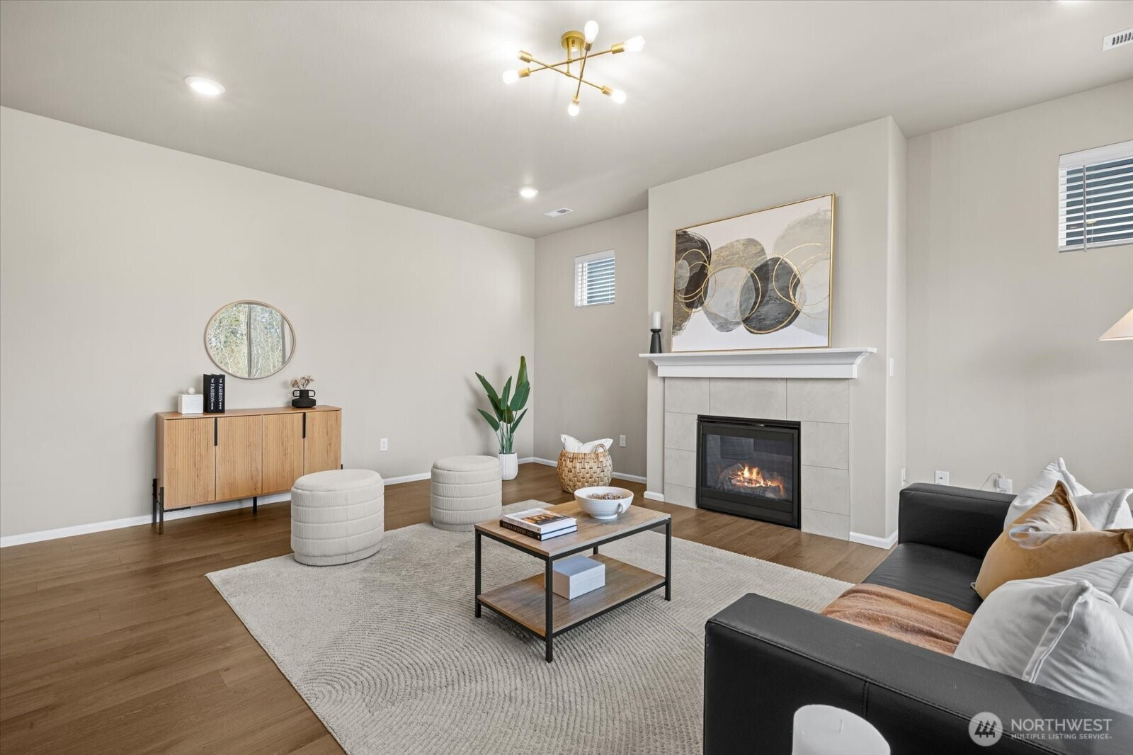 Experience **elevated living** in the **Bailey plan by Lennar** in sought-after Eagle Ridge at Tehaleh. **Blending craftsman design with modern style**, this thoughtfully designed home welcomes you with **soaring ceilings and abundant natural light**, creating an open, inviting space perfect for everyday living and entertaining. The chef’s kitchen features designer cabinetry, quartz countertops, an expansive island, premium stainless steel appliances, a spacious pantry, **top grade fixtures**, a sunlit dining nook, and **striking glass subway tile** backsplash. It flows seamlessly into the cozy **living room**, where a gas fireplace with **elegant tile** adds warmth and charm. A main-level **office room** offers flexibility and can easily convert into a guest bedroom. Upstairs includes a versatile loft, convenient laundry, and spacious bedrooms, including a serene primary suite with a **custom built-in closet** and spa-inspired bath. The basement offers incredible versatility—perfect for entertaining or easily converted into a MIL suite. Enjoy year-round outdoor living on the custom deck with wrap-around screens, outdoor curtains, and overhead heater. The yard features natural grass and a **full front sprinkler system** for easy maintenance. Smart home features, nearby trails, parks, and top-rated schools complete this move-in ready home designed for comfort, convenience, and lasting lifestyle appeal.