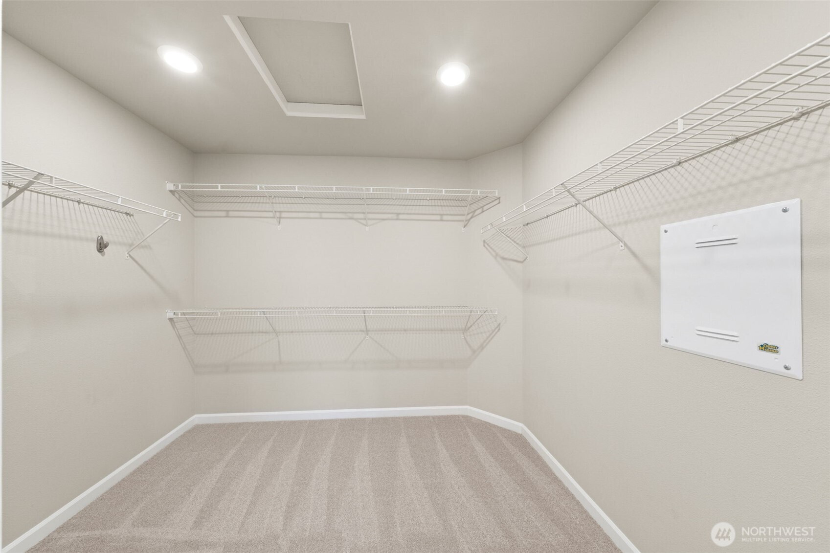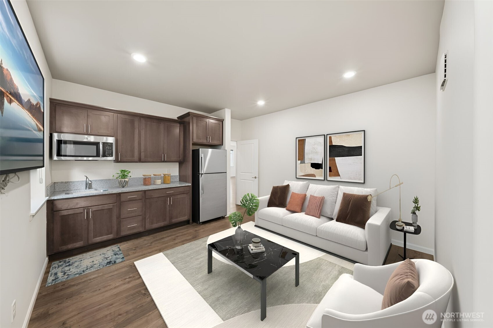 Next Gen Living at it's best! This refreshed home boasts separate living quarters on the main level w/ separate entrance, kitchenette, separate bedroom, 3/4 bath & laundry. The main house is well appointed w/ gourmet kitchen featuring double ovens, gas cooktop, large walk in pantry, open to the enormous great room & dining. Upstairs you'll find 2 lofts/ bonus rms, 2 large bedrooms, roomy laundry room w/ built ins & main bath as well as the generous Primary Suite w/ 5 pc bath & enormous walk in closet. Fresh interior paint & brand new carpet throughout! Outside you'll love the huge deck & low maintenance turf. AC, all appliances stay, Sumner-BL Schools, walking distance to parks, trailheads, dining & more!