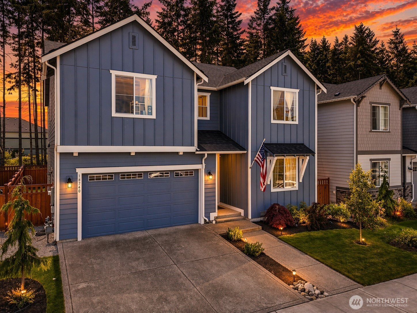 Assumable 4.5% interest rate! Welcome to this inviting board-and-batten clad better-than-new Tehaleh home built in 2022 and upgraded throughout, offering 4 bedrooms plus a loft, 2.75 baths, and 2,899 sq ft of stylish living. Enjoy a designer kitchen with double ovens and an expansive island which opens into an upgraded sunroom and open-concept great room. Stunning gas fireplace and energy-efficient features including a heat pump and tankless water heater. 4 spacious rooms and a primary with greenbelt views. Vibrant community with 40+ miles of trails, 12+ parks, top-rated Sumner-Bonney Lake schools, and nearby dining & shopping. If you’re looking for high ceilings, premium finishes, and a fully fenced yard against a greenbelt, you’ve found it with the best of PNW living!