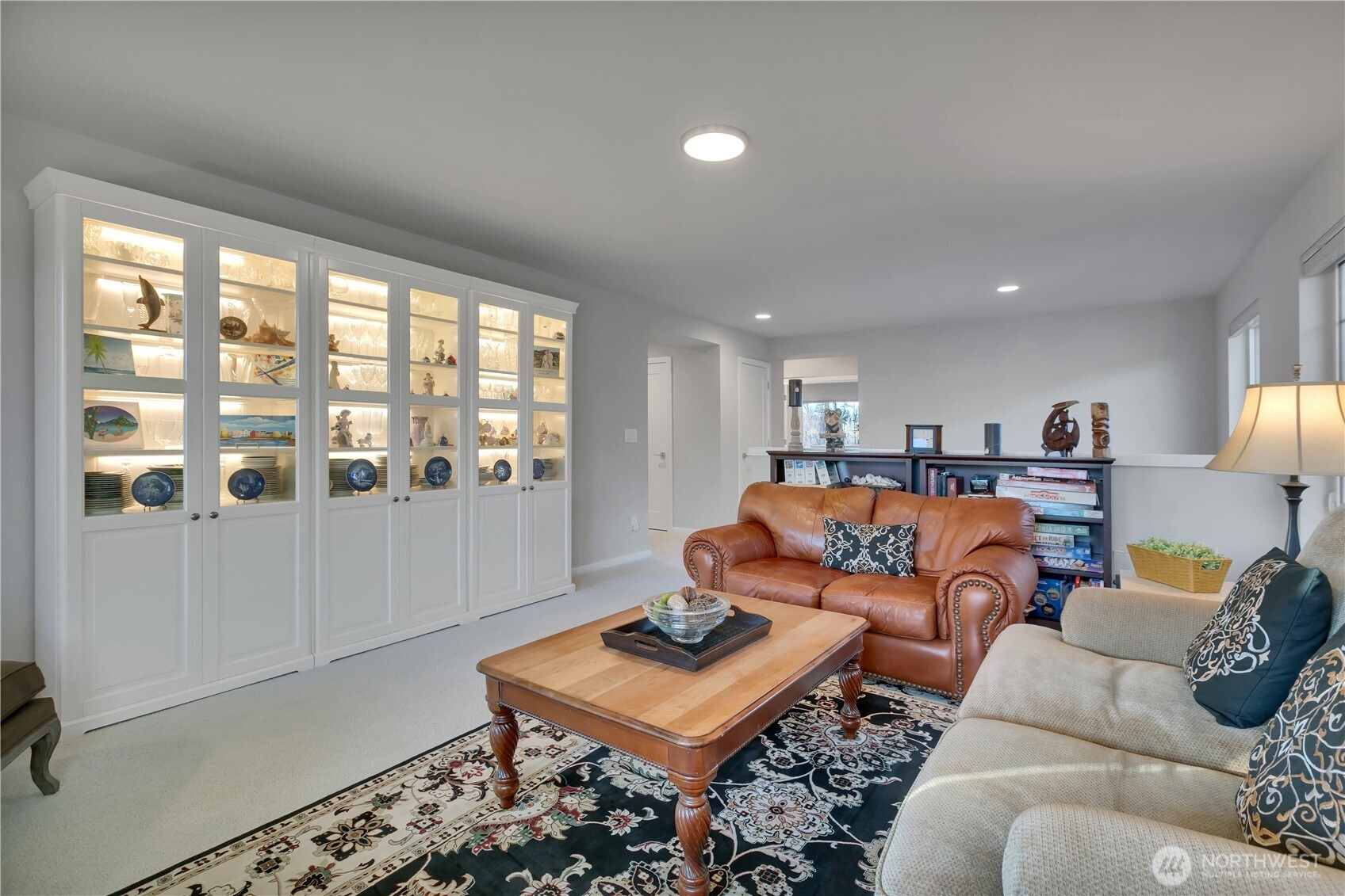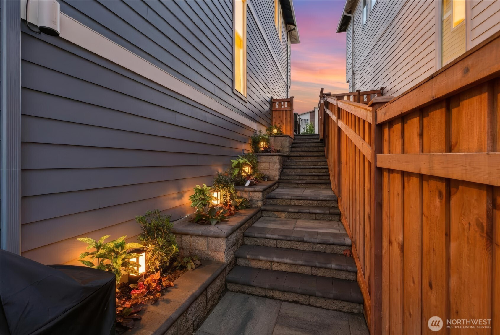 Discover Tehaleh Lifestyle at Eagle Ridge! Backing to private greenbelt w/over $75,000 in builder & custom enhancements! Thoughtfully designed 2-story w/bsmt Trillium floor plan by MainVue is surrounded by trail, pond, greenbelt & breathtaking sunset views. Covered front porch opens to entry & formal dining rm. Custom Graber blinds on all windows! A plethora of natural light from Lg windows in Great rm frame picturesque views. Oversized sliding glass door opens to 1 of 2 covered patios, incl. a main-lvl outdoor living area w/gas fireplace & privacy shade; ideal for year-round enjoyment! A sleek modern kitchen showcases European frameless cabinetry, full-height backsplash, oversized island w/bar seating & premium SS appliances w/5-burner gas cooktop. Extensive kitchen storage w/built-in pantry cabinets. LVP floors flow effortlessly through main lvl & primary suite. Custom SMART int/exterior lighting throughout. Upstairs: bonus rm, utility rm & luxurious primary suite w/custom ELFA walk-in closet & spa-inspired 5-pc ensuite bath: free-standing tub, tile floors, dual vanity, private water closet & frameless step-in shower. 3 add'l bdrms & full bath complete upstairs. Lower lvl offers 1bd/1ba w/walk-in closet, covered patio & spacious rec/media rm plumbed for 2nd kitchen; ideal for multi-gen living & entertaining. Professional landscape: gated access, sprinkler sys, paver pathways, garden beds, accent lighting & low-maintenance turf. Award winning Sumner-Bonney Lake School Dist