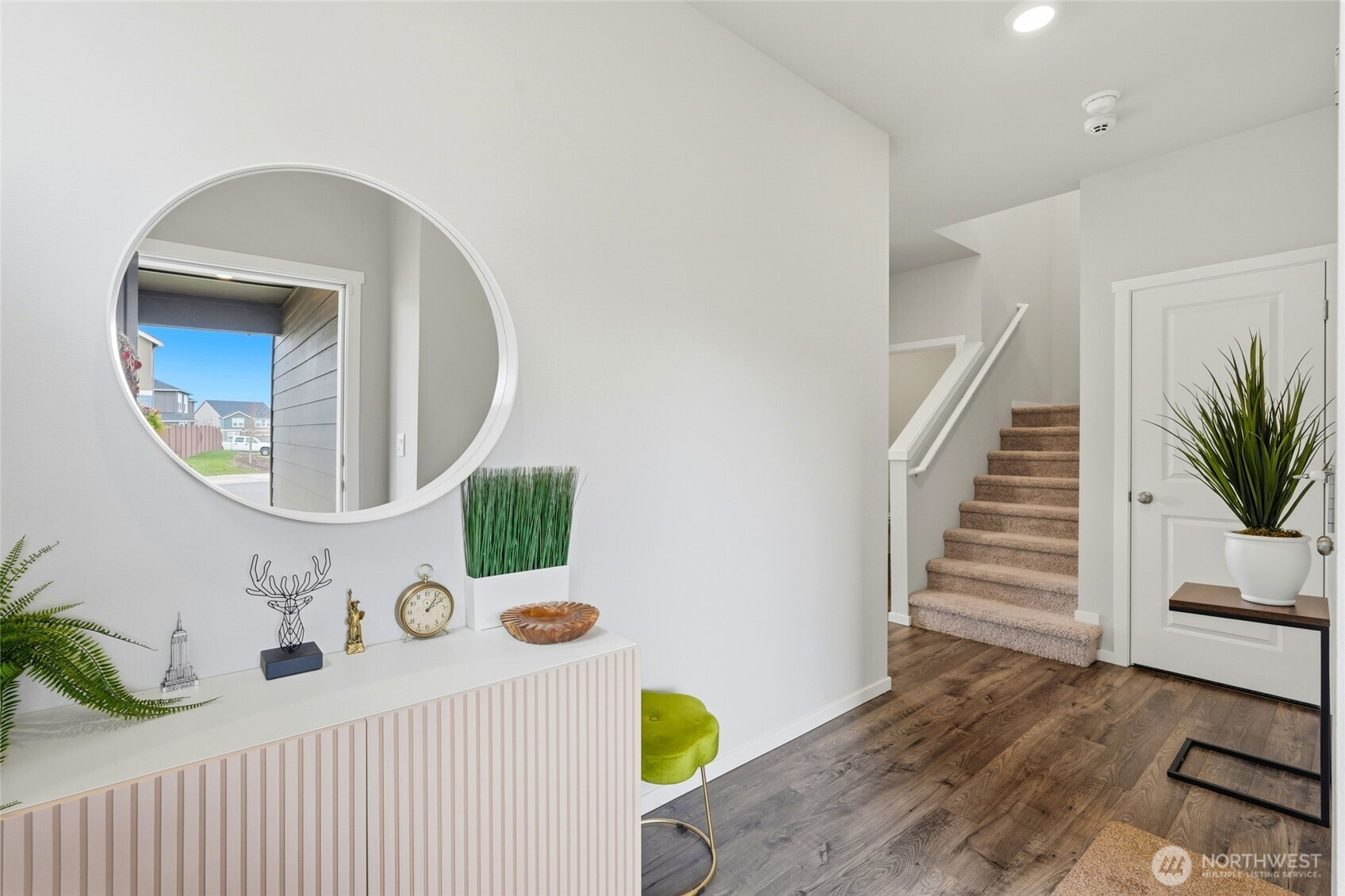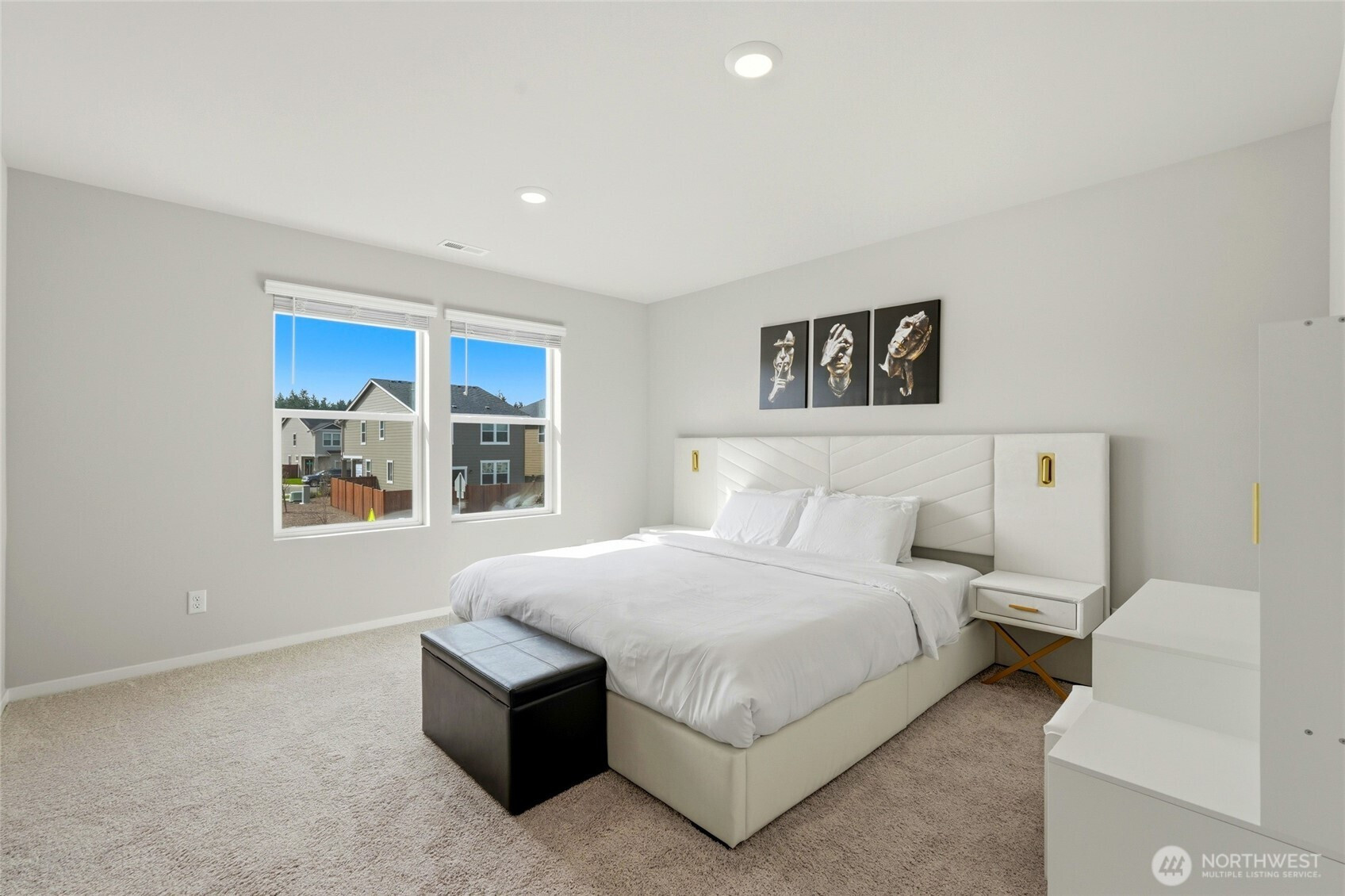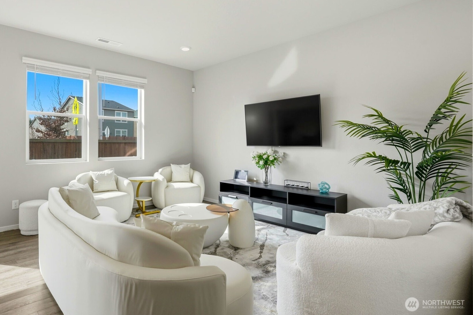 Welcome home to Lipoma Firs, a sought-after master-planned community in Puyallup known for its parks, community clubhouse, and welcoming neighborhood feel. Step inside to an open-concept main level where the spacious kitchen—with stainless steel appliances and ample pantry storage—flows effortlessly into the bright living and dining areas, creating the perfect setting for everyday living and gatherings. Upstairs, a versatile bonus room offers the flexibility for movie nights, a playroom, or a quiet home office. The spacious primary suite provides a relaxing retreat, featuring a beautifully upgraded walk-in closet with custom built-in shelving and a private bath with dual vanities and a walk-in shower. Two additional bedrooms and a full bathroom offer comfortable space for guests. Outside, enjoy the fully fenced backyard—ideal for weekend BBQs, relaxing evenings, or letting pets play freely. Complete with a two-car garage and located near community parks within the highly sought-after Puyallup School District, this home also offers convenient access to shopping, dining, and commuter routes. The remainder of the builder's 10-year warranty will transfer to the new buyer at closing.