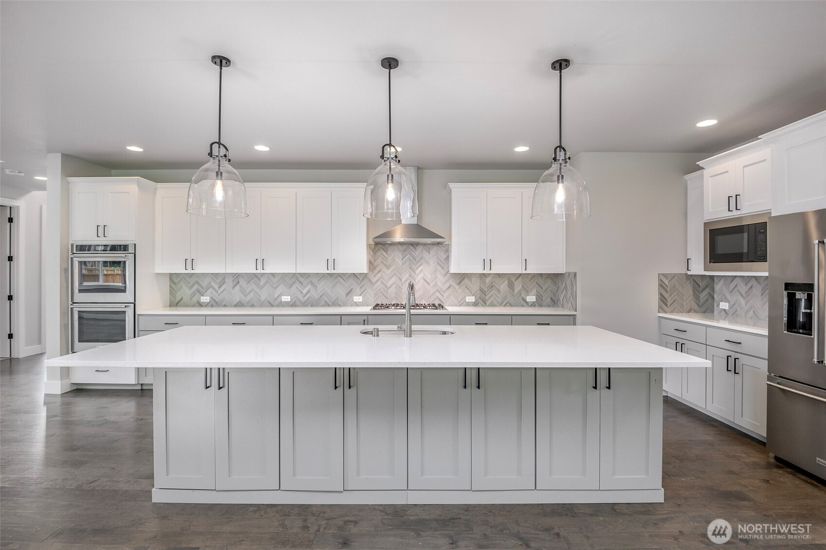 $20K CREDIT FOR RATE BUY-DOWN OR CLOSING COSTS! Just shy of half an acre, this home rests on one of Tehaleh's most desirable lots. Fenced yard with evergreens and large covered patio for all-season living. Inside, a dramatic two-story great room with a gas fireplace anchors the bright, open-concept layout. The chef’s kitchen boasts designer finishes, an oversized island, and a walk-in pantry. A main-floor bedroom and a mudroom with built-ins add convenience. Upstairs, a versatile loft complements four spacious bedrooms, including a serene primary suite with dual walk-in closets and a spa-like 5-piece bath. The 3-car + RV garage w/ EV charging, epoxy floors, plus heating and cooling, completes this impressive property. Sumner/BL schools!