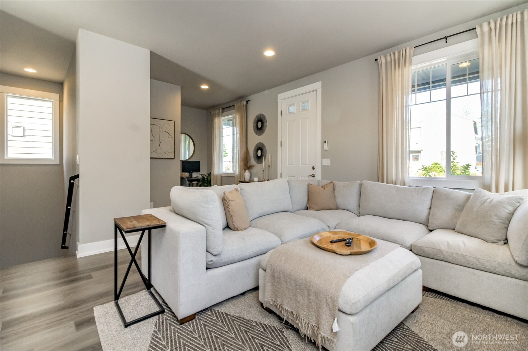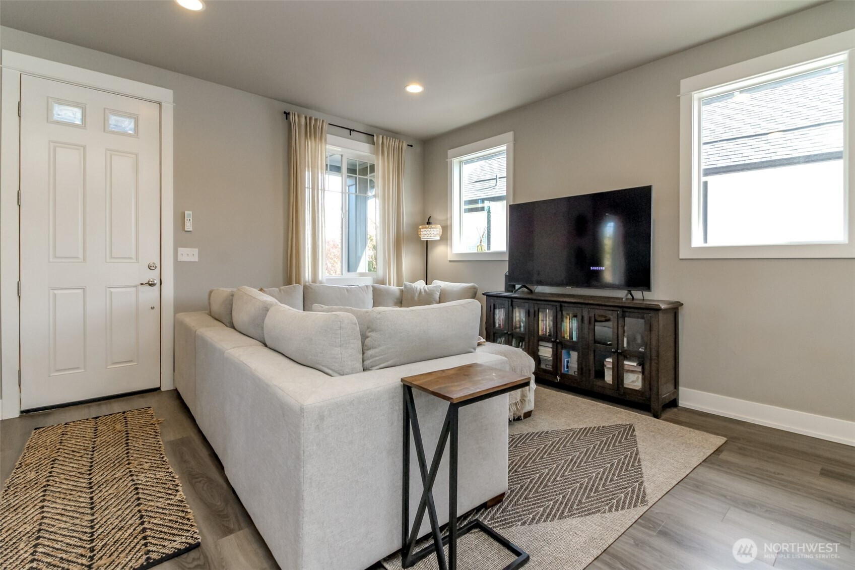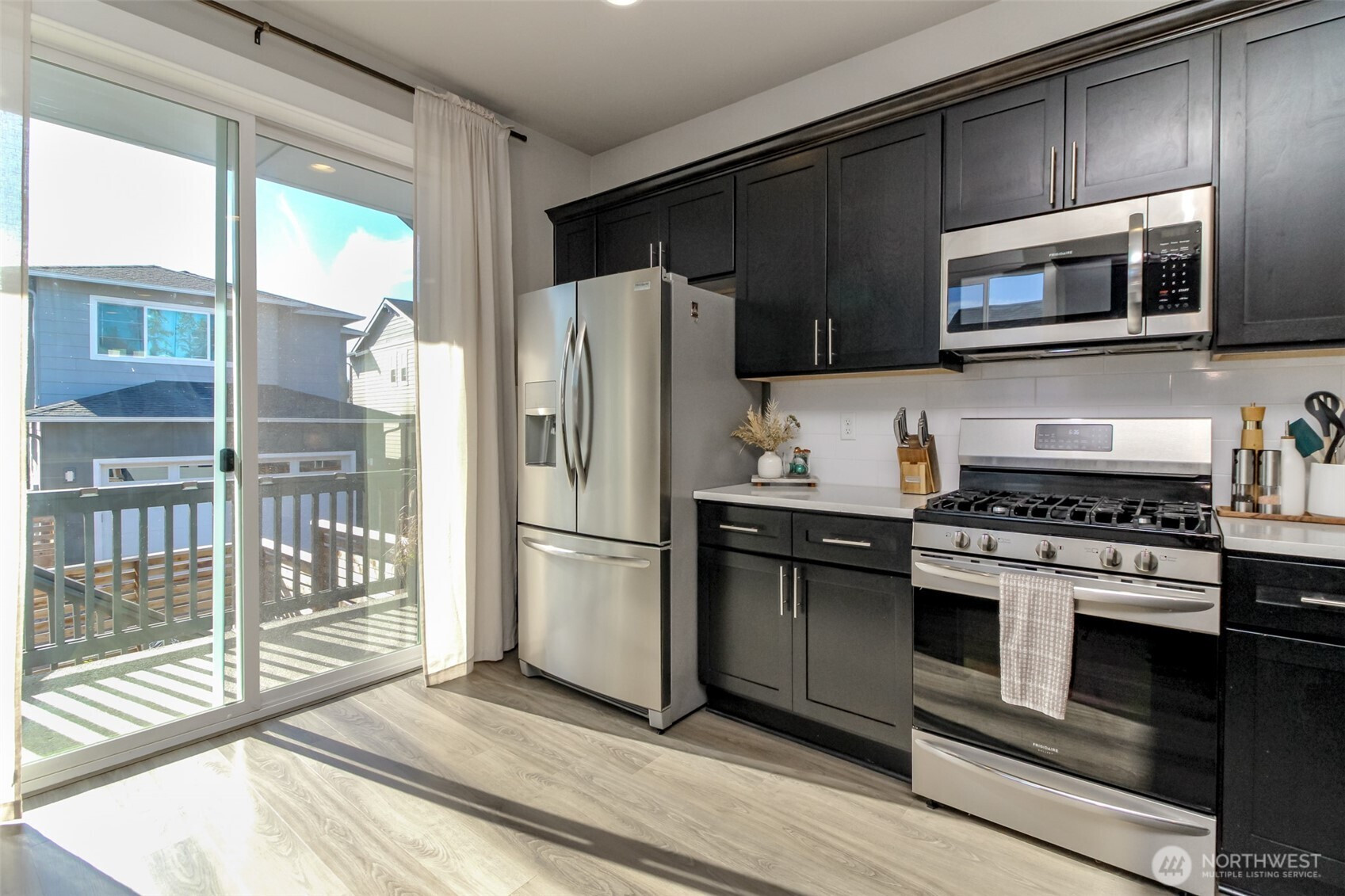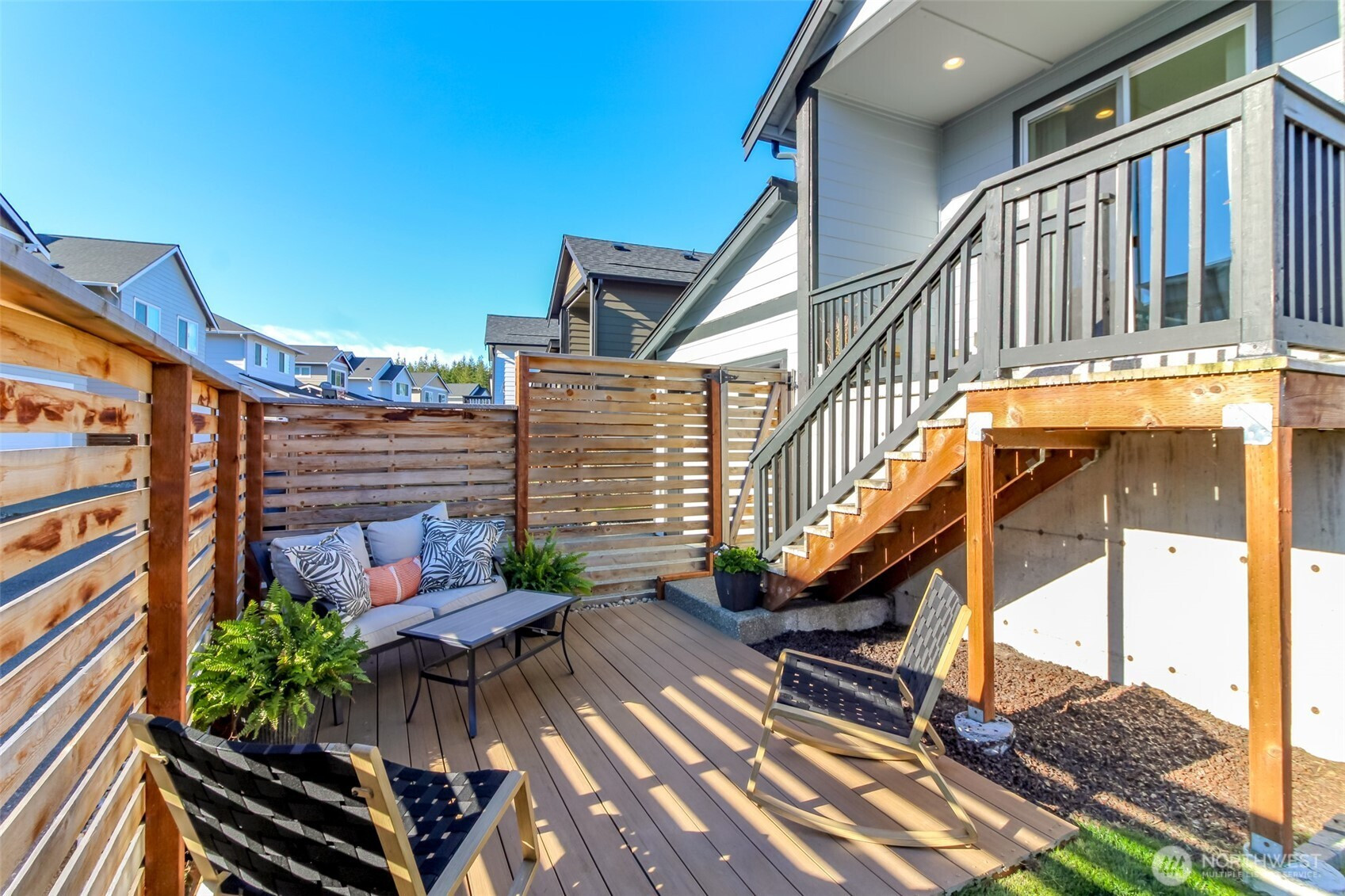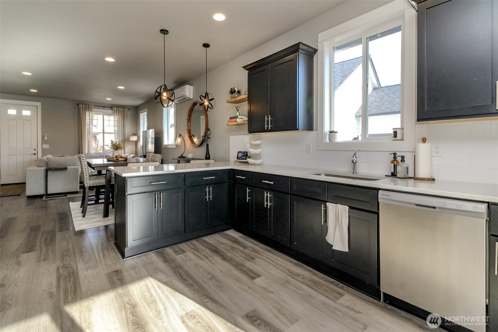 This Tehaleh Charmer perfectly blends modern style with cozy comfort. Featuring 3-Bedrooms & 2 Baths. Step inside to a light filled living space that show cases the open concept living. Kitchen has sleek quartz counter tops that complement the rich cabinets creating a functional layout. Additionally the main level has a great office nook for convenience of working from home. Head down stairs to 3 bedrooms, Utility room and full bath. The fenced yard is low maintenance with just the right amount of space. Whether enjoying the covered front porch or covered back deck during all seasons. This home location is prime and close to all the ammenitys the community has to offer!