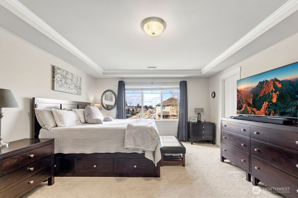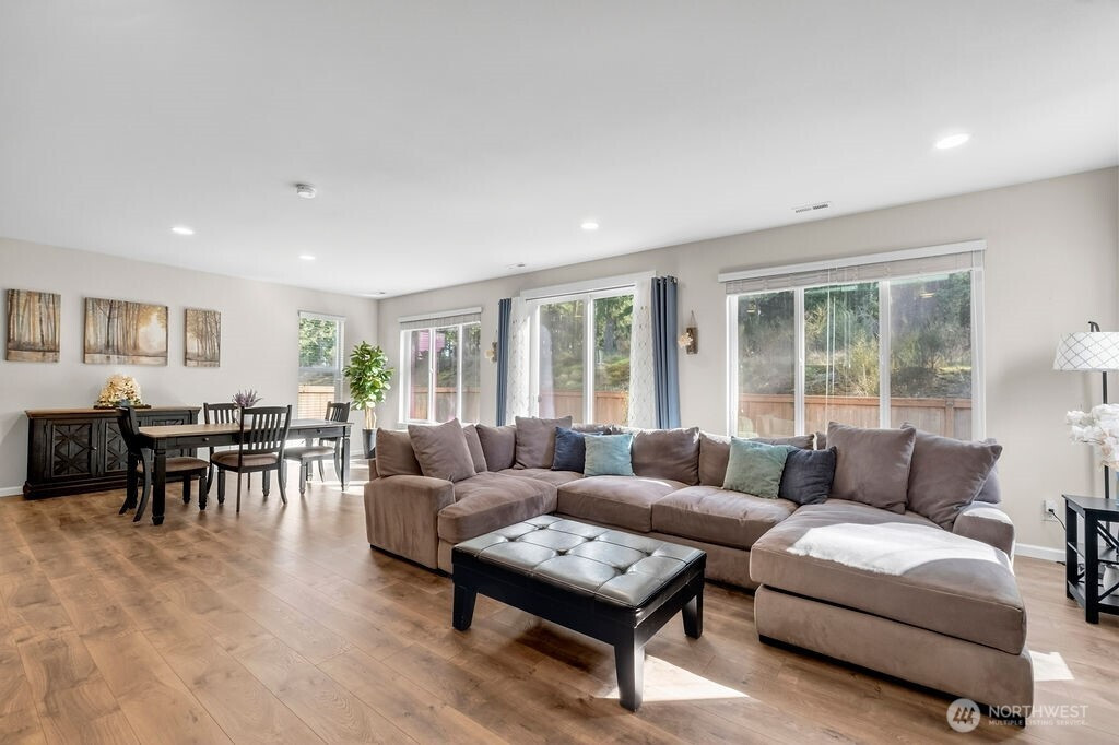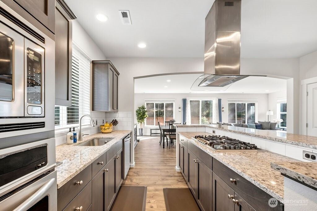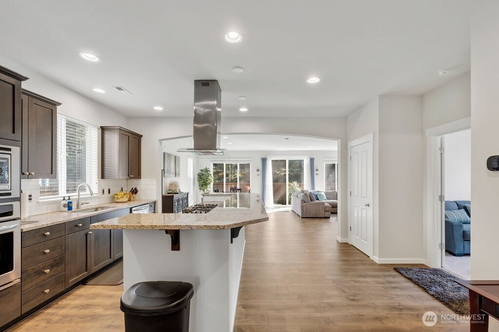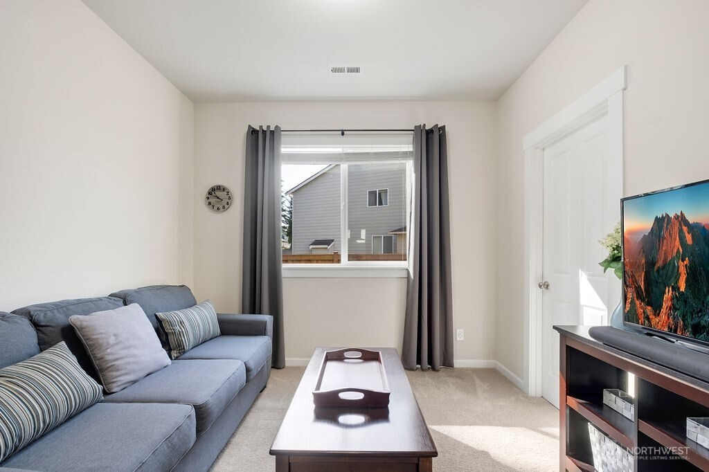 Move-in ready 5-bedroom, 2.75-bath home in Puyallup backing to a private greenbelt with no rear neighbors and ideally positioned on a corner lot next to trail access. This spacious home offers a versatile layout, including a main floor bedroom with walk-in closet and full bath, perfect for guests or multi-generational living.Upstairs, a large loft overlooks the peaceful greenbelt, creating a flexible space for a media room, office, or play area. The expansive primary suite features two walk-in closets, a luxurious 5-piece bath, granite countertops, and a glass-enclosed shower.The kitchen is designed for both everyday living and entertaining with granite countertops, stainless steel appliances, a 5-burner gas stove, and generous counter space. Enjoy year-round comfort with a heat pump and the convenience of a tankless hot water heater for continuous hot water.Step outside to a fully fenced, beautifully landscaped backyard featuring a patio and flagstone pathway—perfect for relaxing or hosting gatherings. This home offers the rare combination of privacy, space, modern upgrades, and access to nature, all within a desirable Puyallup neighborhood close to schools, parks, shopping, and commuter routes.