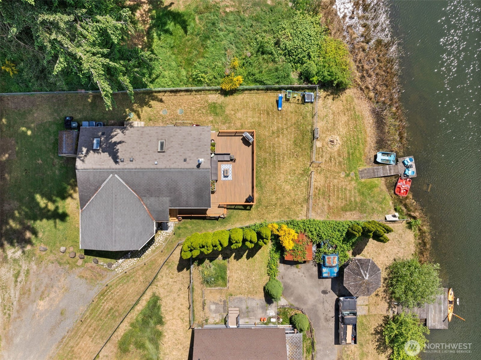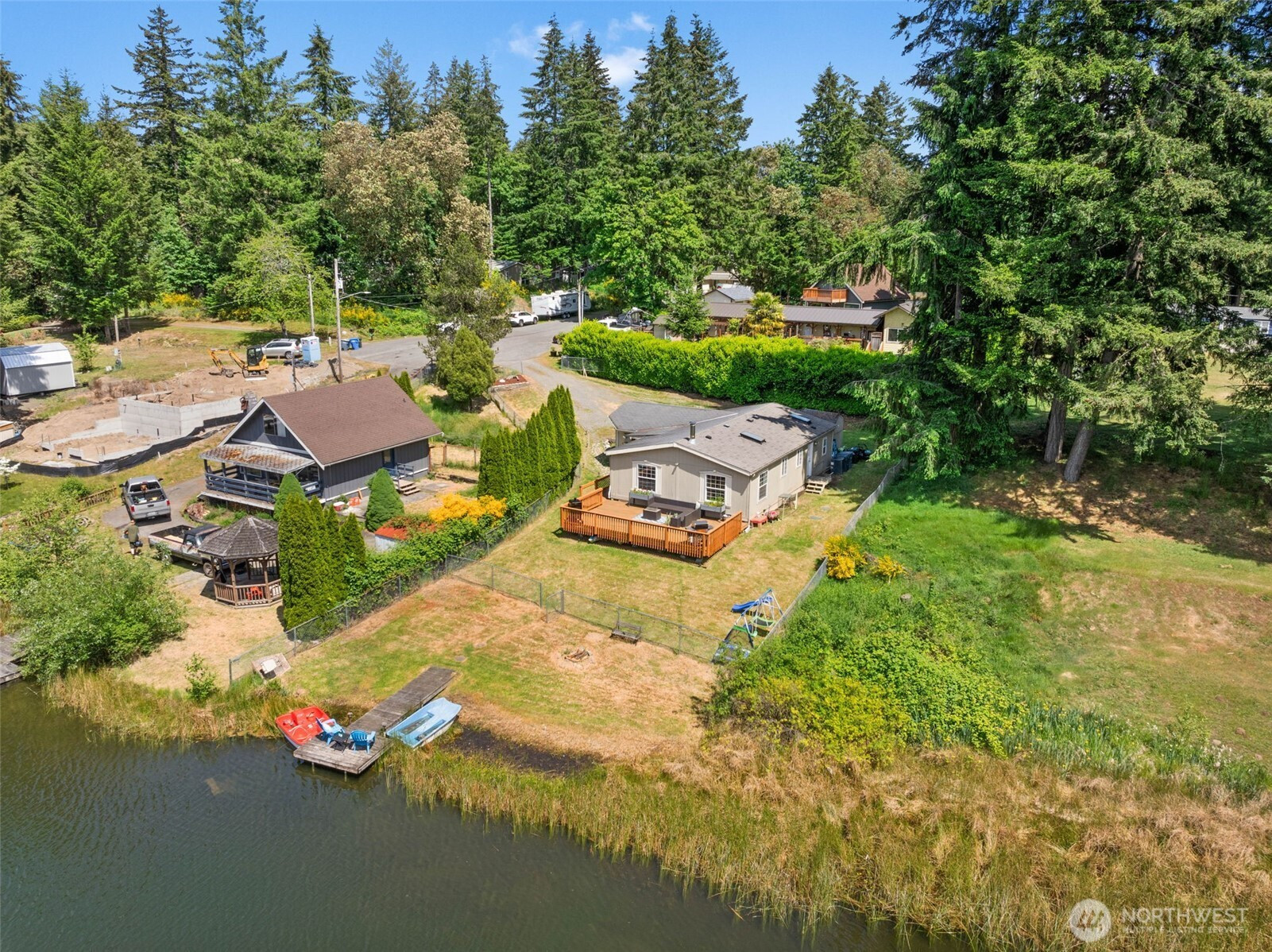 Welcome to your peaceful, single-level lakefront retreat featuring 54 feet of pristine, no-bank lake frontage and a private dock-perfect for kayaking, fishing, or unwinding by the water. Tucked at the end of a quiet cul-de-sac, this fully fenced property offers gated entry and exceptional privacy.Inside, skylights flood the home with natural light, highlighting fresh interior paint, updated kitchen cabinets and hardware, a versatile mudroom, a spacious den, and three inviting bedrooms designed for comfortable, easy living. A heat pump provides efficient heating and cooling. Step outside to a beautifully landscaped yard with a garden shed and expansive Trex deck overlooking the lake, ideal for summer BBQs, entertaining friends, or hosting lakeside gatherings that spill seamlessly from the deck into the yard. Whether it’s morning coffee or evening sunsets, this outdoor space is made for enjoying the seasons.Located in a private lake community with exclusive access to a park, beach, and playground, and just minutes from Joemma Beach State Park and Penrose Point State Park-perfect for boat launching, crabbing, fishing, swimming, and embracing the very best of Pacific Northwest peninsula living. With its lakefront setting and prime location this property also presents a fantastic opportunity for a vacation rental or Airbnb. All within the Peninsula School District and an easy commute to Gig Harbor or Port Orchard.