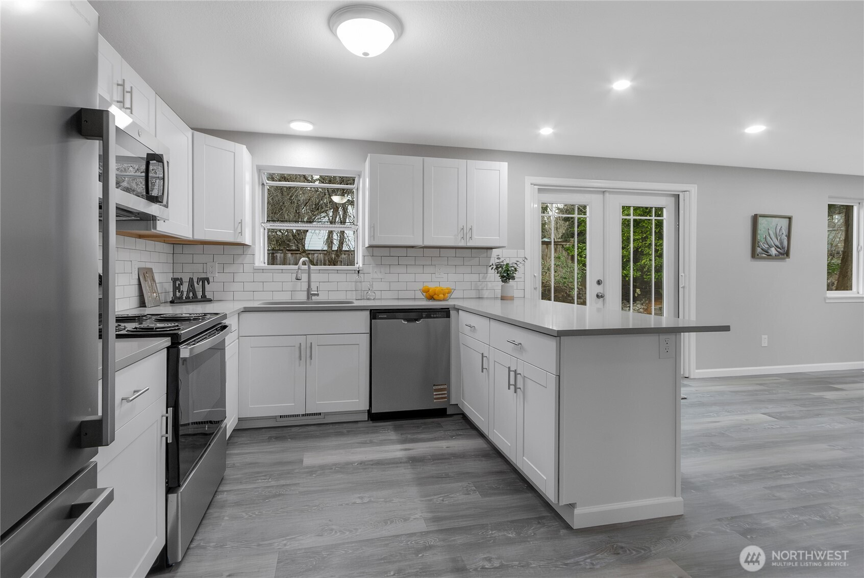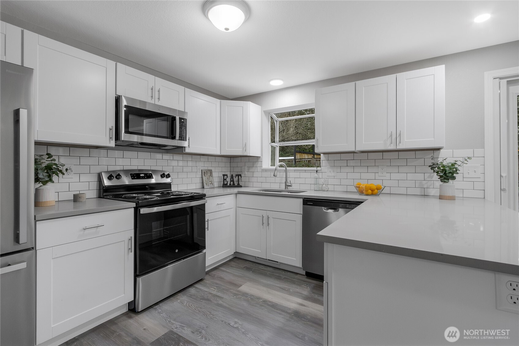 Welcome to this beautifully refreshed Bonney Lake home! Situated on a spacious corner lot, this property has undergone an impressive landscaping transformation - yard has already been seeded just in time for lush, vibrant green grass this spring. Some photos are enhanced to show what the grass will look like. Inside, you’ll find thoughtfully updated interiors featuring brand-new flooring, fresh paint, modern cabinetry, and sleek stainless steel appliances. The expansive primary suite is filled with natural light and offers a relaxing retreat at the end of the day. With 3 bedrooms and 2.5 baths, this home offers a functional, well-designed layout perfect for everyday living and entertaining. Located in a desirable neighborhood with no HOA, you’ll enjoy both comfort and freedom in a fantastic Bonney Lake setting. Don’t miss your opportunity to see this move-in-ready home - schedule your showing today!