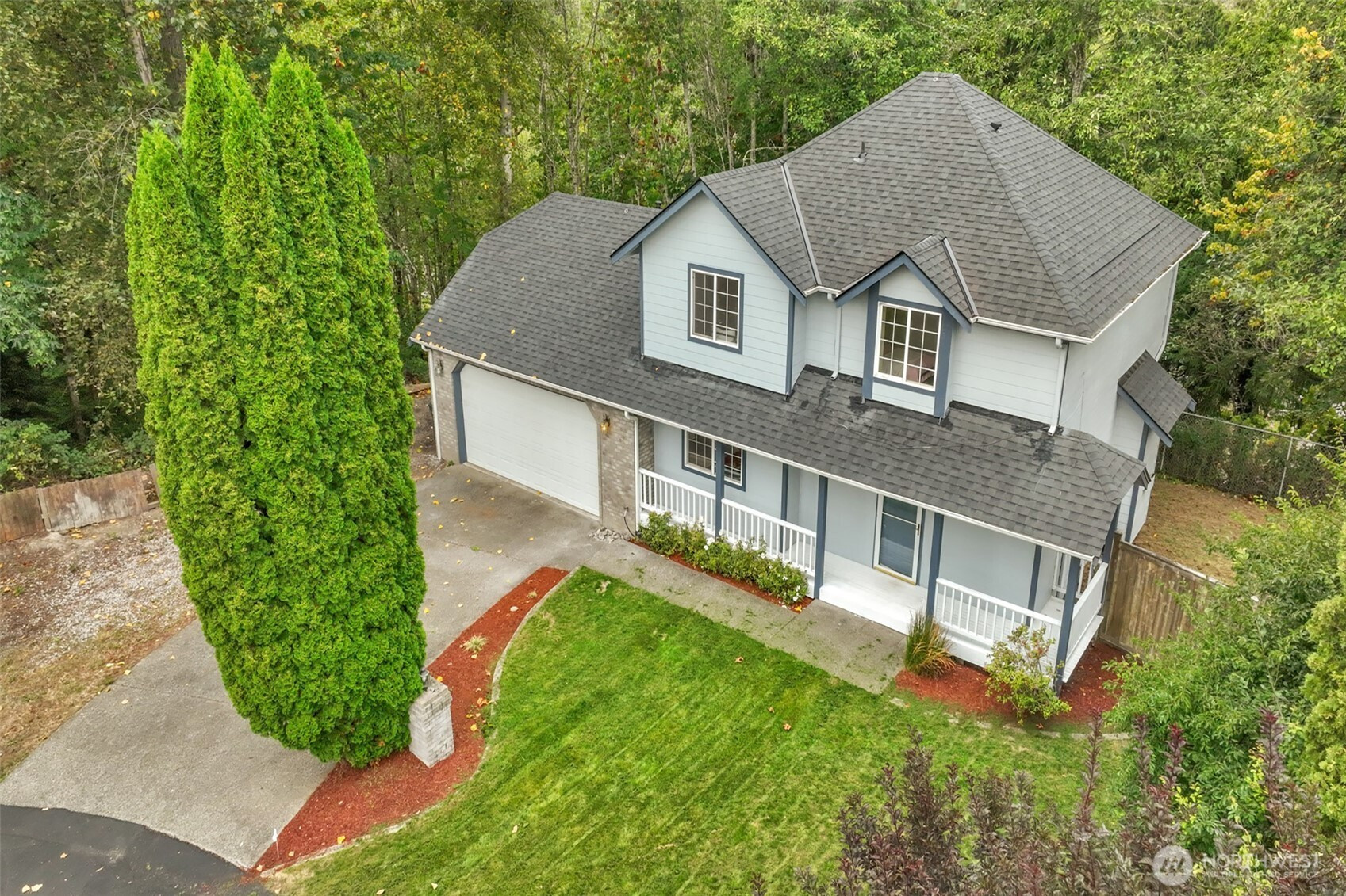 Welcome to this refreshed 3 bed 2.25 bath; residential at the end of a cul de sac. Interior features fresh paint, open concept family room/ dining, Large &bright kitchen,freshly painted cabinets with charming half bath on main floor. Upstairs offers french door entry to primary bdrm with 2 closets &3 piece ensuite, 2 sizable bdrms, full bath at end of hallway. Newly stained wood on stairs! Recent furnace tune up. Equipped with AC! Exterior presents a new face of paint, brand new roof, ample parking with 2 car garage &spot for RV or boat! Newly painted deck & fully fenced yard. LESS THAN 5 Minutes from Lake Tapps! Private access for purchase @Allen Yorke Boat launch w/your new BL address. Minutes from local shopping/grocery & HWY 410