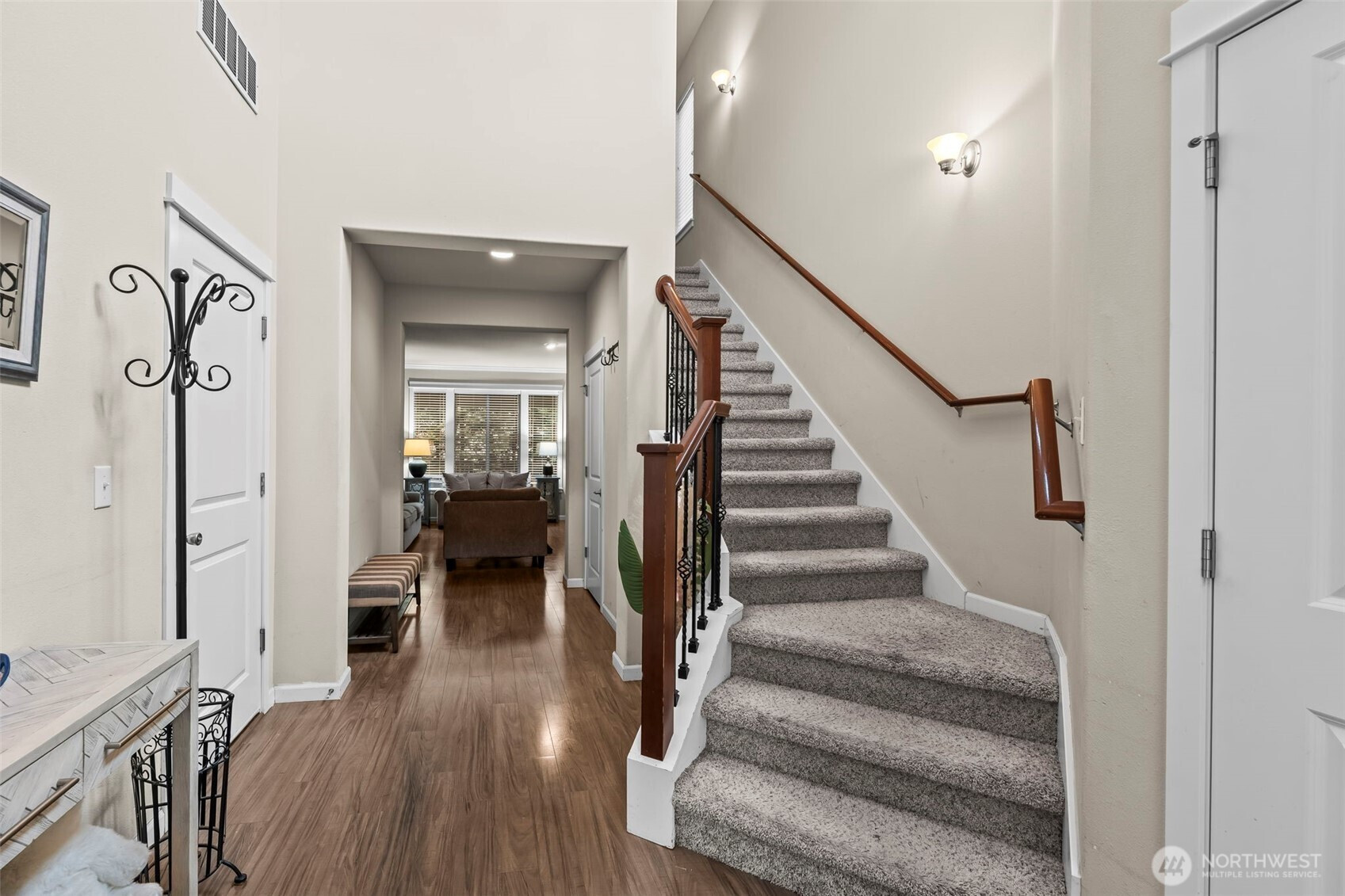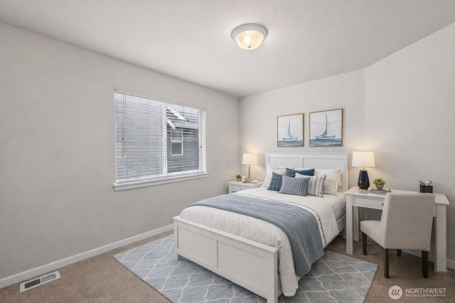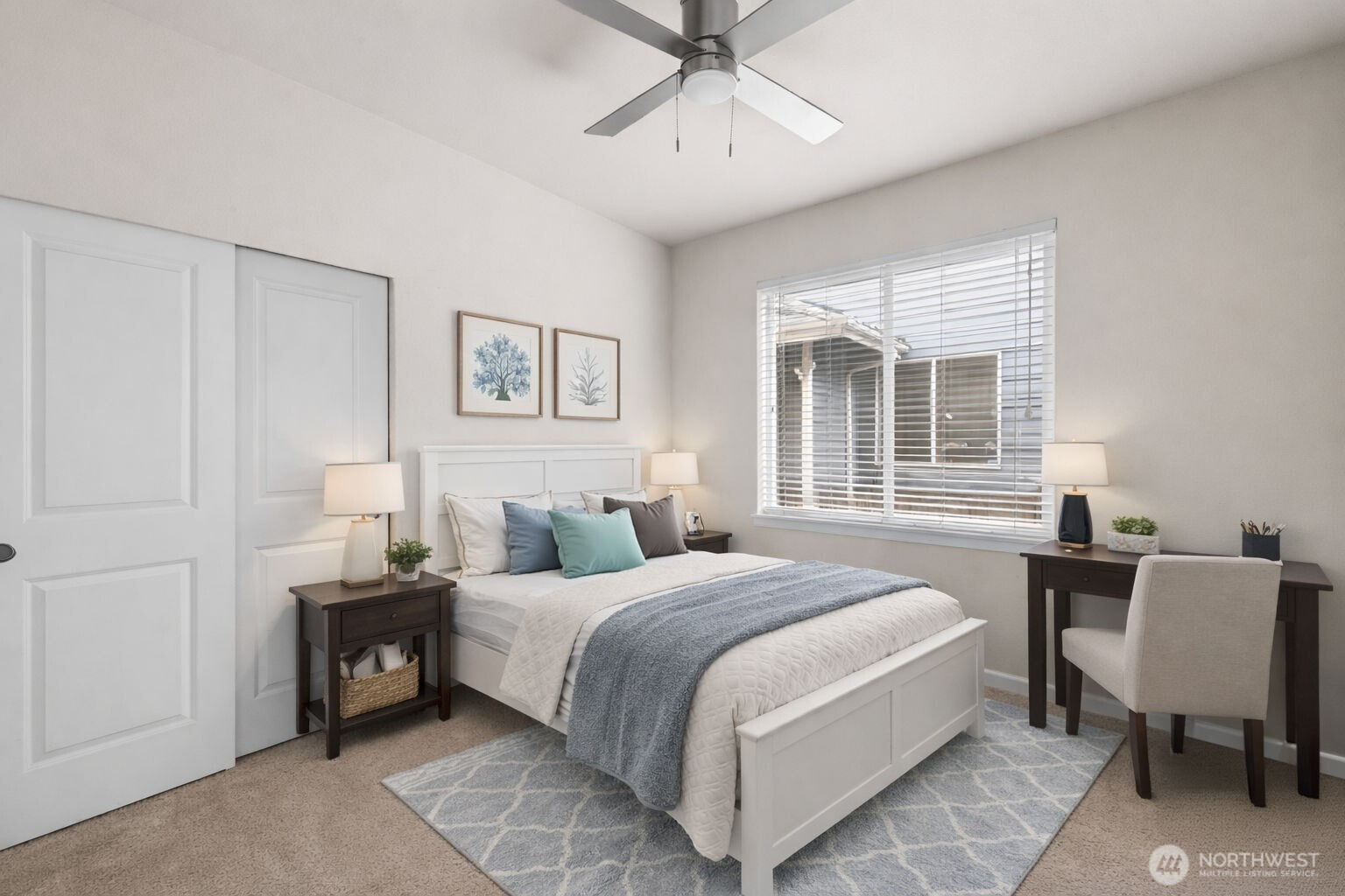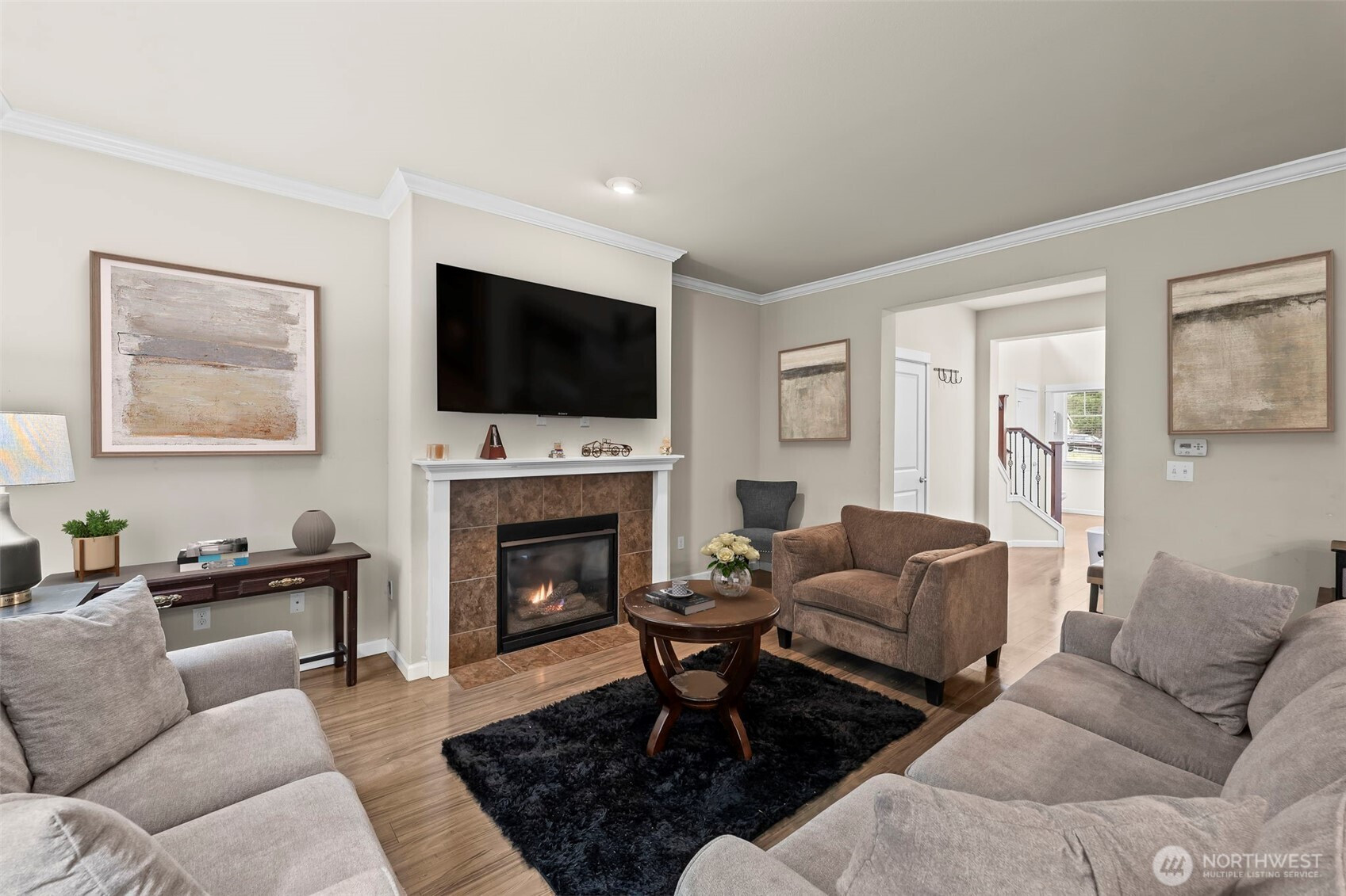 Beautiful 5 bedroom, 3.5 bath home with 2,524 sq ft of thoughtfully designed living space is ready for you! The open-concept main floor offers excellent flow between the spacious living room and kitchen, complete with a large island, granite countertops, breakfast bar, stainless steel appliances, and walk-in pantry. A spacious dining area and cozy gas fireplace make the space ideal for everyday living and entertaining. A junior primary suite on the main level offers flexibility for multigenerational living or guests. Upstairs features a dedicated office space for work or study, a huge primary suite with double doors, walk-in closet, and five-piece bath with soaking tub. Three additional bedrooms and a convenient utility room complete the upper level. Enjoy effortless outdoor living on the covered patio, complemented by a low-maintenance yard, 2-car garage, and low annual HOA dues. Situated in a quiet neighborhood with a playground and sport court, this home balances privacy, comfort, and community.