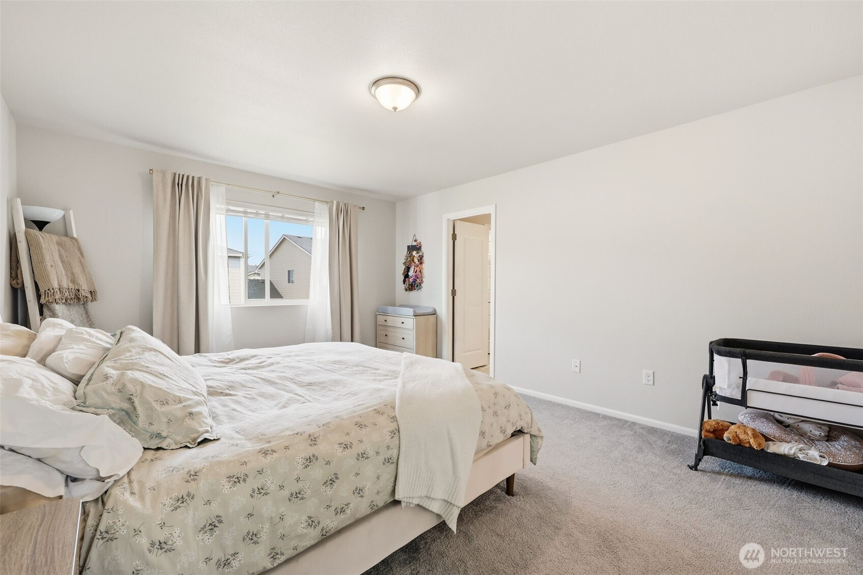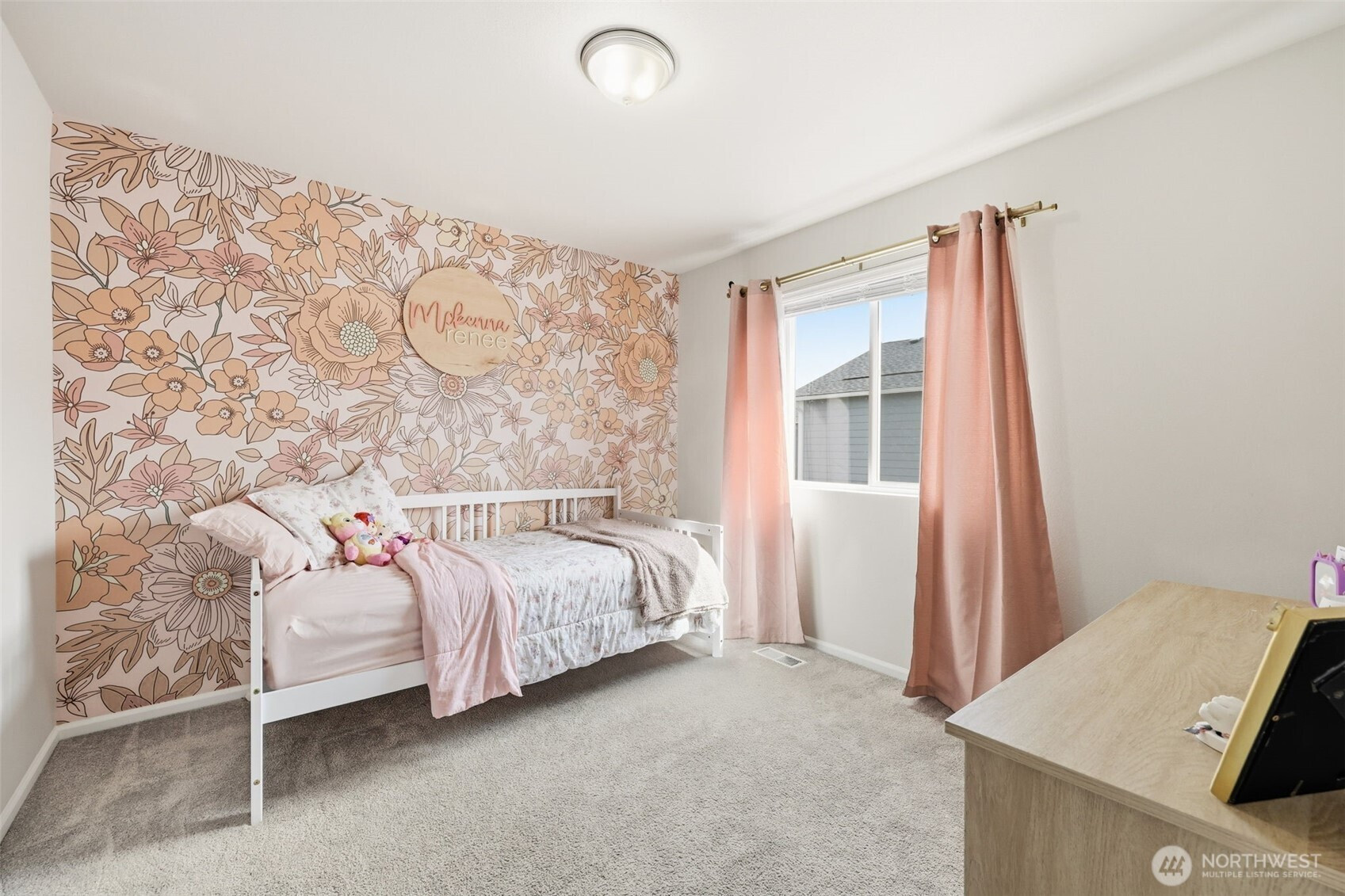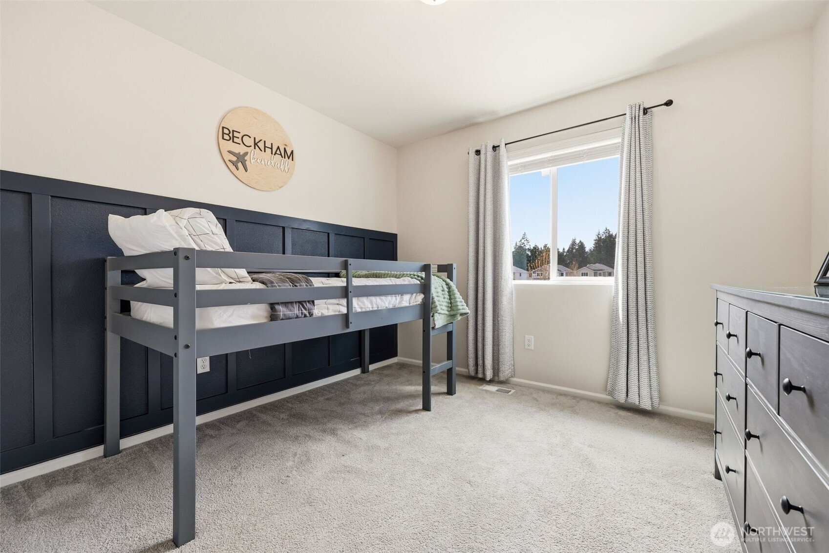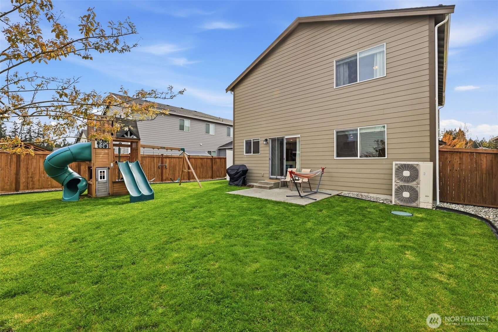 Welcome home! This like-new, 4-bed, 2.5 bath, 2,121 sq ft Merlot floorplan in the Daybreak community, located directly across from the neighborhood playground, is the one you've been looking for. Open-concept main level connects living, dining, and kitchen with quartz countertops throughout, a large island, pantry, and natural gas connected. Interior includes added board and batten wall detail, designer wallpaper accents, and updated finishes beyond builder standard. Upper level includes all bedrooms, including primary suite with upgraded closet system and en suite bath, plus loft/flex space and full bath. 3-car garage with EV charging capability. Fully fenced yard with a defined outdoor space and permanent outdoor lights gives you the perfect oasis right on your back porch. Conveniently located between Orting, Graham, and Puyallup.