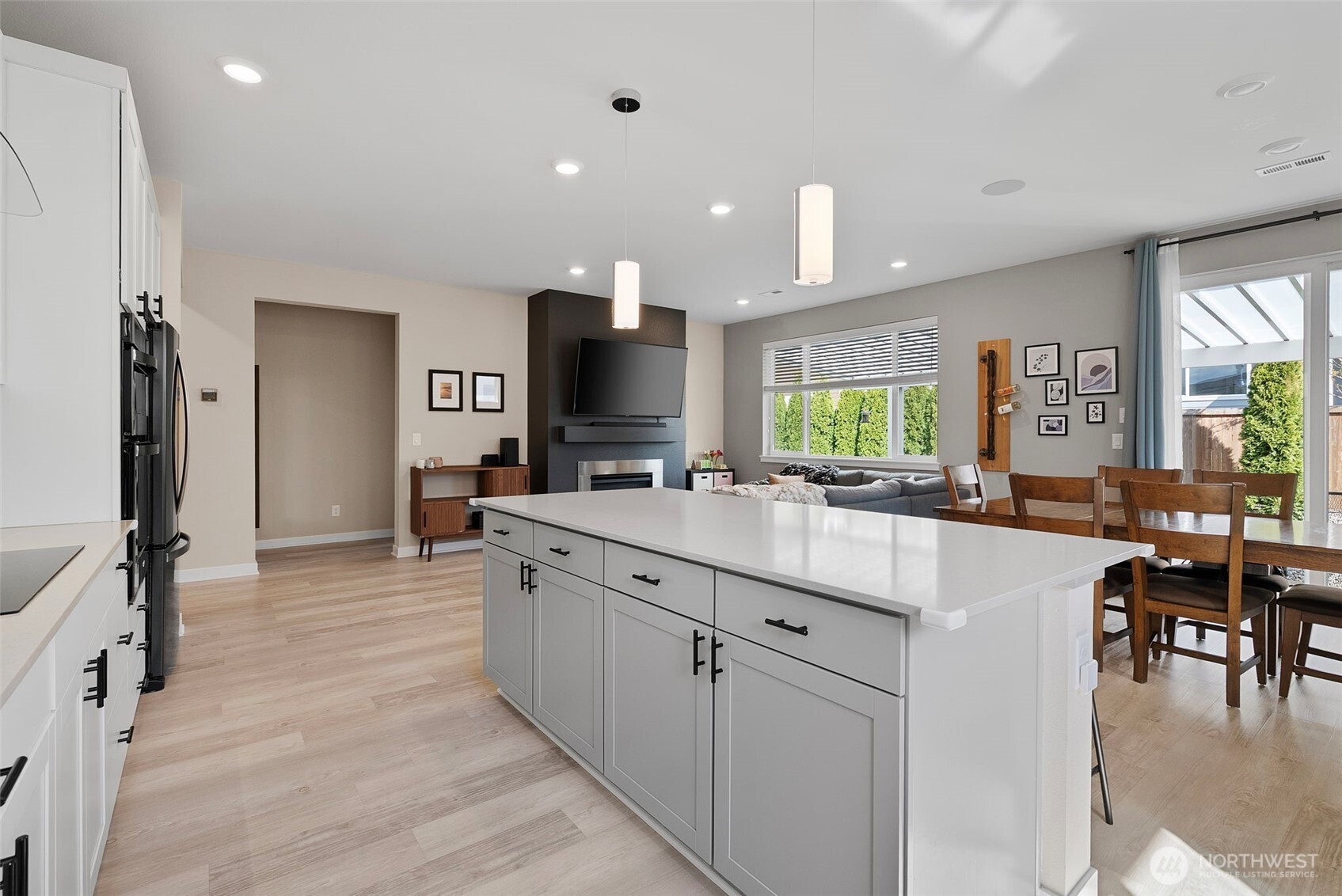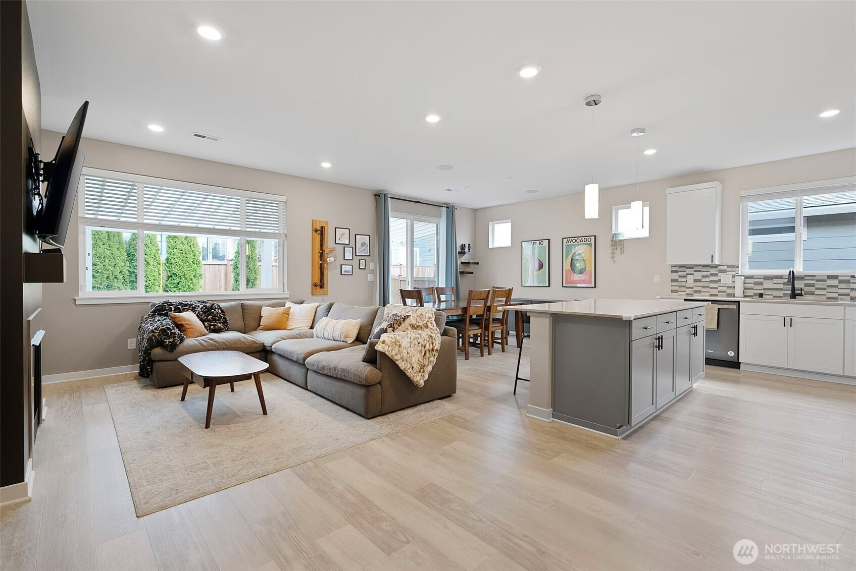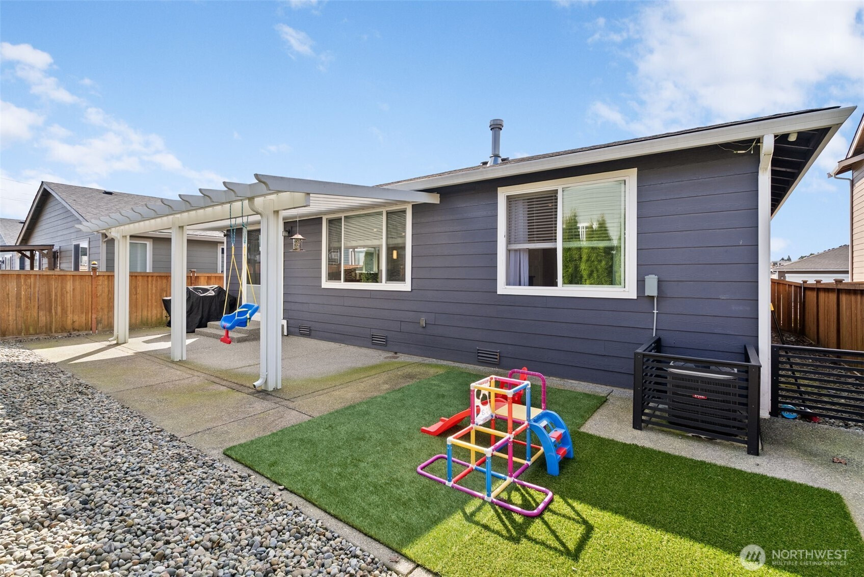 Don't miss out on this former Model Home with all the upgrades! This pristine 3 bed, 2 bath home features a large gourmet kitchen with black stainless appliances. The spacious kitchen, great room & dining area is perfect for entertaining. The home includes features like quartz countertops, luxury vinyl plank floors, and white painted millwork. Also included are the washer/dryer and flat screen TV. The primary en-suite is an oasis, and is only steps away with no stairs! This low maintenance property is fully fenced and fully landscaped with sprinkler system and covered patio, perfect for Washington weather. Beat the heat this summer with Air Conditioning in your Energy Star Certified home! Schedule your showing today.
