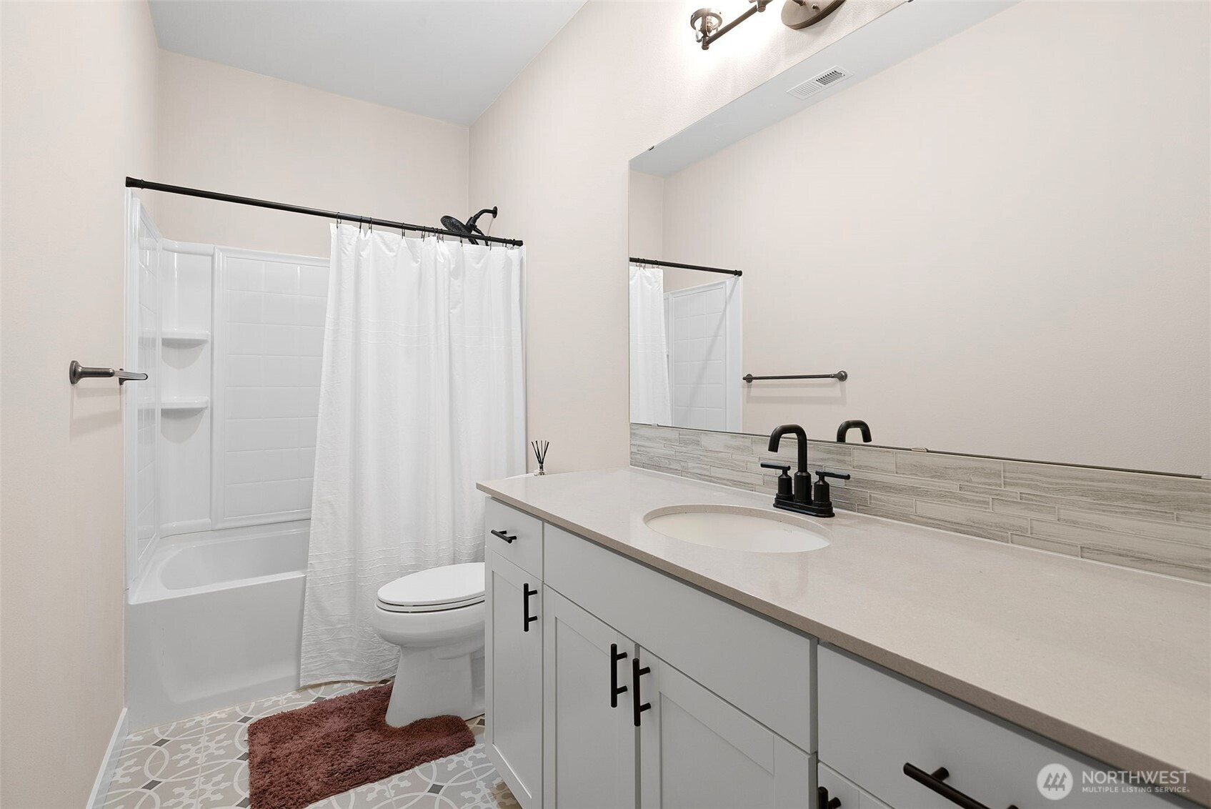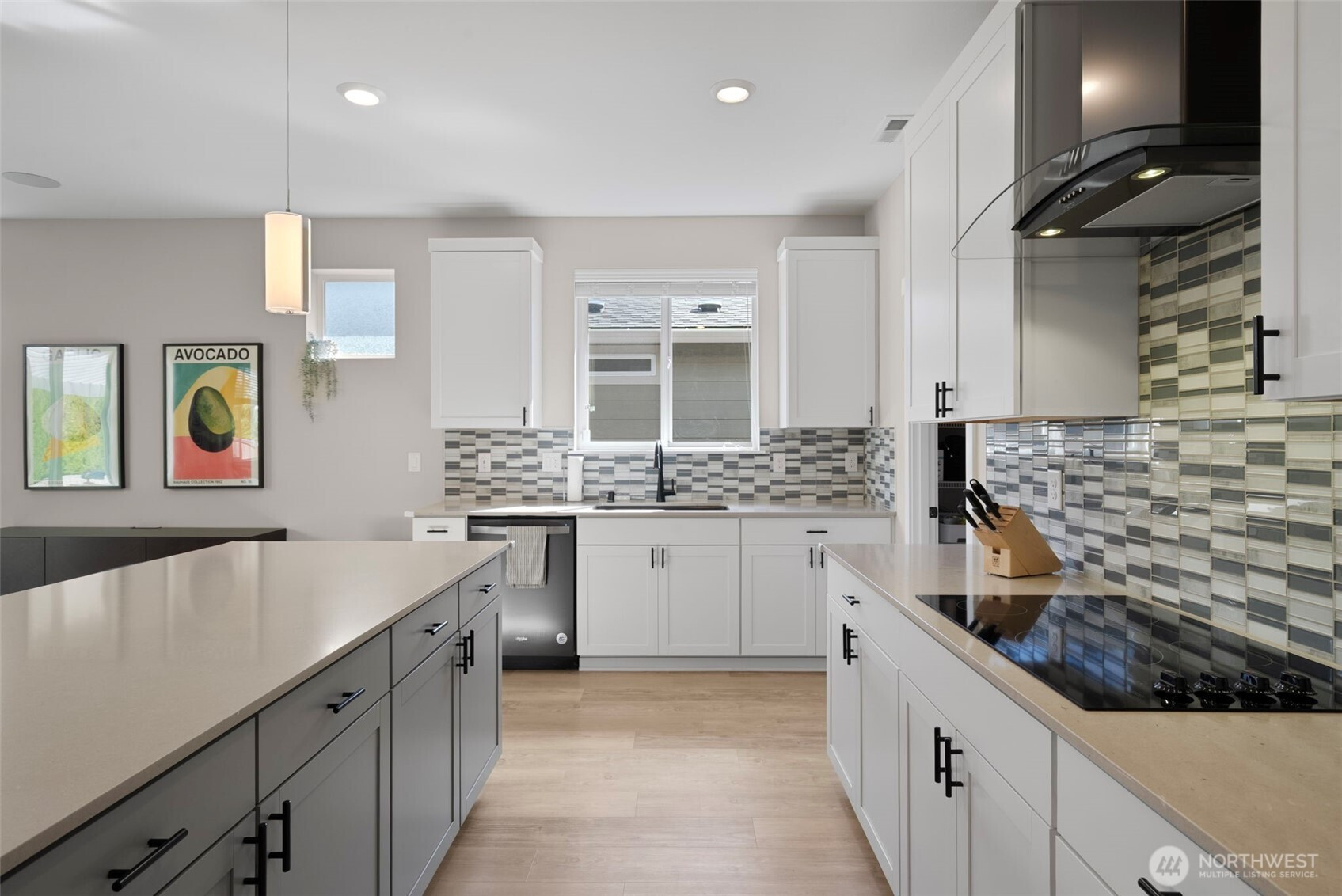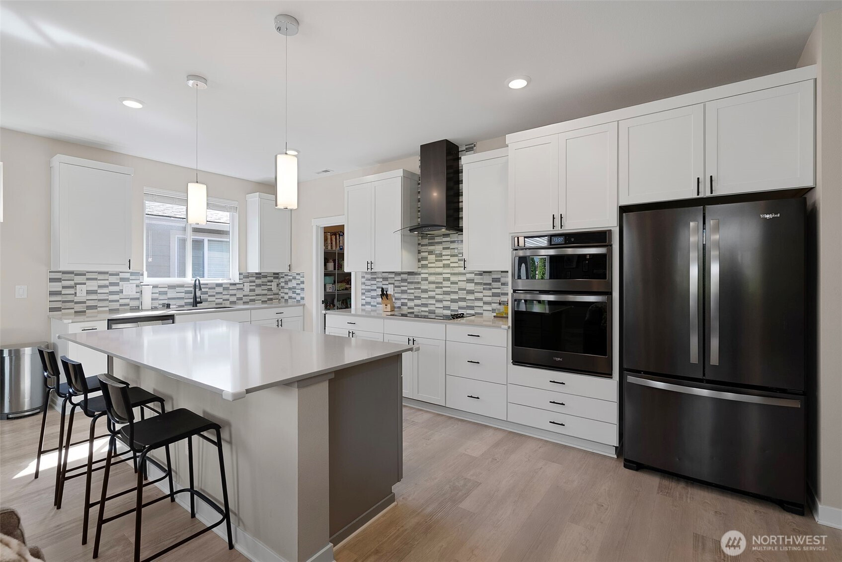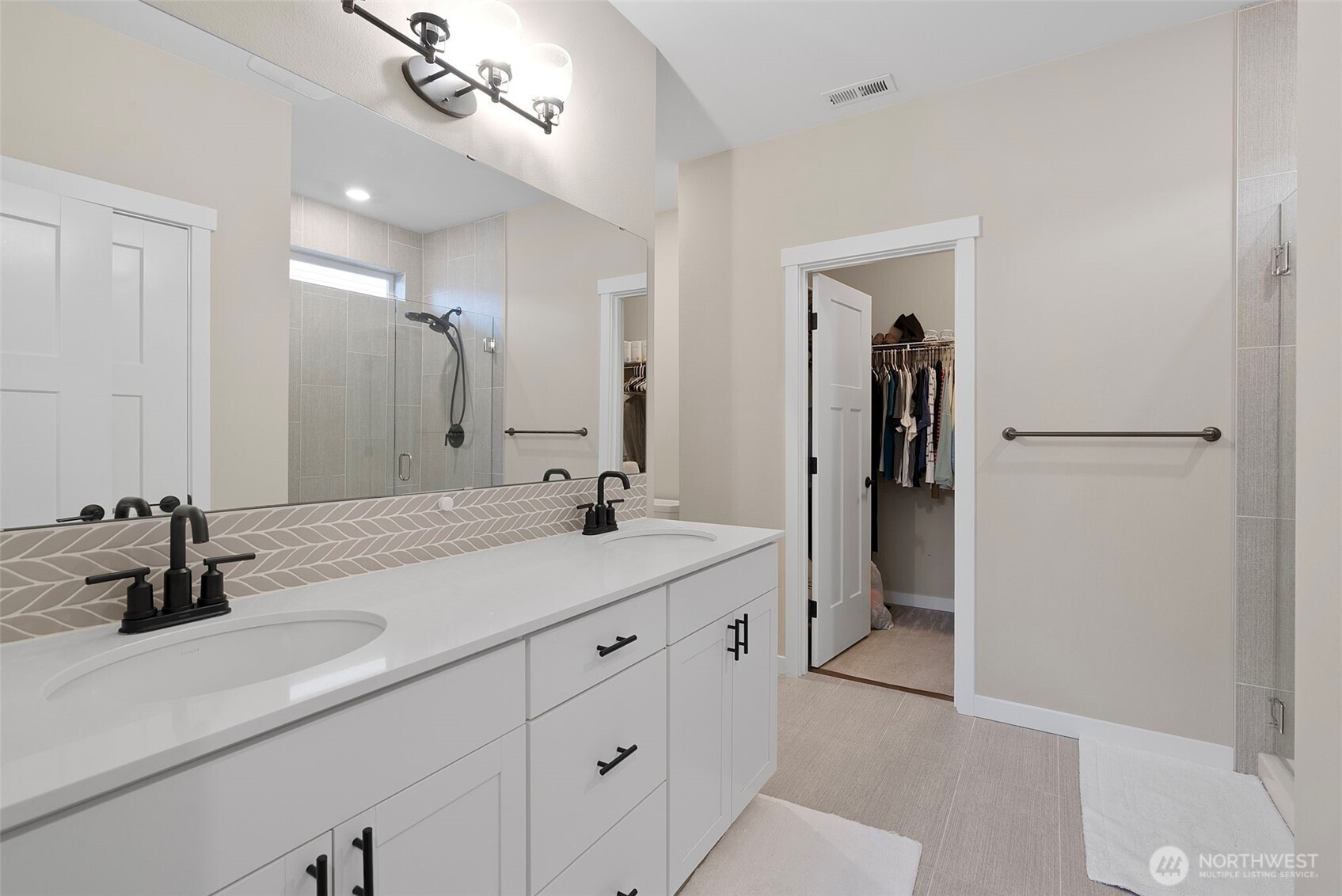 Don't miss out on this former Model Home with all the upgrades! This pristine 3 bed, 2 bath home features a large gourmet kitchen with black stainless appliances. The spacious kitchen, great room & dining area is perfect for entertaining. The home includes features like quartz countertops, luxury vinyl plank floors, and white painted millwork. Also included are the washer/dryer and flat screen TV. The primary en-suite is an oasis, and is only steps away with no stairs! This low maintenance property is fully fenced and fully landscaped with sprinkler system and covered patio, perfect for Washington weather. Beat the heat this summer with Air Conditioning in your Energy Star Certified home! Schedule your showing today.