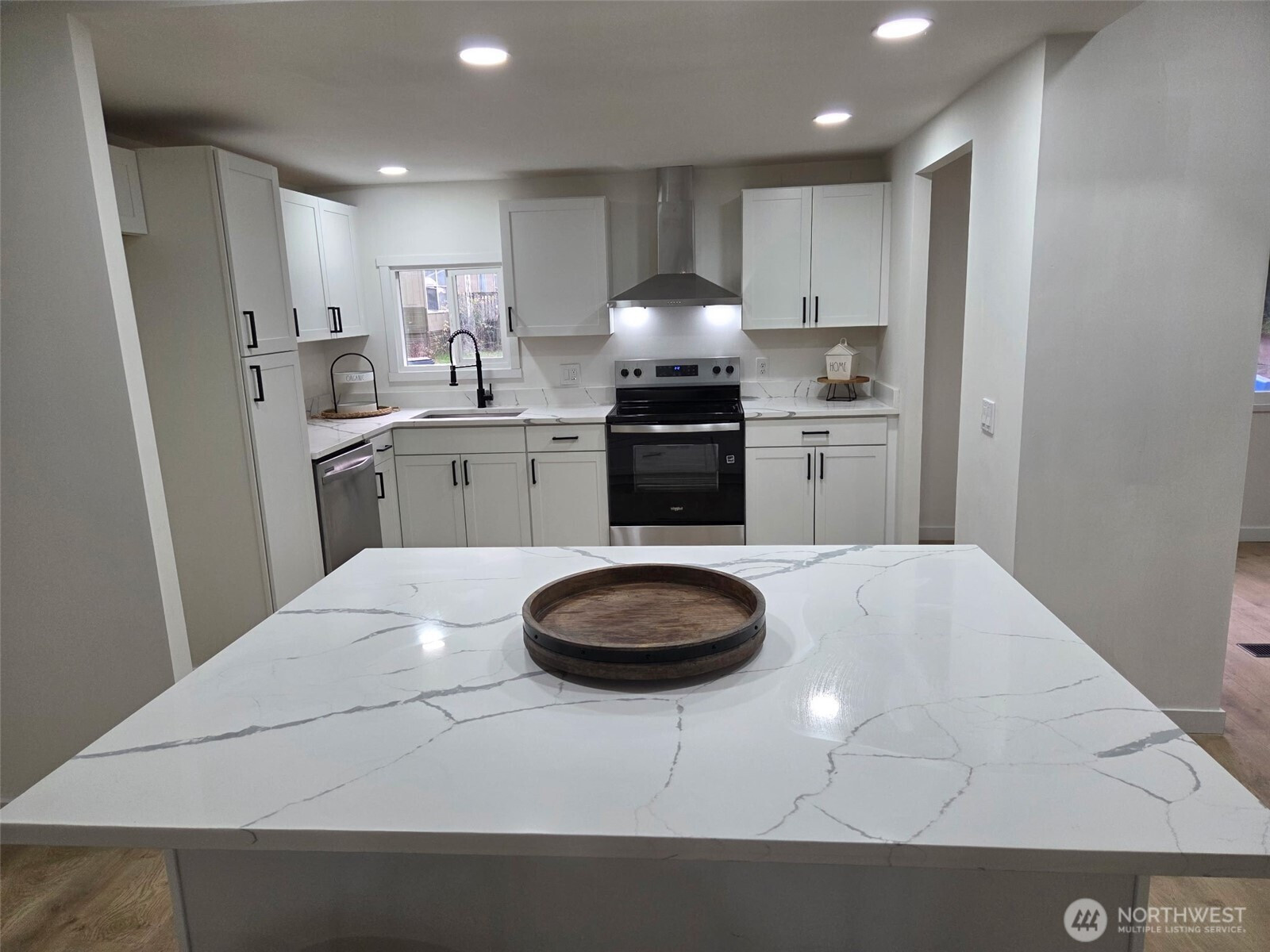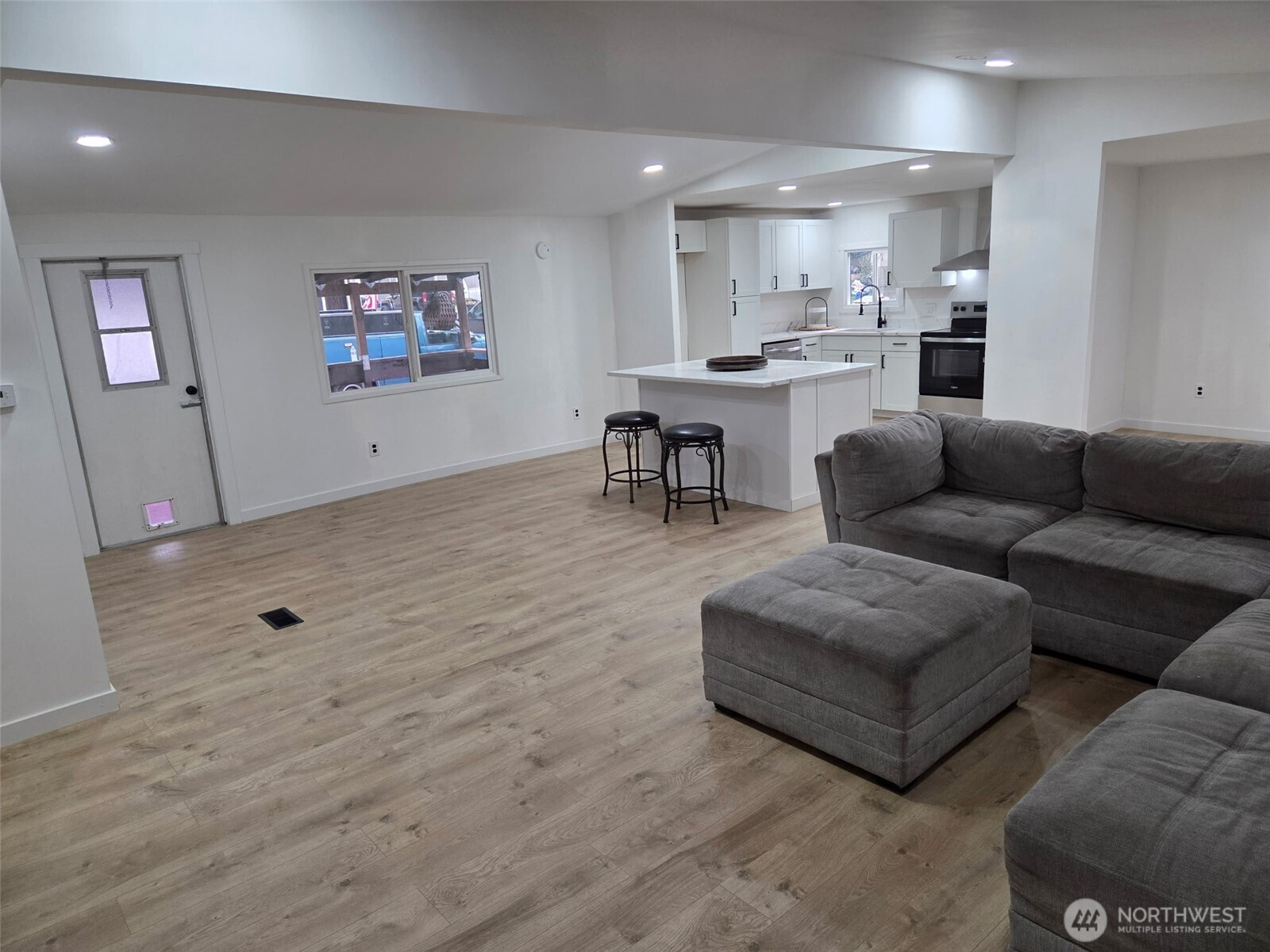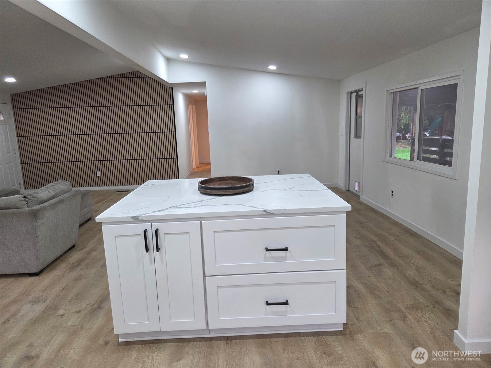 Beautifully remodeled manufactured home offering a bright, open floor plan with vaulted ceilings and recessed lighting. The stunning kitchen showcases quartz countertops, a quartz island breakfast bar, and modern finishes, complemented by LVP vinyl flooring throughout. This home features 3 bedrooms and 2 full bathrooms with thoughtful updates. Step outside to a large wood porch, perfect for entertaining or relaxing, and enjoy the convenience of a carport and storage shed. Stylish, functional, and move-in ready. No age restriction.