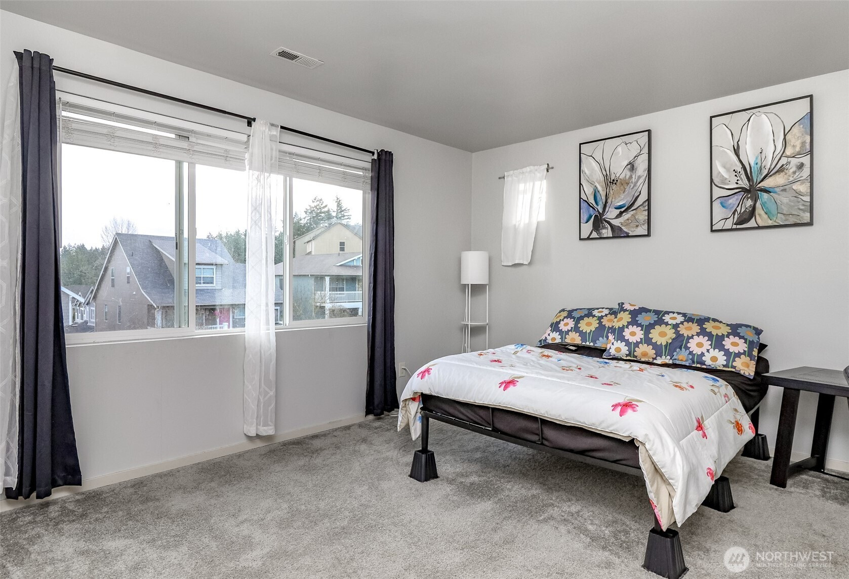 Welcome to this stunning four-bedroom, three-bath home designed for comfort and connection. A convenient bedroom on the main floor offers flexibility for guests, a home office, or multi-generational living. Enjoy durable laminate hardwoods, quartz countertops, stainless steel appliances, and a bright open-concept layout perfect for entertaining. The living room features a cozy gas fireplace and large windows that flood the space with natural light. Upstairs includes three spacious bedrooms and two full baths, highlighted by an expansive primary suite with a five-piece bath and walk-in closet. Located within a gated community, this home blends style, function, and everyday ease.