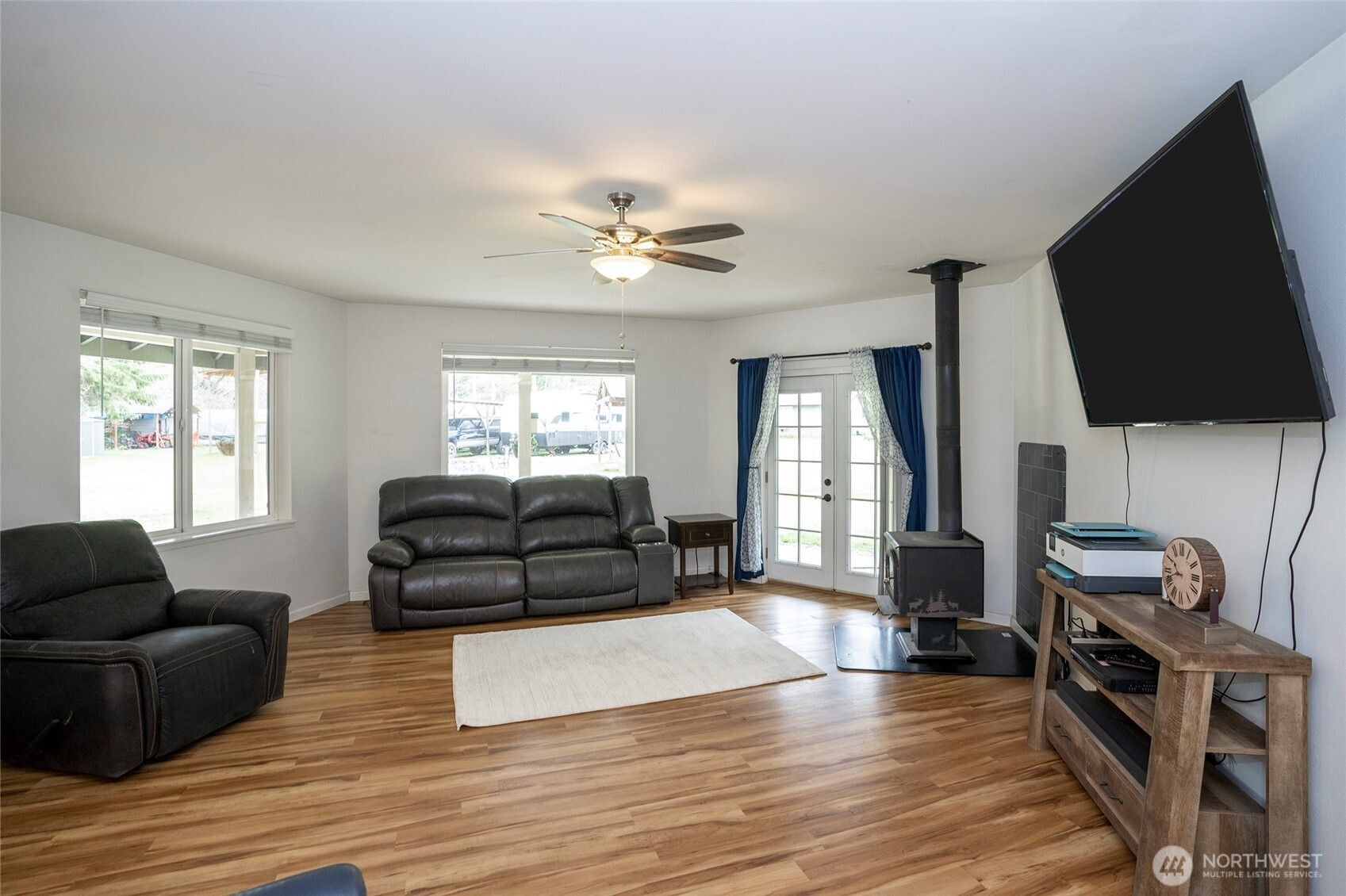 Discover the lifestyle you’ve been dreaming of in this charming mountain rambler offering space, privacy, and endless possibilities. The open-concept design creates a bright and inviting atmosphere, while the sunken living room with a newer wood stove provides the perfect cozy gathering space on cool evenings. French doors open to a covered patio and gazebo, making outdoor entertaining and summer BBQs effortless. With four spacious bedrooms, two full bathrooms, fresh interior paint, and move-in-ready condition, this home is ready for you to enjoy from day one. The cedar-fenced yard offers room for pets, play, and gardening, while added features like generator wiring, RV hookups, private gated entry, fruit trees, and mature landscaping enhance everyday living. Need extra space? A large partially completed pole barn/shop offers incredible potential for storage, hobbies, or a dream workshop. Set among your own private forest with a footbridge crossing a peaceful creek and expansive yard space, this rare property delivers the perfect blend of country charm and mountain serenity.