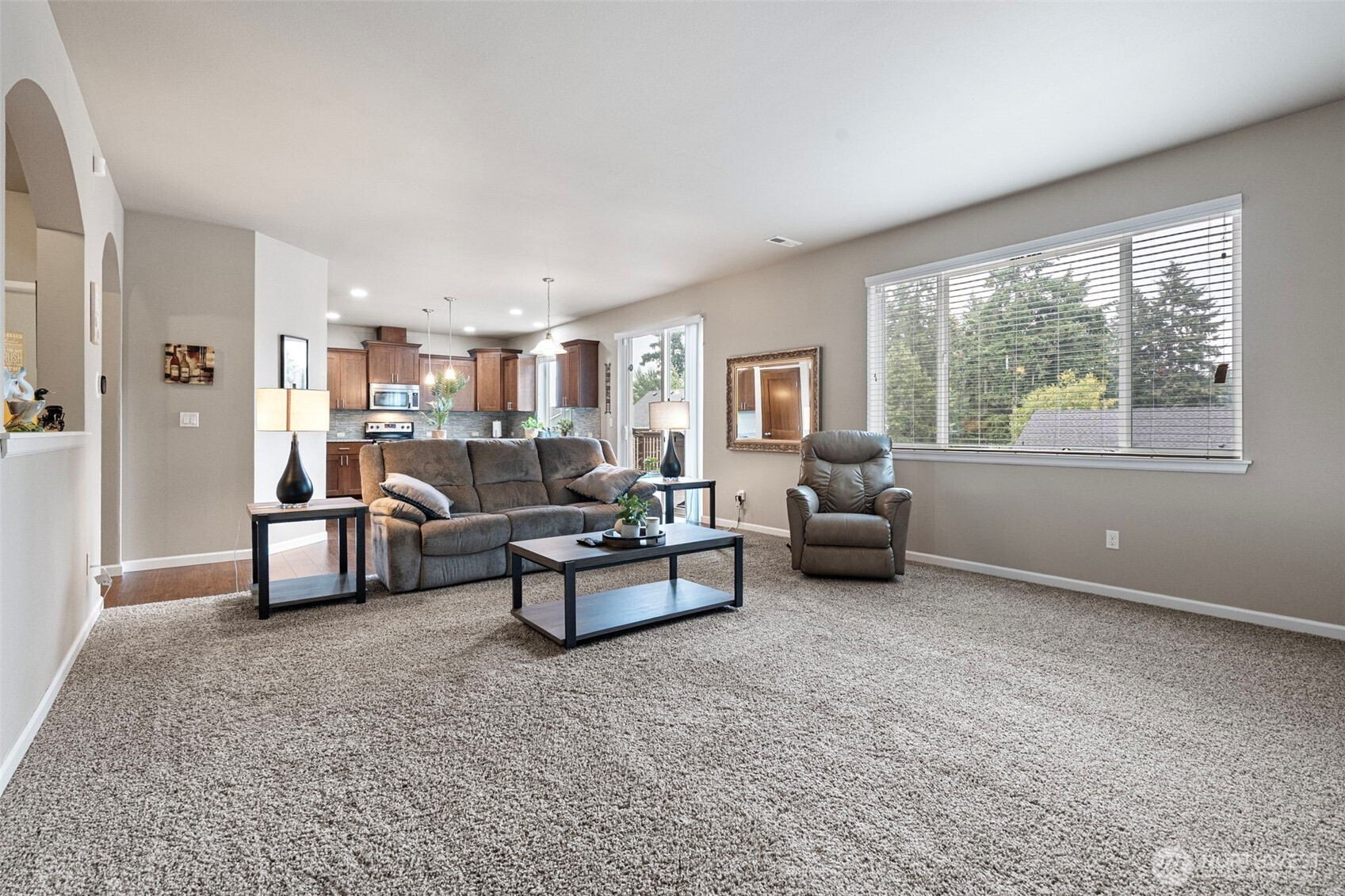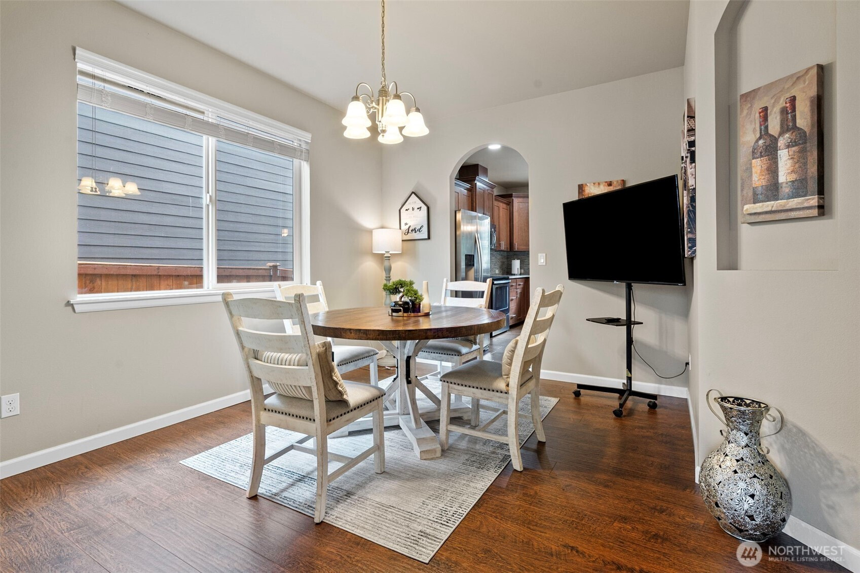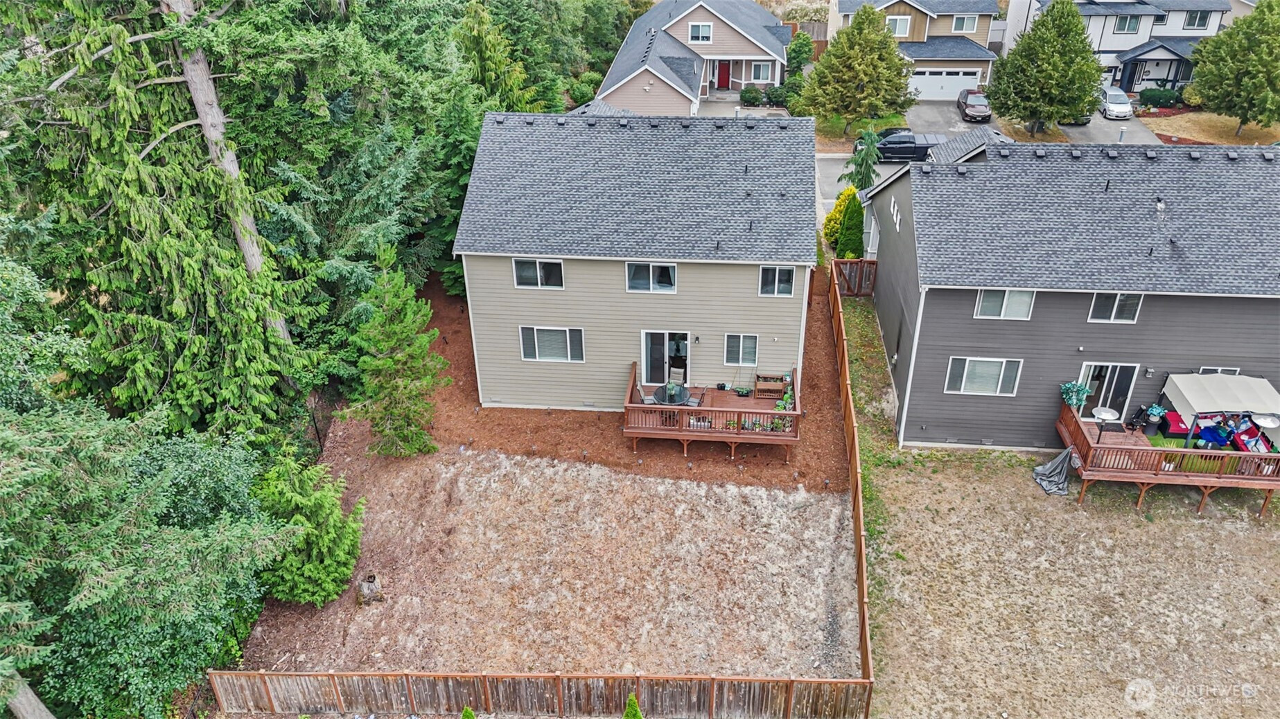 A move in ready 4-bdrm home perfectly situated at the end of a private gated community. One of the largest homes in Rock Creek, featuring a chefs kitchen with stainless appliances and lrg island. The main floor features an office/den, dining, great room and large utility. Upstairs you can unwind in the luxurious primary suite, featuring vaulted ceilings, a soaker tub, and double vanity. 3 other bedrooms, a full bathroom and a bonus space round out your upstairs living area, all the space you need! The large deck off the kitchen expands your living and entertaining space that overlook the private setting. Close to JBLM and many amenities. This home radiates pride of ownership!