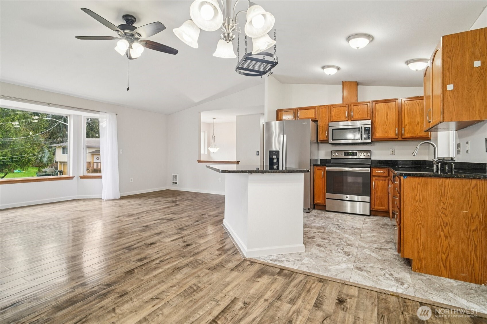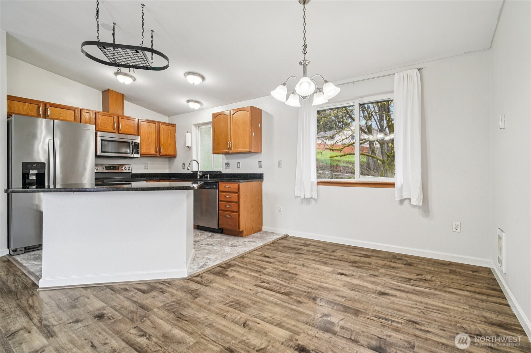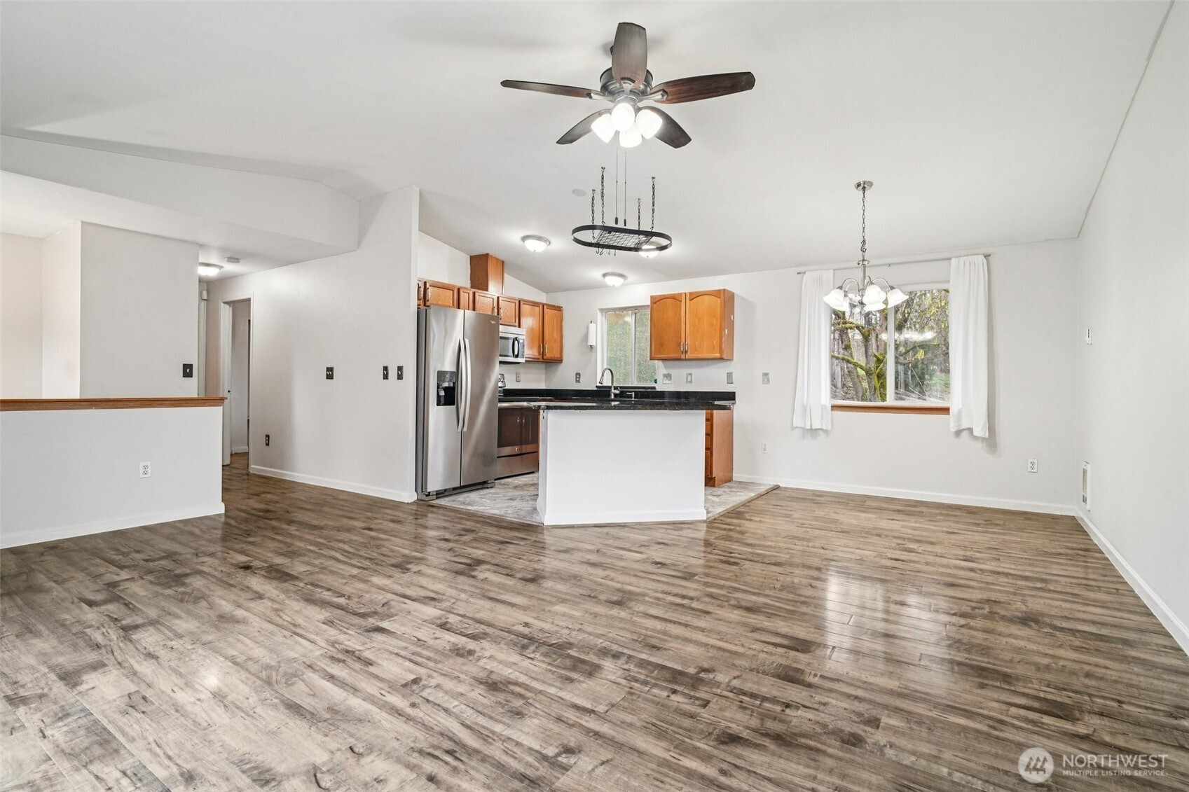 Welcome to this beautifully refreshed split-level home in Bonney Lake! From the fresh interior and exterior paint to the updated bathrooms and newer granite counters, this home is truly move-in ready. The upper level features a bright, open-concept living area perfect for entertaining, anchored by a kitchen that shines with modern appliances. You’ll find two bedrooms on this level, including one with direct access to the full bathroom. The lower level offers incredible flexibility with a spacious bedroom featuring a laundry closet and a slider leading to the backyard. You’ll also find a large bonus room, ideal for a home office, den, or gym. One of the standout features is the insulated garage; previously used as additional living space during its time as a rental, it can easily be converted back into covered parking or kept as a hobby room. Outside, the fully fenced backyard is ready for summer with freshly seeded grass and a large deck perfect for BBQs. Looking at the property, you’ll also notice the extensive driveway space—perfect for an RV or boat—and stylish modern light fixtures that tie the whole refresh together. Located in a quiet neighborhood with easy access to local amenities, this home combines thoughtful updates with endless potential. Come see it today!