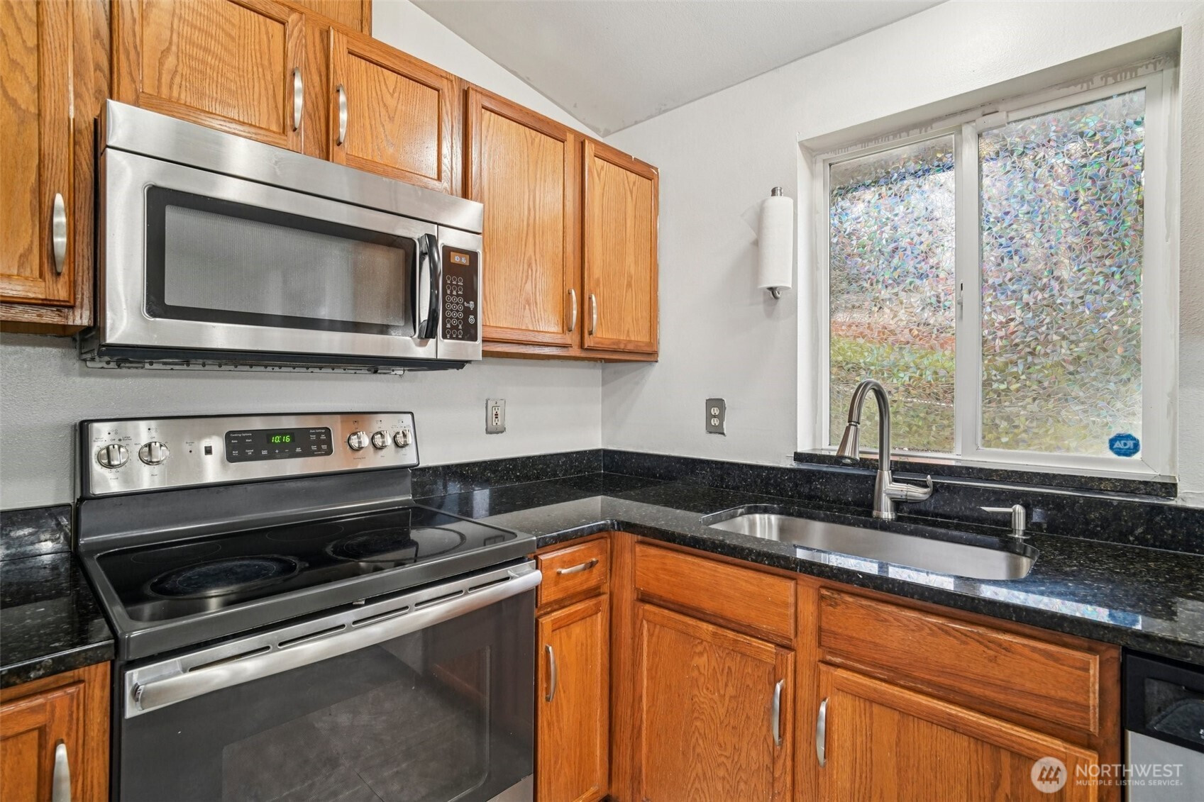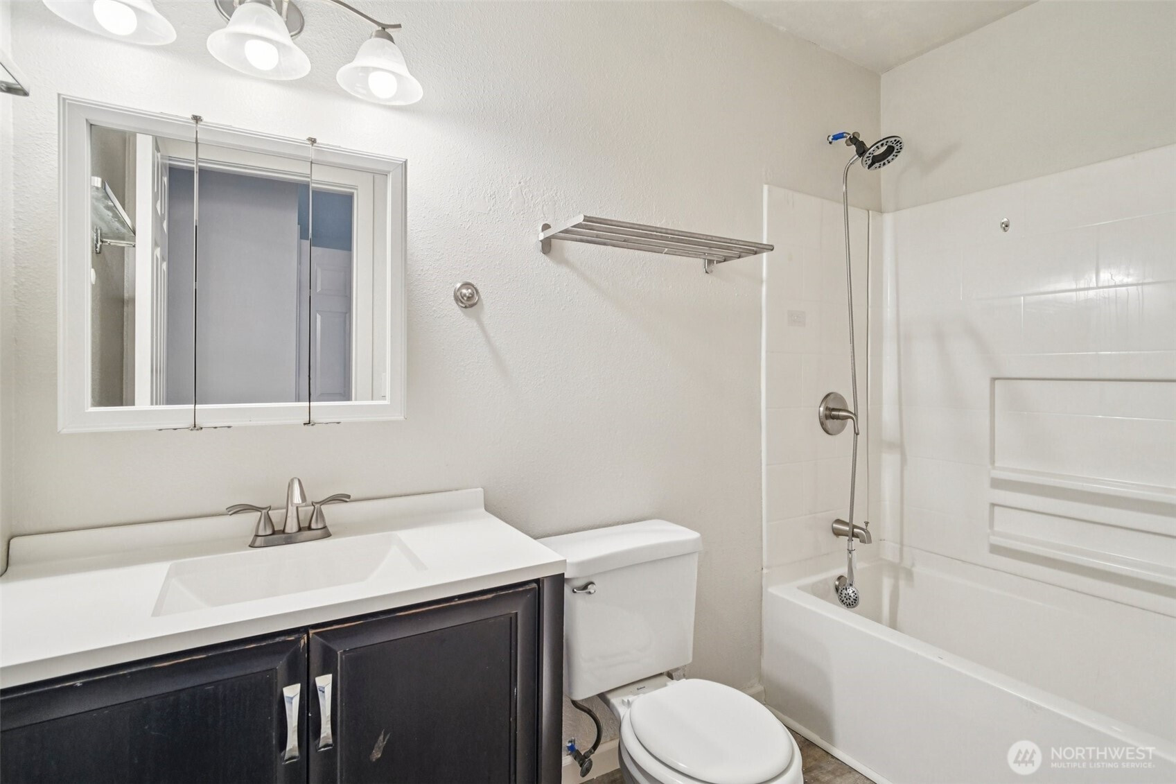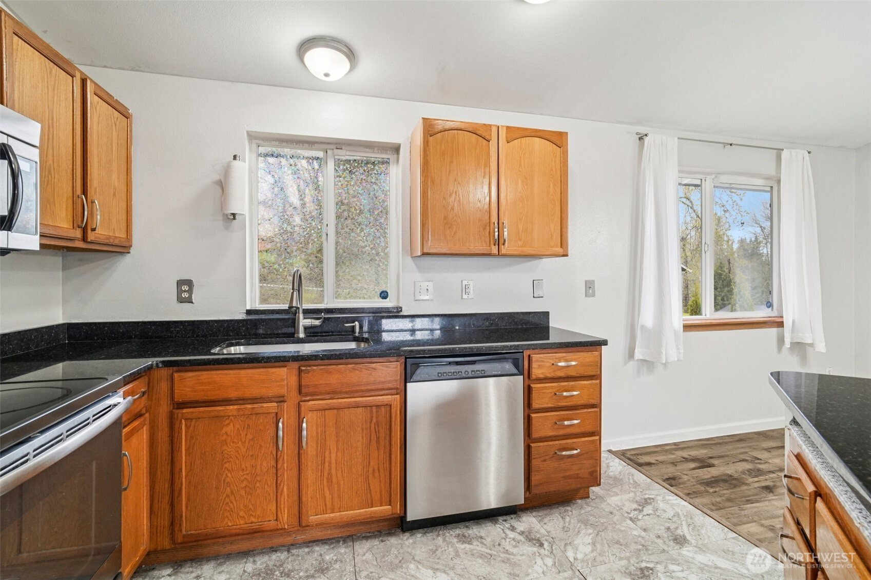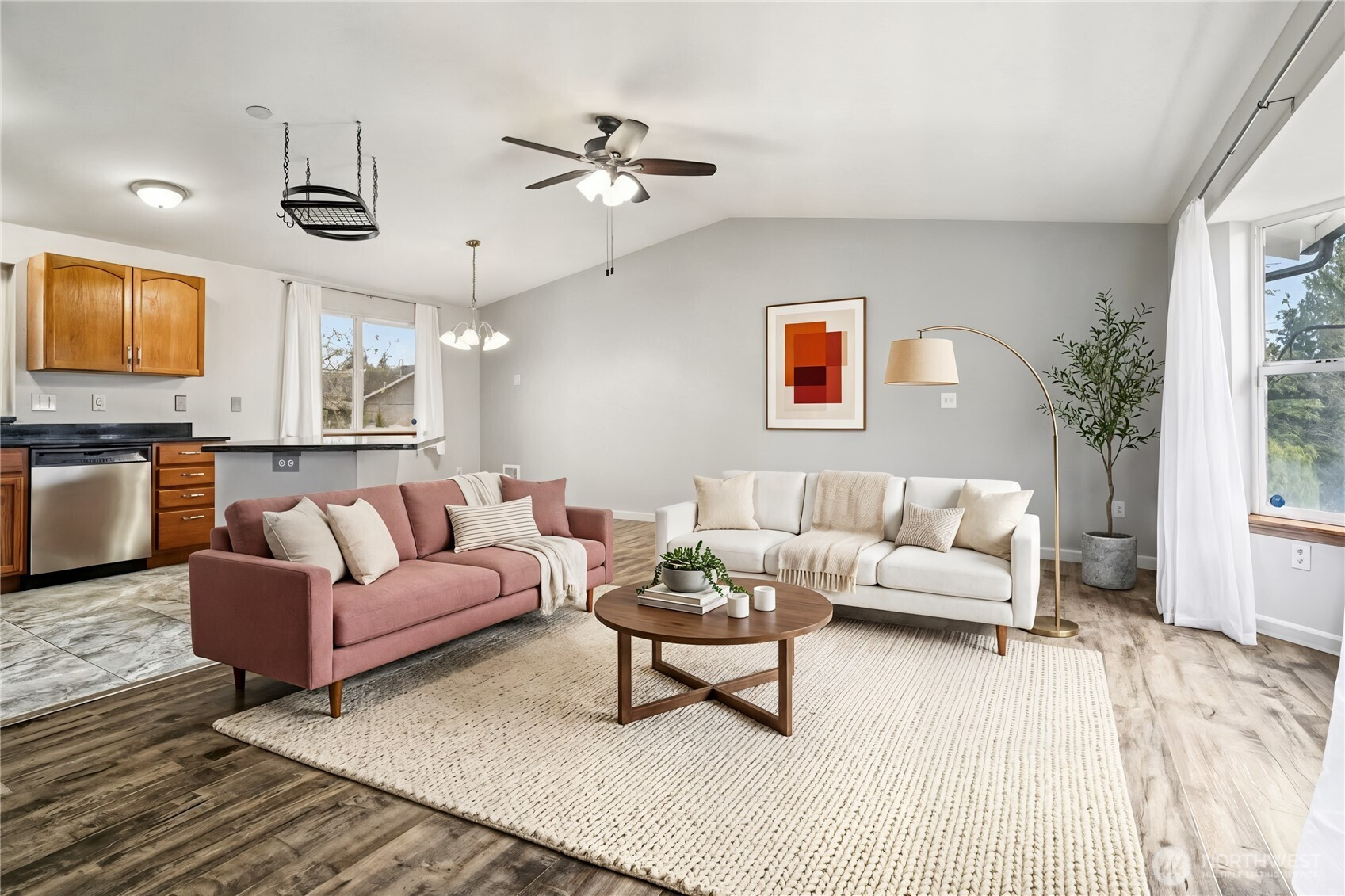 Welcome to this beautifully refreshed split-level home in Bonney Lake! From the fresh interior and exterior paint to the updated bathrooms and newer granite counters, this home is truly move-in ready. The upper level features a bright, open-concept living area perfect for entertaining, anchored by a kitchen that shines with modern appliances. You’ll find two bedrooms on this level, including one with direct access to the full bathroom. The lower level offers incredible flexibility with a spacious bedroom featuring a laundry closet and a slider leading to the backyard. You’ll also find a large bonus room, ideal for a home office, den, or gym. One of the standout features is the insulated garage; previously used as additional living space during its time as a rental, it can easily be converted back into covered parking or kept as a hobby room. Outside, the fully fenced backyard is ready for summer with freshly seeded grass and a large deck perfect for BBQs. Looking at the property, you’ll also notice the extensive driveway space—perfect for an RV or boat—and stylish modern light fixtures that tie the whole refresh together. Located in a quiet neighborhood with easy access to local amenities, this home combines thoughtful updates with endless potential. Come see it today!