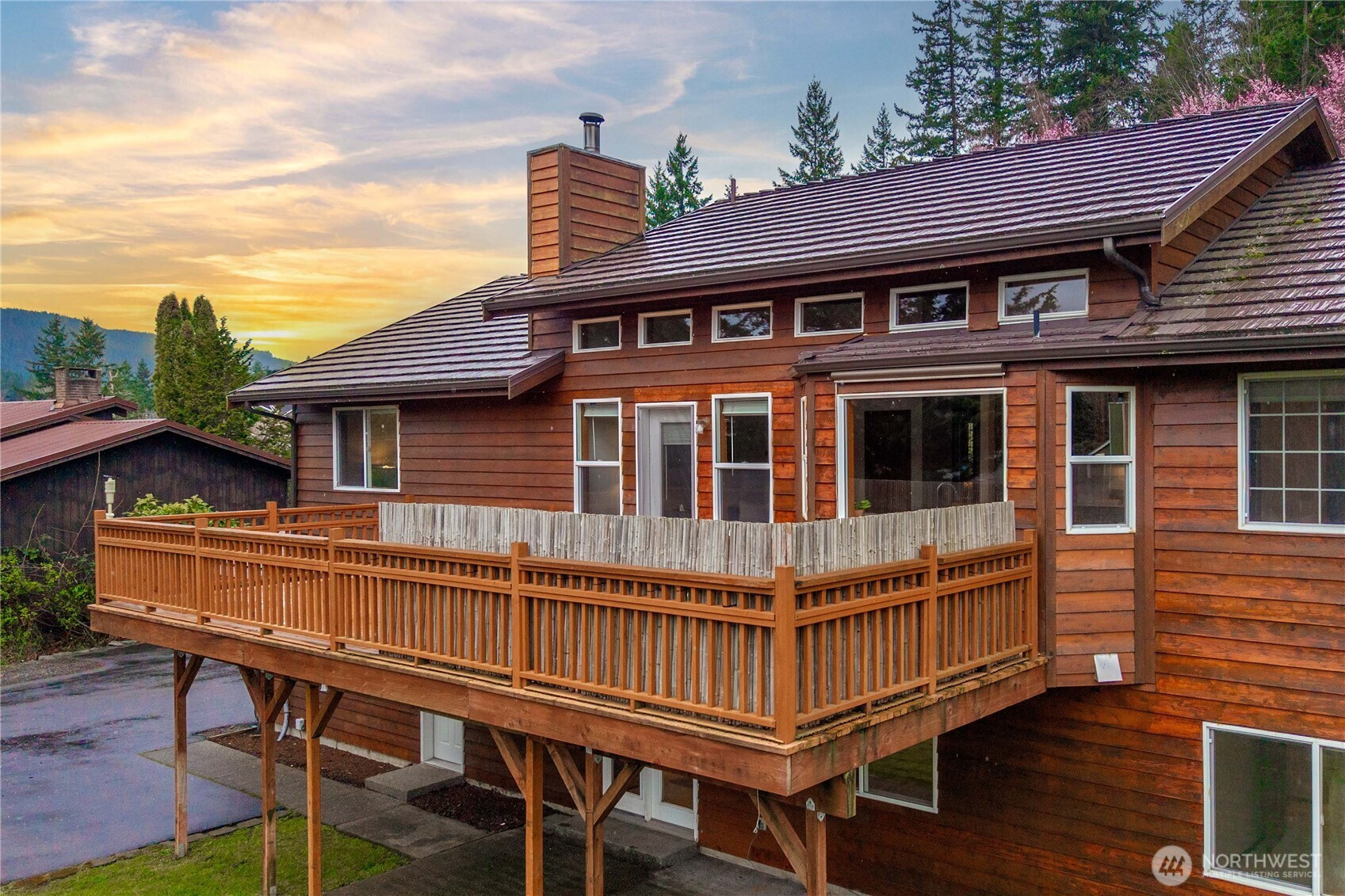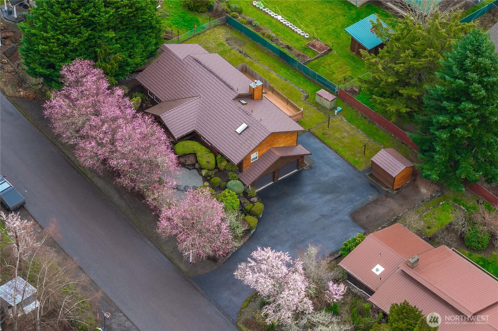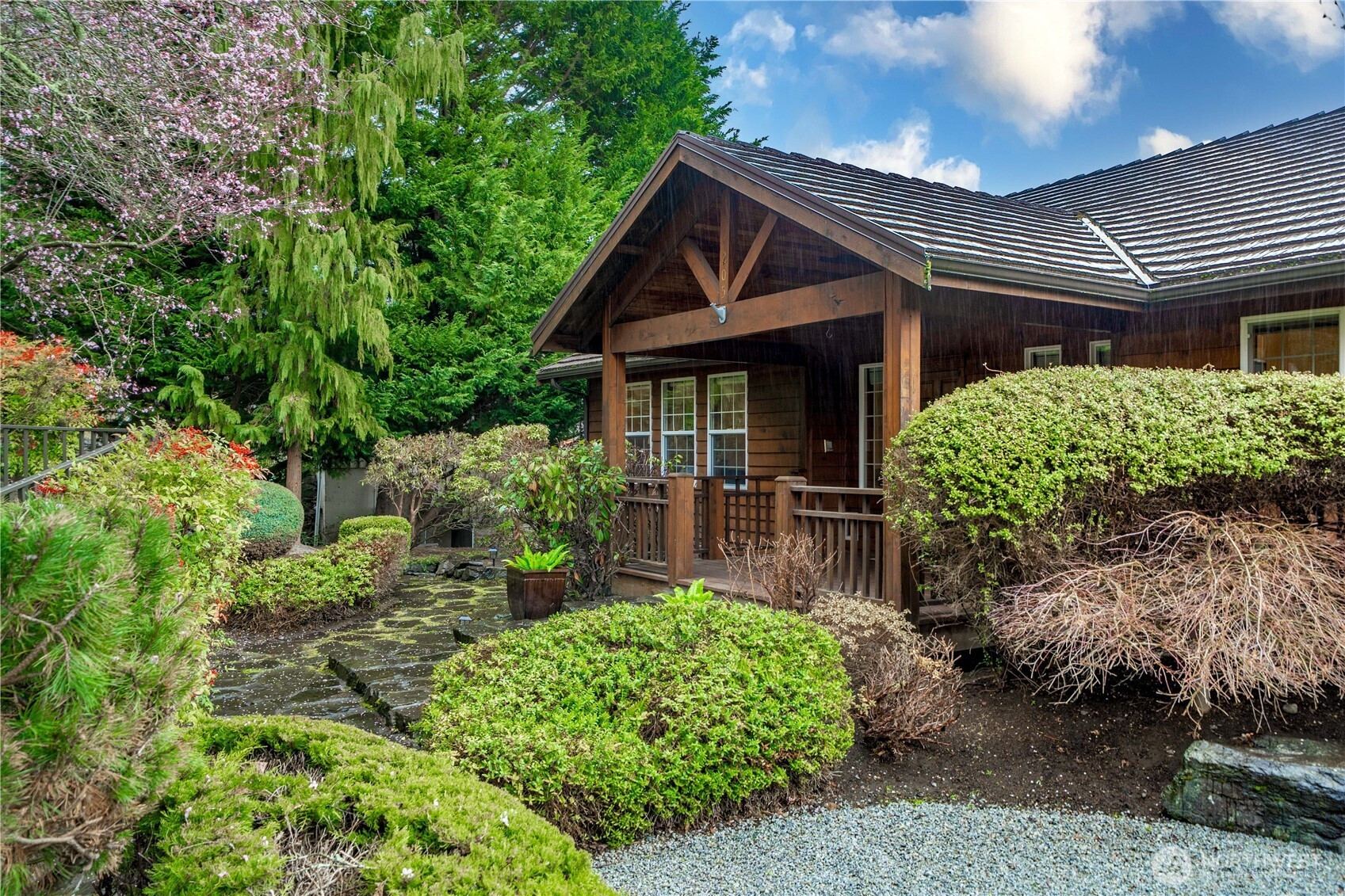 Come discover the NW mountain-lodge design of this incredible 2416 sf rambler with basement, now first time on the market. "Effective-year" built 2000 with all the Craftsman charm of yesteryear. The professional landscape welcomes you along the natural stone pathway with native plants for every season. Sit on the covered front porch & take in the tranquil sights & sounds of the waterfall & pond. Enter the foyer & pause to enjoy the high-vaulted tongue-and-groove ceiling, where the warmth of natural wood is accentuated in the millwork, floors, doors, cabinetry & built-ins. The main floor includes a circular floor plan for the formal living room, dining room, & open concept kitchen & family room. Escape down the hall to the private primary suite with a 5-piece bath & a spacious walk-in closet. The main floor also offers a convenient half bath & office. The back deck spans the full width of the house, offering a wonderful view of the sunrise across the Cascade Mountains. Downstairs is a fully finished daylight walk-out basement with a fireside gathering area, two additional bedrooms, a 3/4 bath & spacious laundry room. The attached 528 sf garage is accessed from the basement with plenty of room for two cars plus a workbench & storage. The backyard offers a level playground, a garden shed, & plenty of parking for your RV & outdoor toys. Freshly painted interior, restored hardwood floors, & new carpet for the new buyers. Seller pre-inspected & move-in ready. Lifetime metal roof.