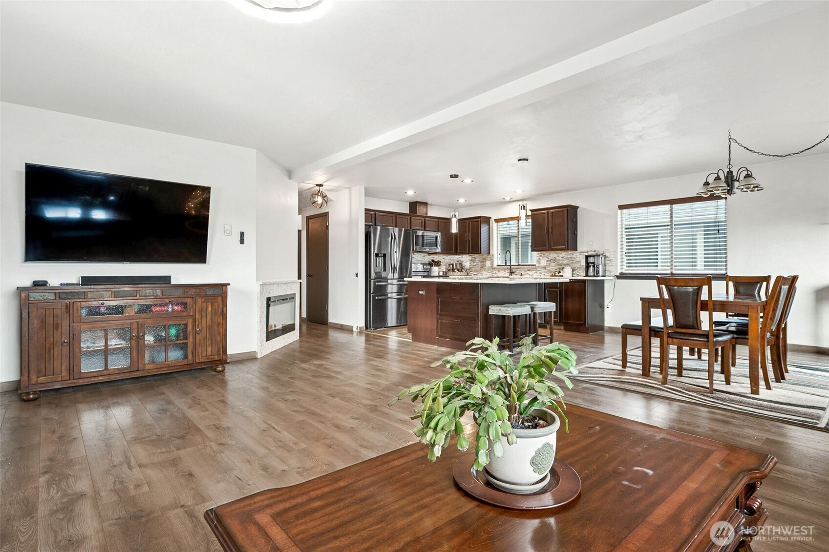 Welcome home to this inviting & spacious residence in the desirable Holland Glen community. Durable hard-surface flooring throughout, a welcoming living room that flows into the dining area, & a well-appointed kitchen featuring an island & SS appliances. Main-floor den/office provides flexibility for work or guests. Upstairs, you’ll find a primary suite with a full bath, along with three additional bedrooms & a full bathroom. A convenient 2-car garage adds everyday ease. Outside, enjoy the fully fenced backyard w/a deck, ideal for relaxing or hosting, or take advantage of the nearby community park. Conveniently located close to JBLM, shopping, dining, & daily amenities, this home delivers comfort, functionality, & an excellent location.