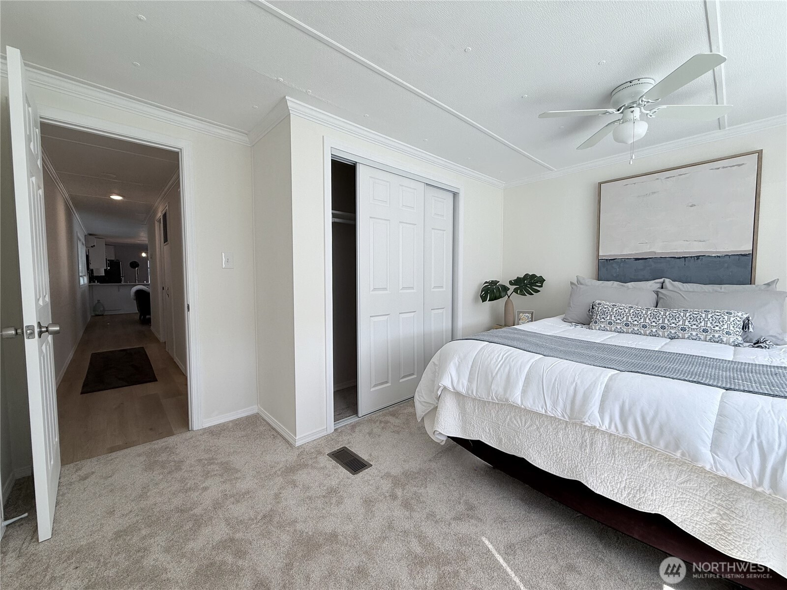 Beauty meets COMFORT & convenience in this budget-friendly, tastefully updated 2-bedroom, 1-bath mobile home in a safe and friendly ALL AGES park! Inviting landscaping & private yard in a quiet corner of the park - complete with carport, storage shed, and patio to set up your BBQ and enjoy the outdoors. BRIGHT, welcoming atmosphere with fresh paint inside & out, new flooring, new vinyl windows, & energy efficient heat pump for AC. Spacious eat-in kitchen with NEW stainless appliances, quartz counters, quality soft close cabinets. Large primary bedroom, NEW washer/dryer. SUPER location, just off Hwy 7, close to shopping (Walmart, Starbucks), & new transit center. Don't miss the opportunity to make this charming, unbeatably priced home yours!