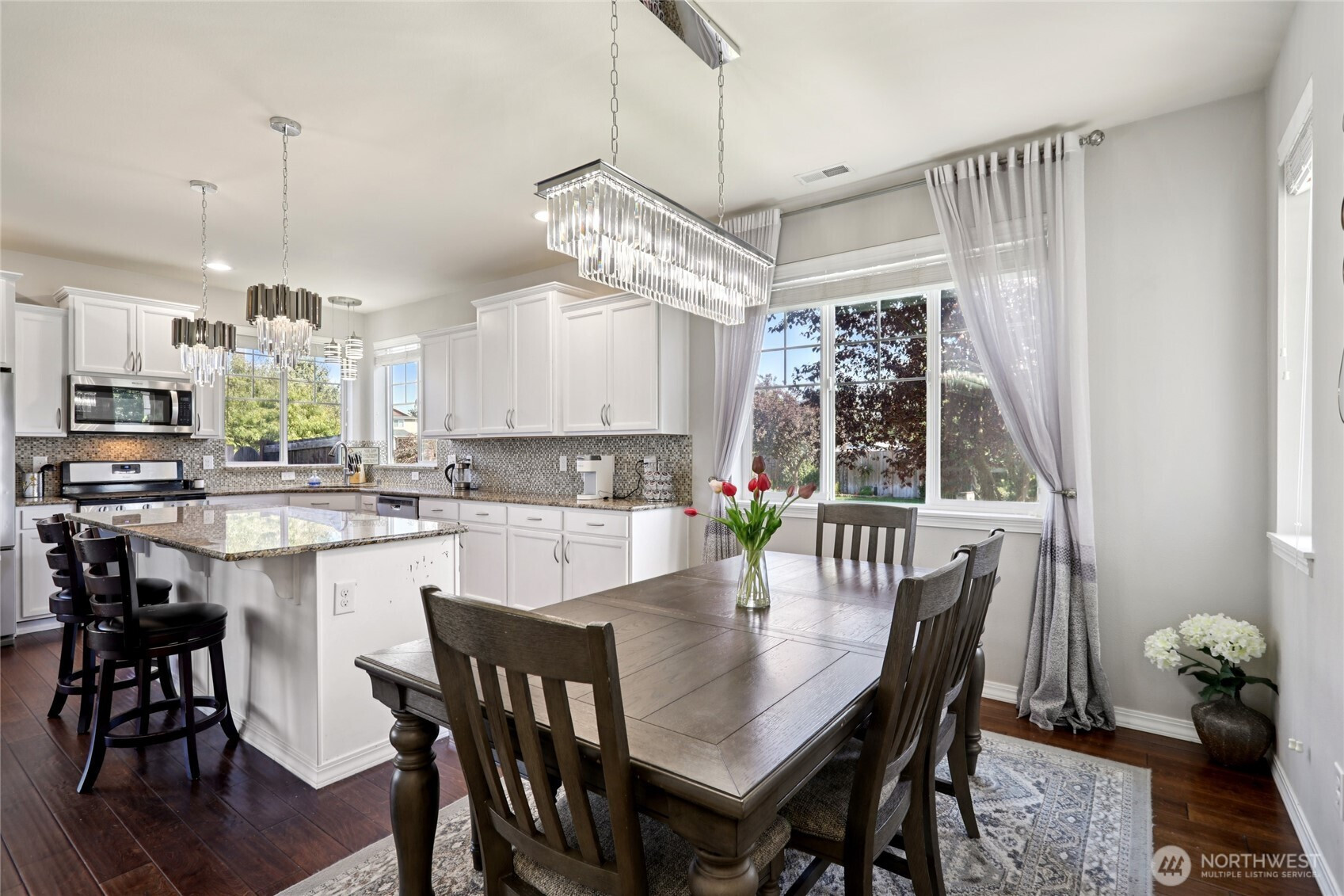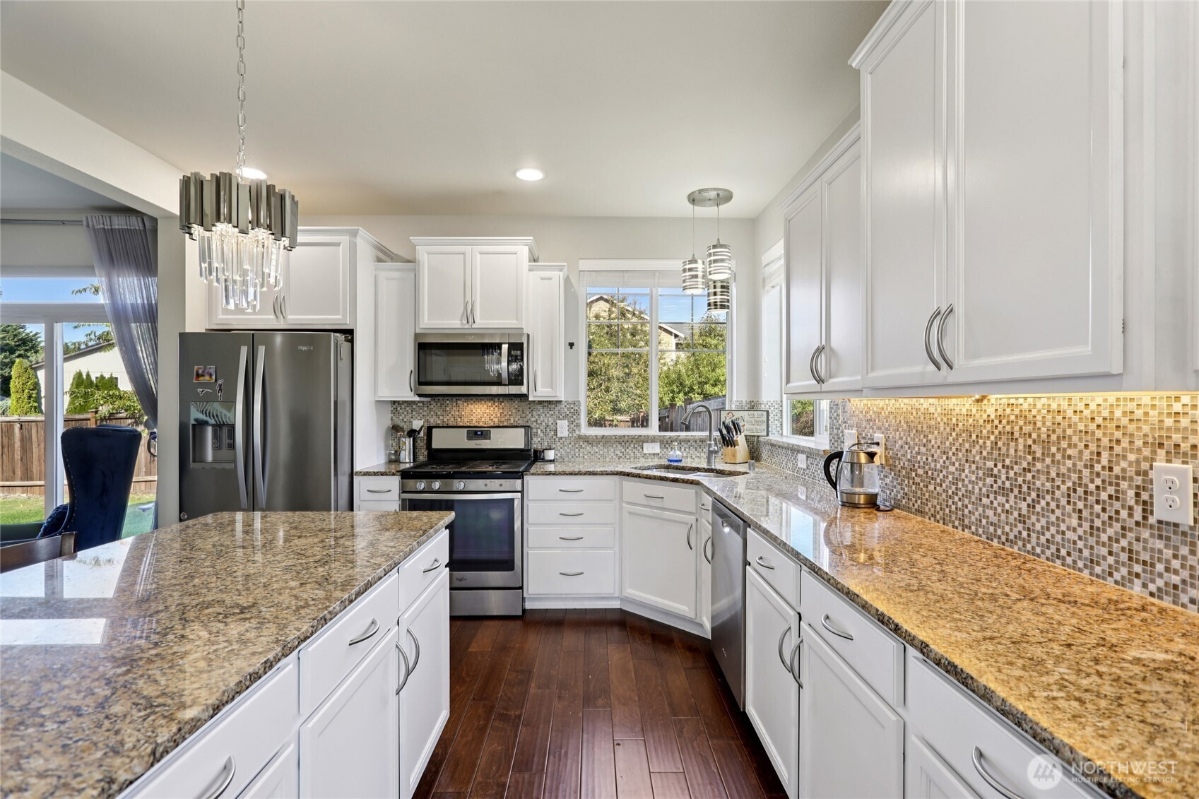 This impeccably maintained home has all of the space you desire, with a huge corner lot and in a wonderful neighborhood! Upon entering the home you'll see how the natural light floods every corner! The kitchen boasts white cabinets w/ under lighting, capped w/ real granite counters, mosaic back splash, all SS appliances & a view from the kitchen sink bay window! Flowing into the great room you'll find ample space, gas fireplace w/ mantle & more windows! Upstairs are a total of 4 bedrooms each w/ ceiling fans & a primary en suite w/ dual sinks, huge soaking tub and large walk in closet! Don't miss the spacious 2 car garage with tons of overhead storage, 220 outlet for car charger and yes...a window! Lastly a large back & side yard to enjoy!