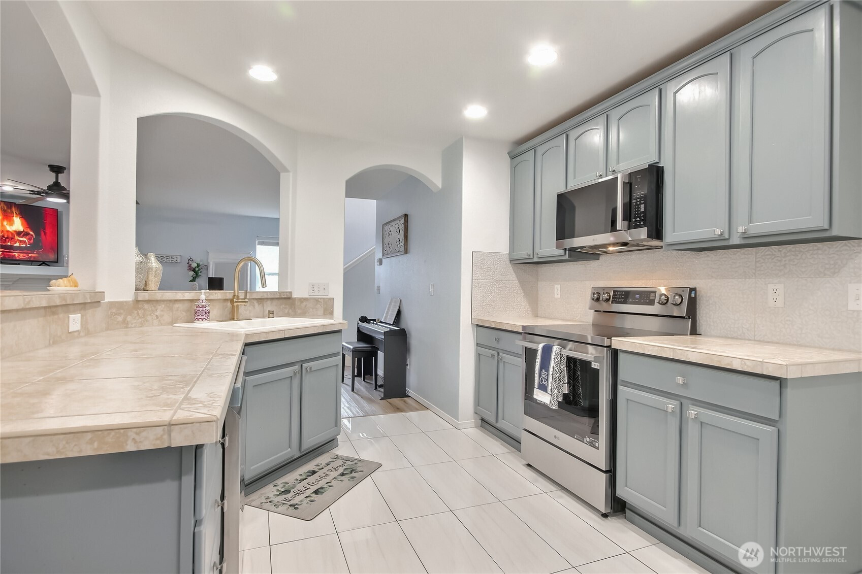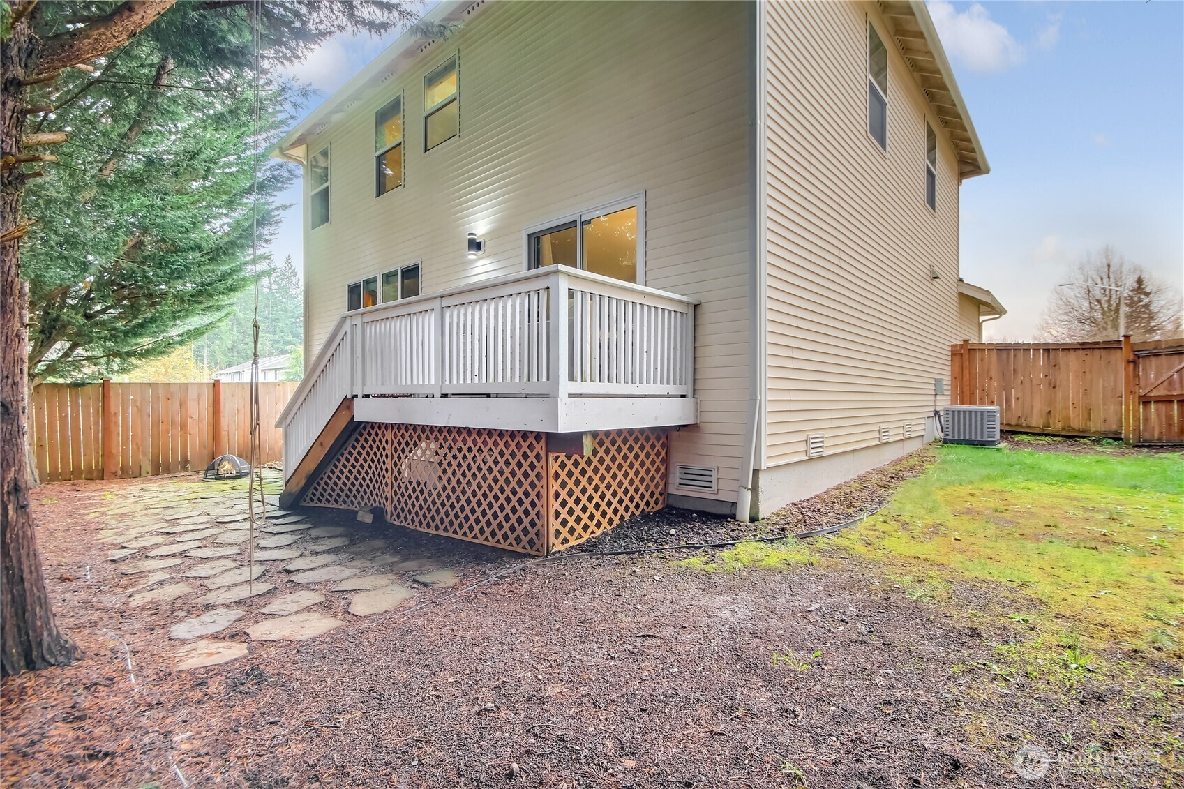 Welcome home, this 3 bedroom, 2.5 bathroom home at the end of street is what you've been looking for! The main floor includes a half bath and two large coat closets in foyer. Newer LVP flooring, gas fireplace & large windows that highlight the living room. A formal dining area, an open floorplan, and an ample kitchen with pantry. NEW kitchen tile flooring, backsplash, and brand new kitchen appliances. Upstairs you'll find a large primary room with walk-in closet & en-suite bathroom, followed by the walk-in laundry room, two additional spacious bedrooms and a full bath complete the upstairs. Fully fenced, private backyard perfect for Summer BBQs. Two car garage and Plenty of street parking. Close to shopping, JBLM, and recreation parks.