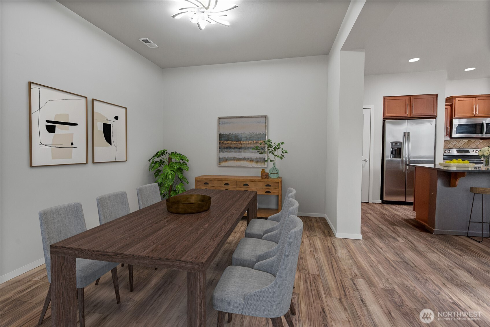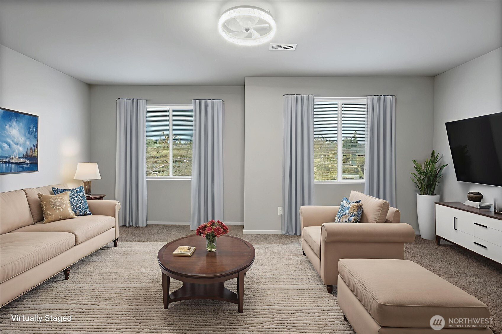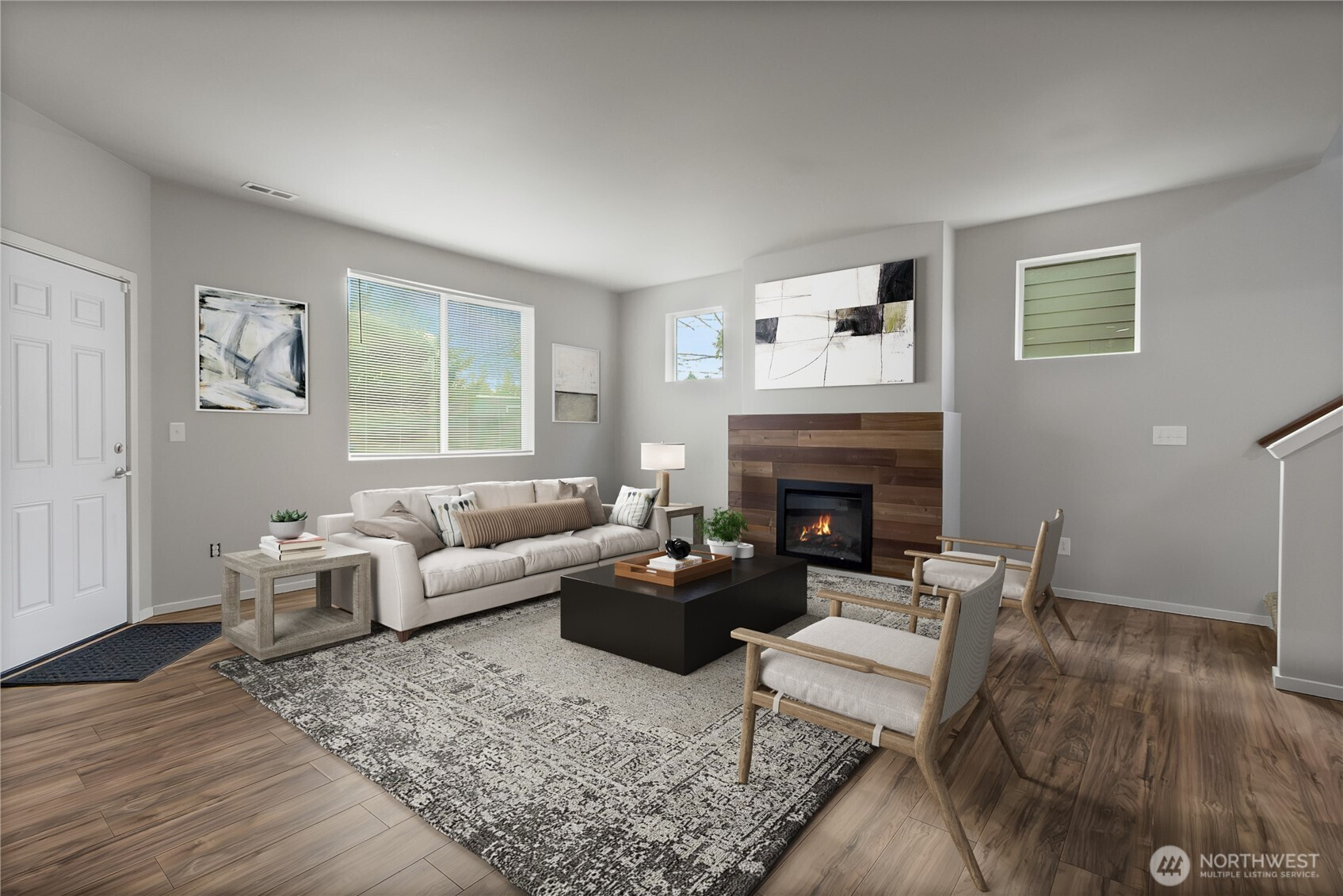 Welcome to this inviting home offering comfort, functionality, and flexible living spaces. A cozy fireplace anchors the main living area, creating the perfect gathering spot for relaxing evenings or entertaining guests. The kitchen features stainless steel appliances and granite countertops, combining style with everyday practicality. A spacious bonus room provides excellent versatility and could easily serve as a 4 bedroom, home office, or media room. The primary suite includes a convenient double vanity to simplify busy mornings. Step outside to a fully fenced backyard offering privacy and security for pets, play, or hosting gatherings. The durable concrete patio creates a low-maintenance outdoor living area ideal for barbecues or year-round enjoyment. An EV charging setup adds modern convenience for today’s homeowner. Located just minutes from JBLM, this home offers an easy commute while maintaining a comfortable residential setting. Come see it in person and discover all it has to offer. Schedule your private showing today!