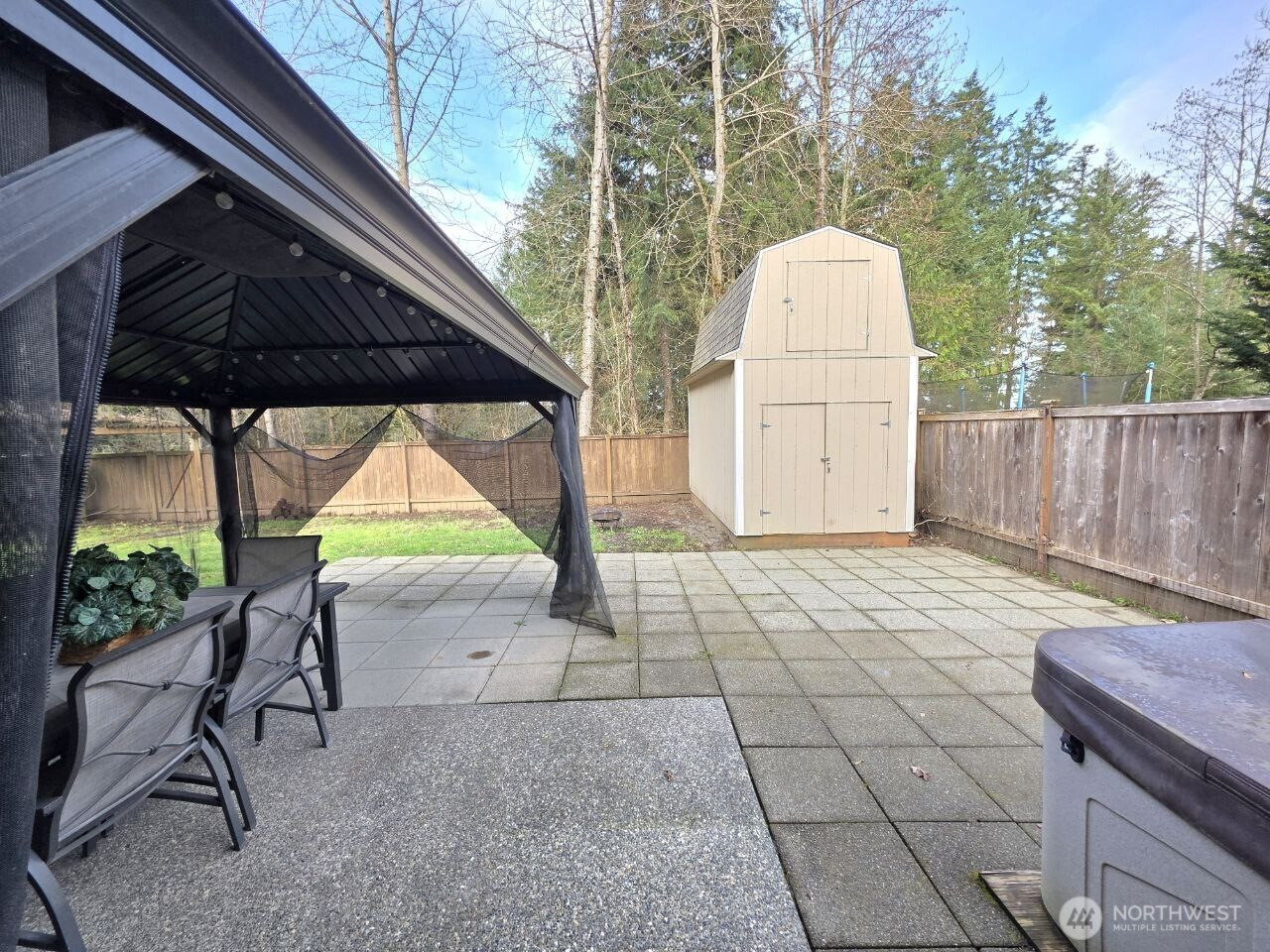 Priced to sell! Located in the highly desirable gated community of The Buttes in Orting. Set on a quiet dead-end street and backing to a peaceful greenbelt, this spacious 3-bed, 2.5-bath home is the perfect home. Potential detached ADU with loft provides additional living space—Perfect for a guest suite or MIL, or gym/office/ hobby/workshop or generate rental income. Buyers are encouraged to verify uses with the City of Orting. Ideal setting for privacy & country living. The main level features an inviting open floorplan that seamlessly connects the living room, dining, and kitchen. Large windows bring in natural light, laminate wood flooring throughout. The kitchen has ample counter space and a walk-in pantry. Upstairs, you’ll find 2 generously sized bdrms + a luxurious primary bdrm complete with a 5-piece ensuite bath and a walk-in closet—a perfect private retreat at the end of the day. This home offers peace of mind with a 2-year old roof, seller will leave portable home generator, and window A/C units for year-round comfort. New custom blinds on all windows and sliding door. The expansive backyard is built for relaxation and fun, featuring a gazebo, detached multipurpose structure, and a hot tub that stays with the home. The 2-car garage is equipped w/ automatic doors and remote. Enjoy direct access to community walking trails, a daycare within walking distance, and the convenience of an RV park with year-round storage for your RV/boat.
