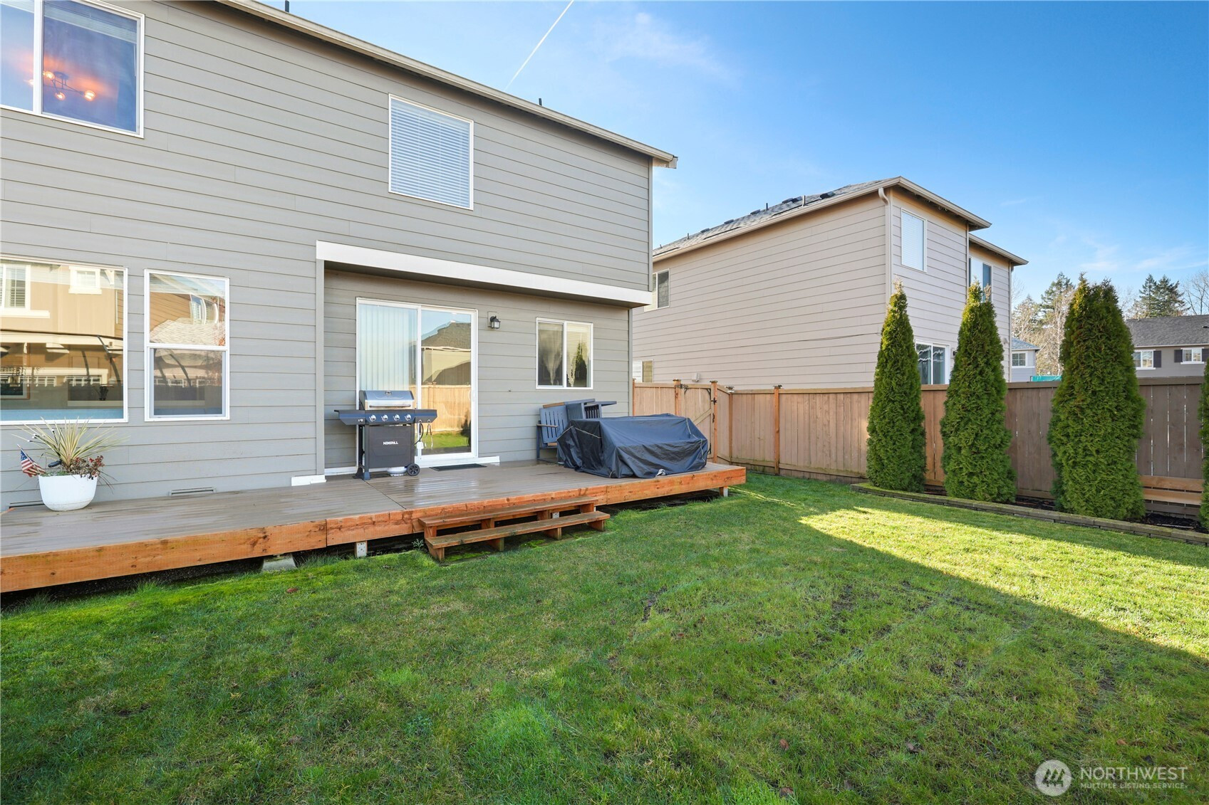 Discover comfort, style, and space in this inviting 5-bedroom, 2.75-bath home in Bonney Lake featuring a charming covered front porch. The gourmet kitchen showcases stainless steel appliances and a central island that opens seamlessly to the formal dining area and living room with a cozy electric fireplace. A convenient main-level 3/4 bath and versatile room offers flexibility for a bedroom or office. Upstairs include a spacious bonus room, laundry area, full bath, and 4 bedrooms, including a primary suite with a 5-piece bath. Enjoy outdoor living in the large fully fenced yard with deck, ideal for relaxing or entertaining. An attached 2-car garage adds convenience, while the location offers easy access to dining, shopping, and nearby parks.