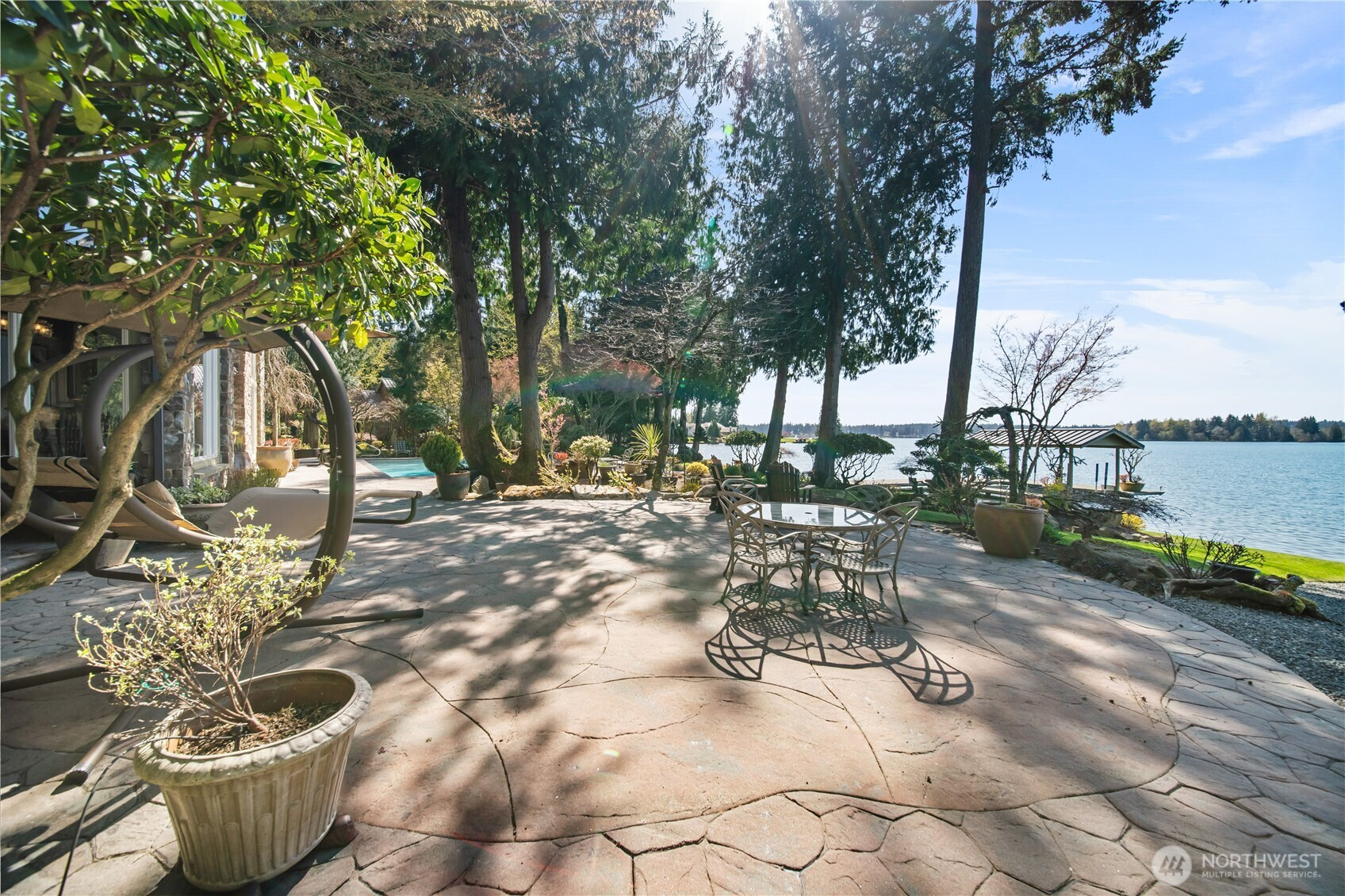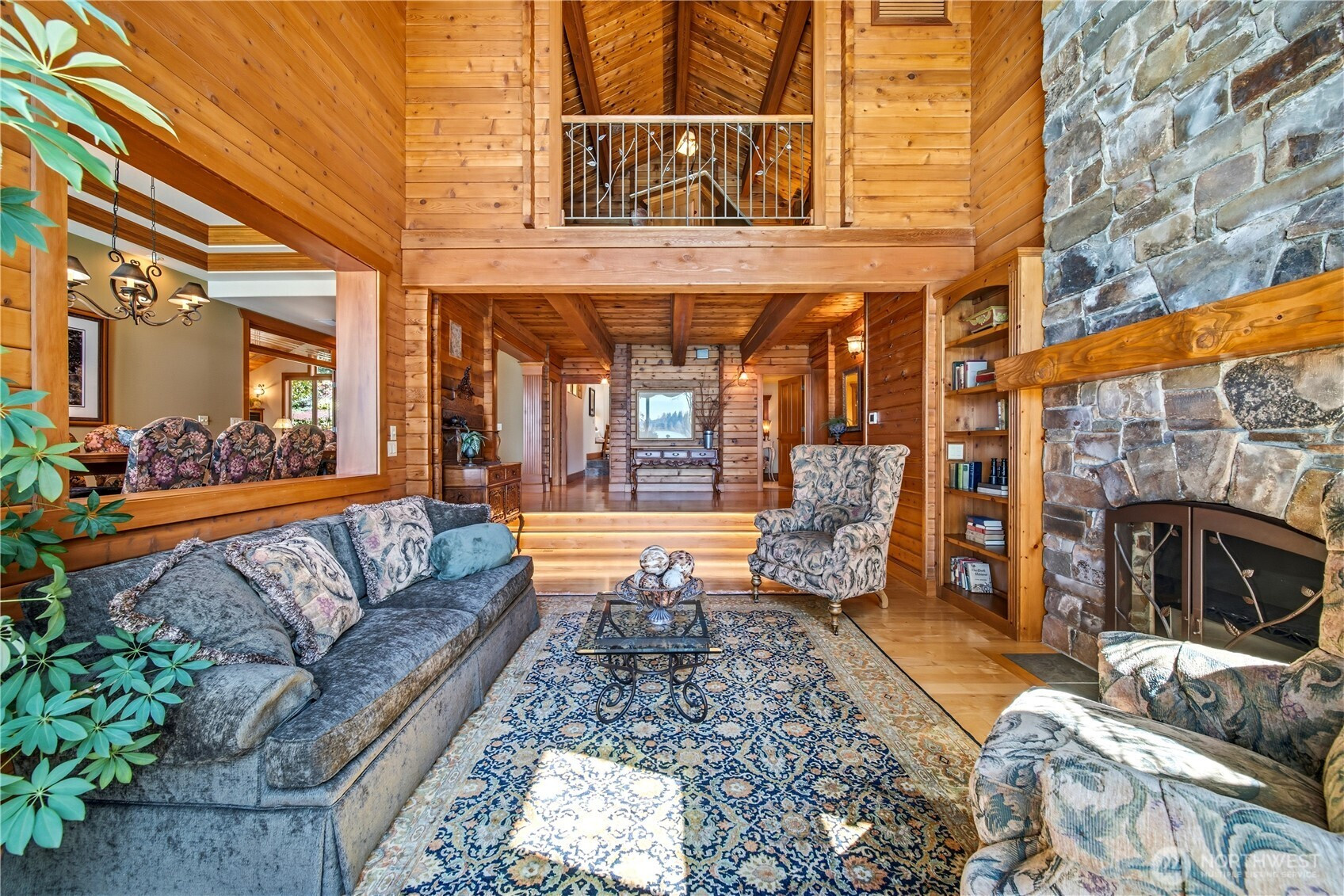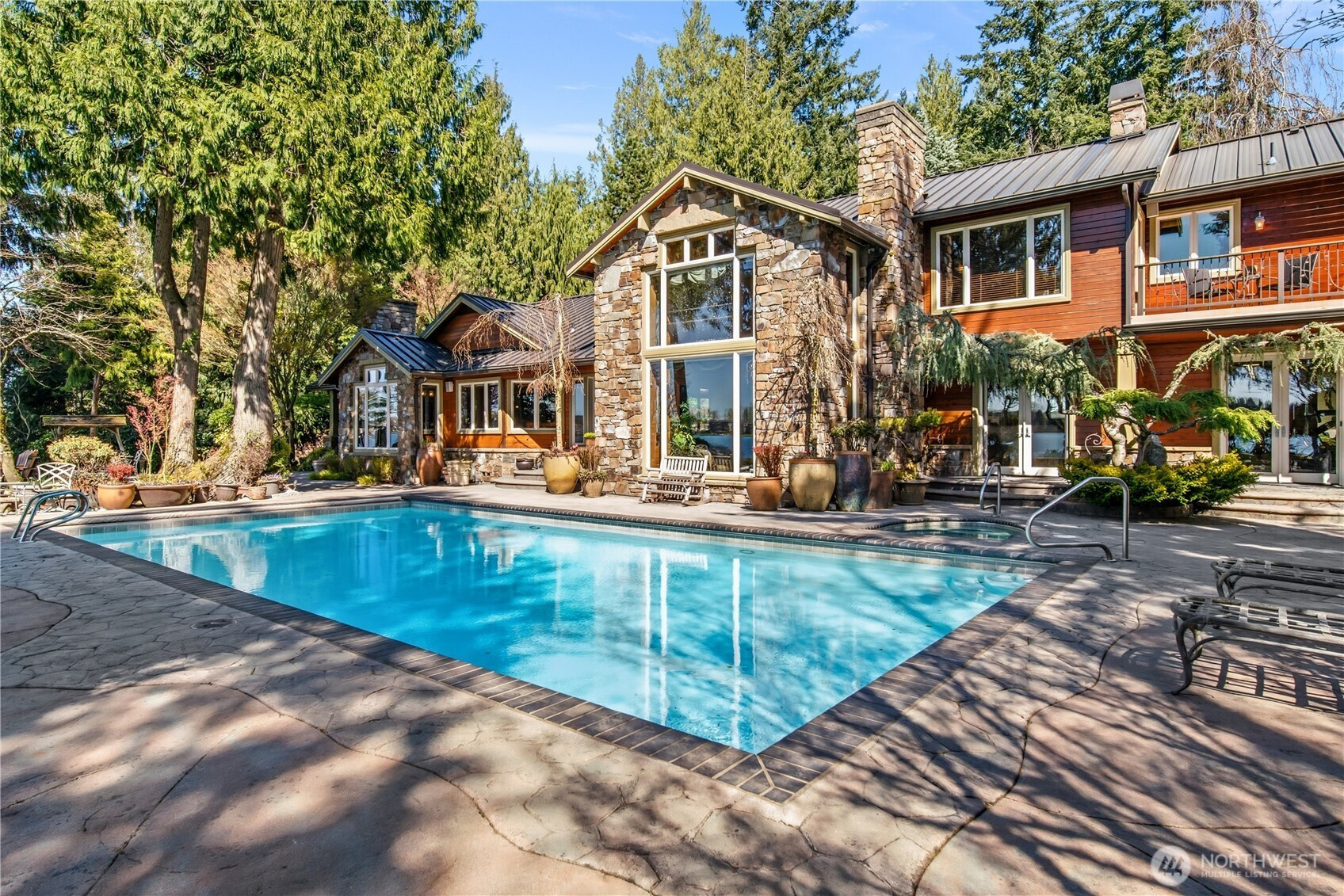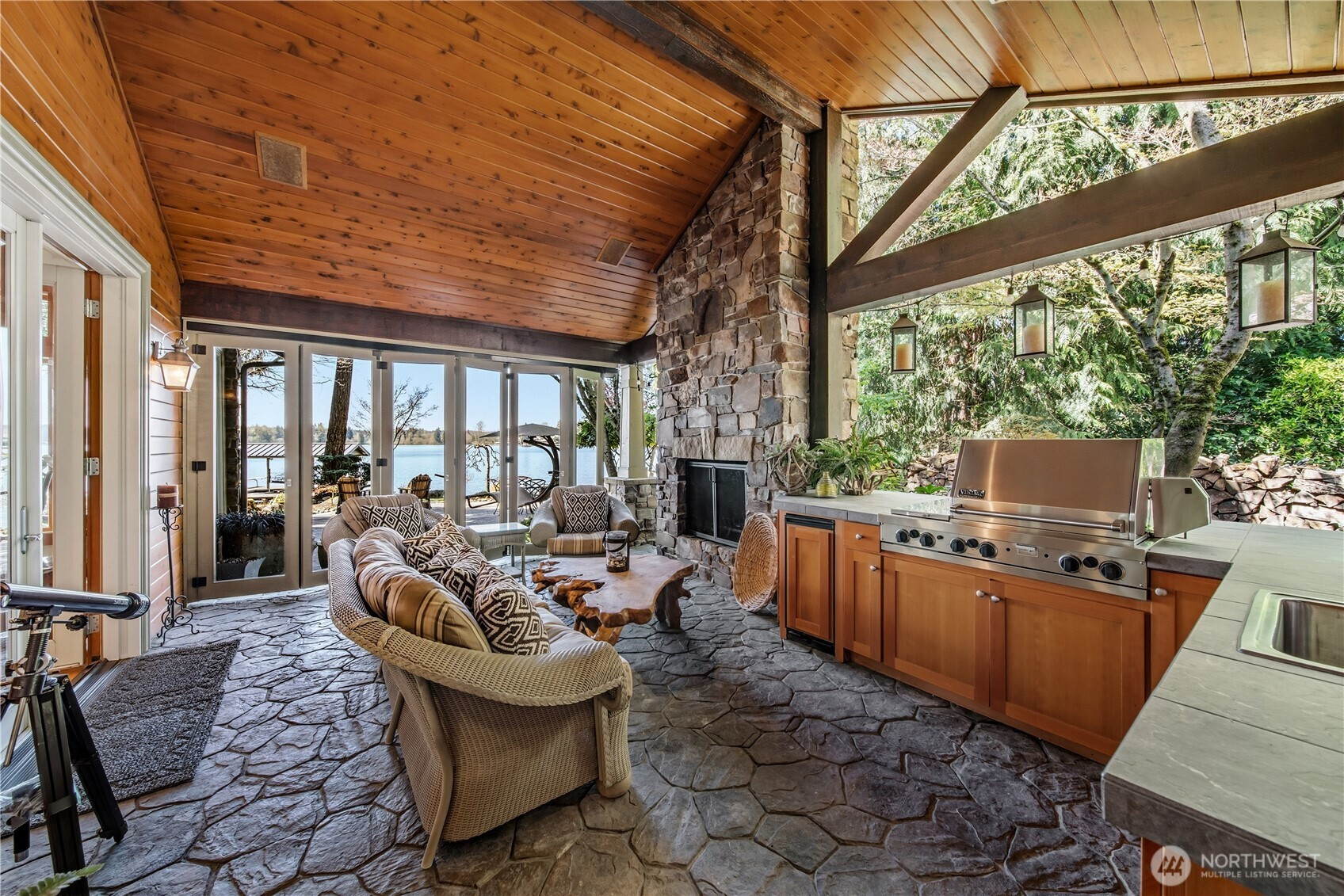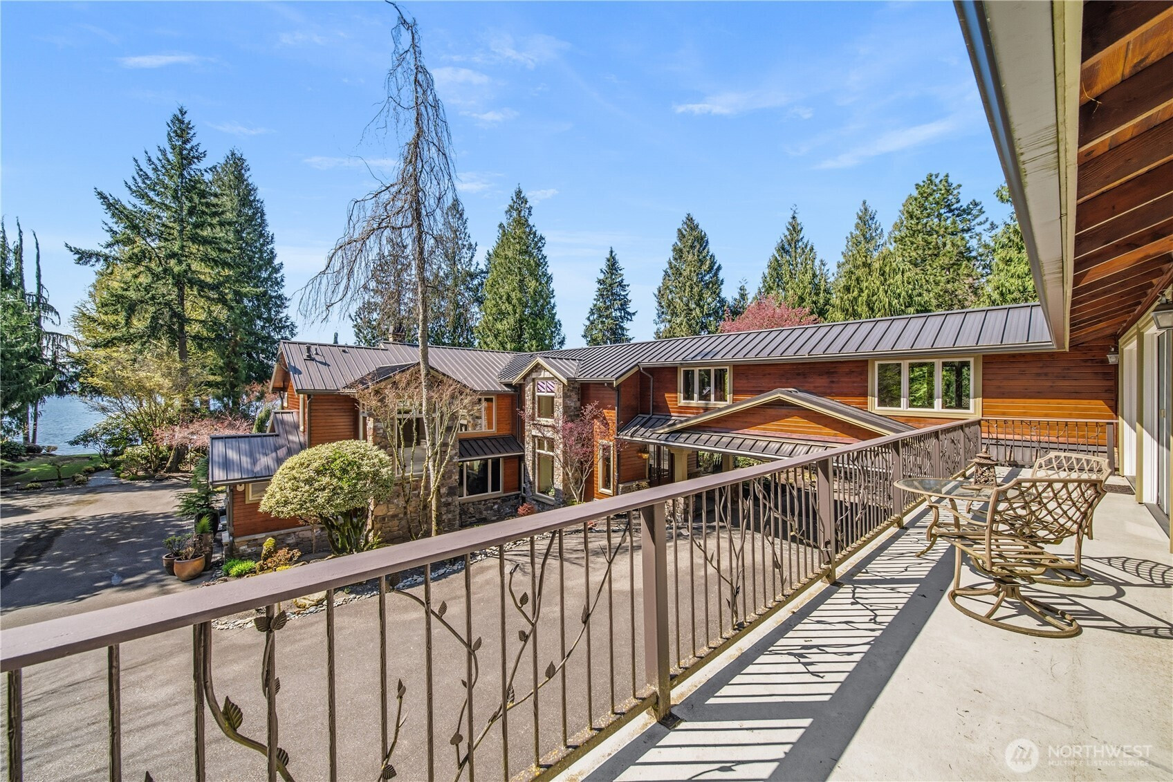 One of Lake Tapps’ most extraordinary waterfront estates, this rare Snag Island property offers 2.56 private acres with an incredible 290 feet of no-bank frontage and sweeping western-facing open water views. The impressive lodge-style residence spans over 7,000 square feet and showcases soaring two-story vaulted ceilings, rich wood and stone accents, and expansive windows framing breathtaking lake views throughout. Designed for both luxurious living and unforgettable entertaining, the home features 5 bedrooms, 4 bathrooms, an exercise room, and an oversized bonus room complete with a second kitchen—ideal for gatherings or extended living. The expansive chef’s kitchen overlooks the lake and flows seamlessly into the grand living spaces. Outdoors, the impeccably landscaped grounds create a resort-like retreat with an in-ground swimming pool, tranquil water features, and a covered outdoor BBQ area with fireplace for year-round entertaining. Additional highlights include five fireplaces, a massive 2,400 sq ft six-car attached garage with portico entry, and a 1,886 sq ft detached RV garage offering exceptional storage. Gated entry, abundant parking, private dead-end lane, covered dock slip with lift, and located within the highly sought-after Dieringer School District. Truly a one-of-a-kind property.