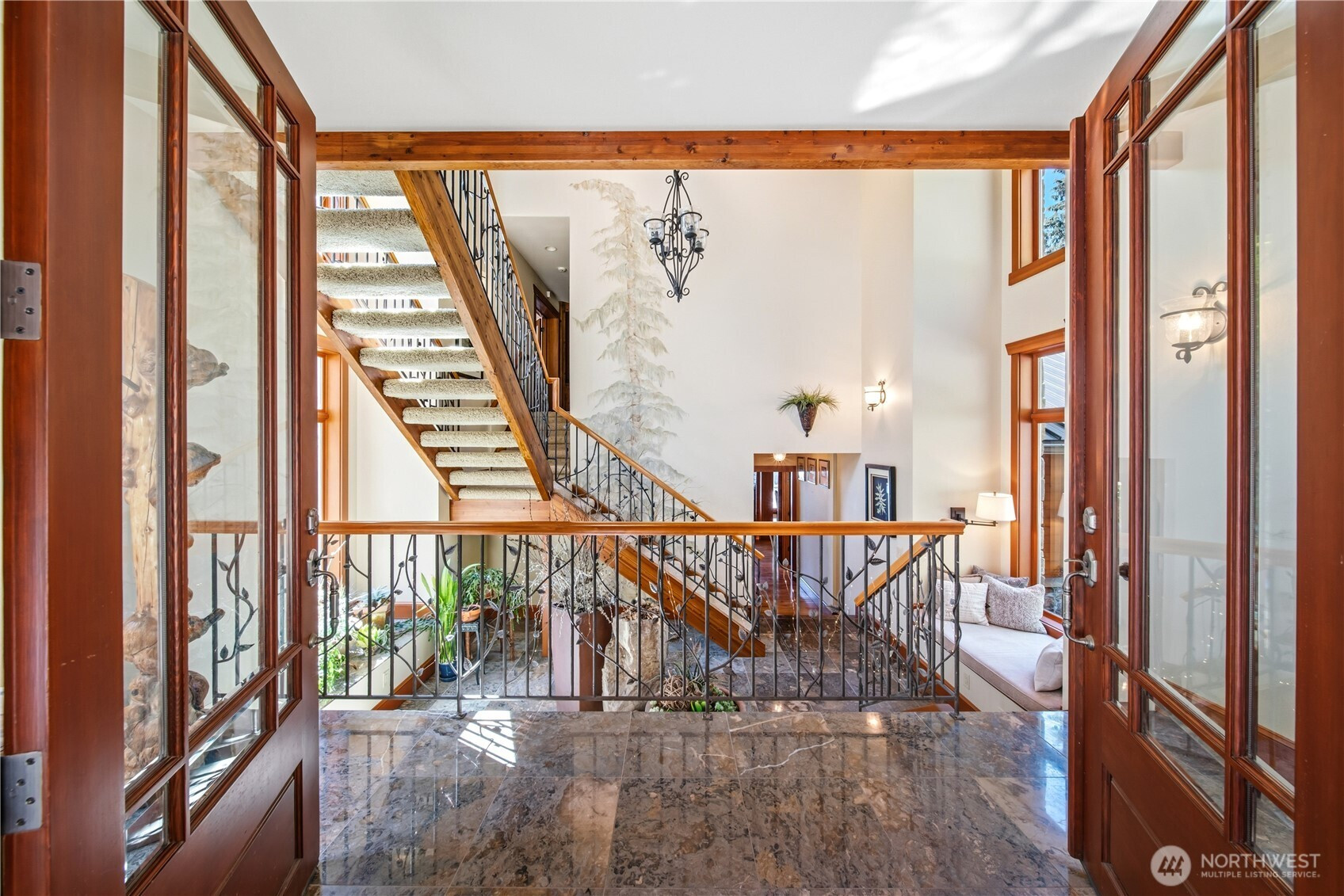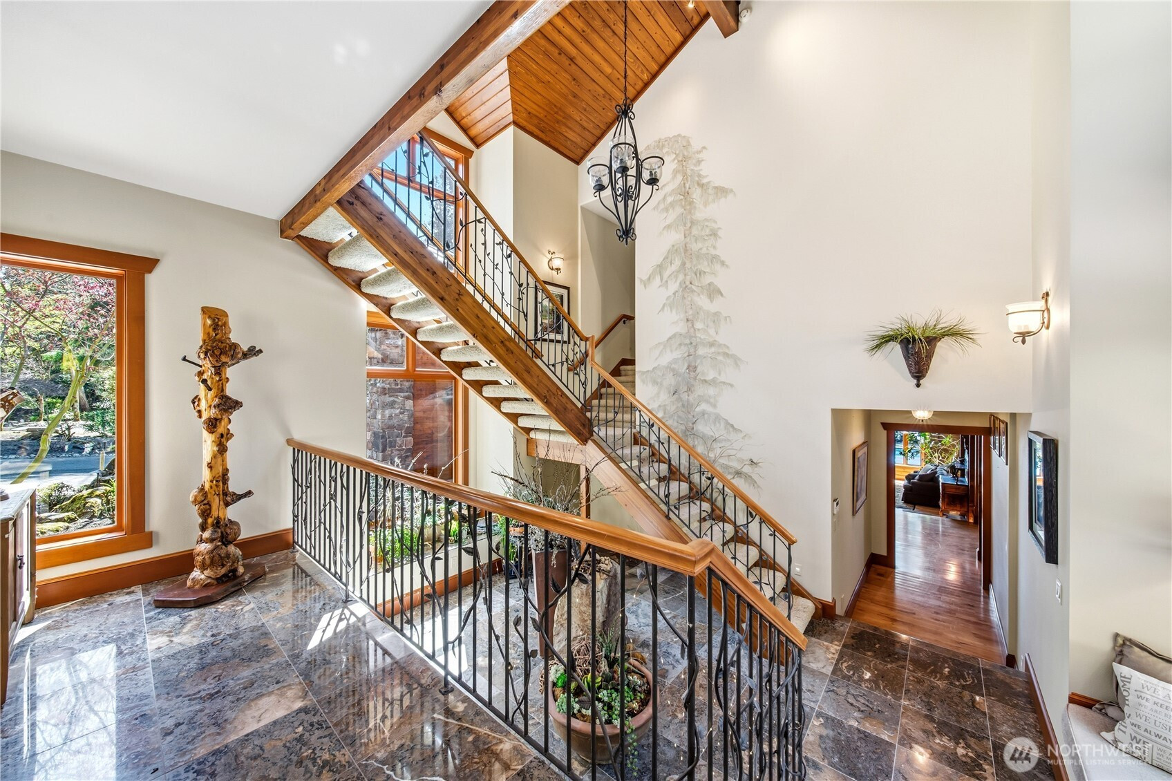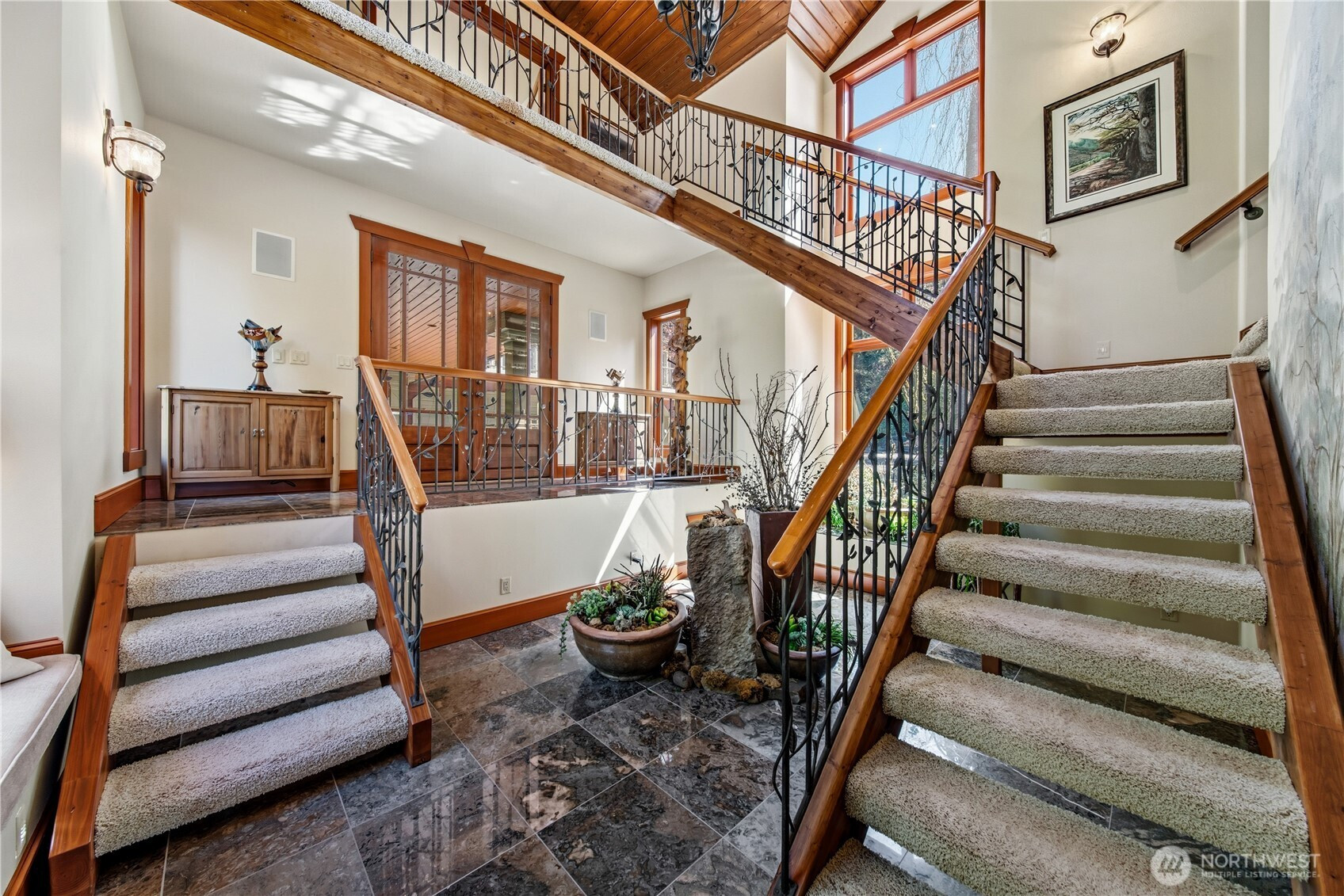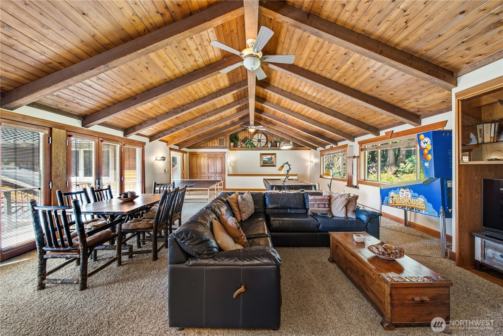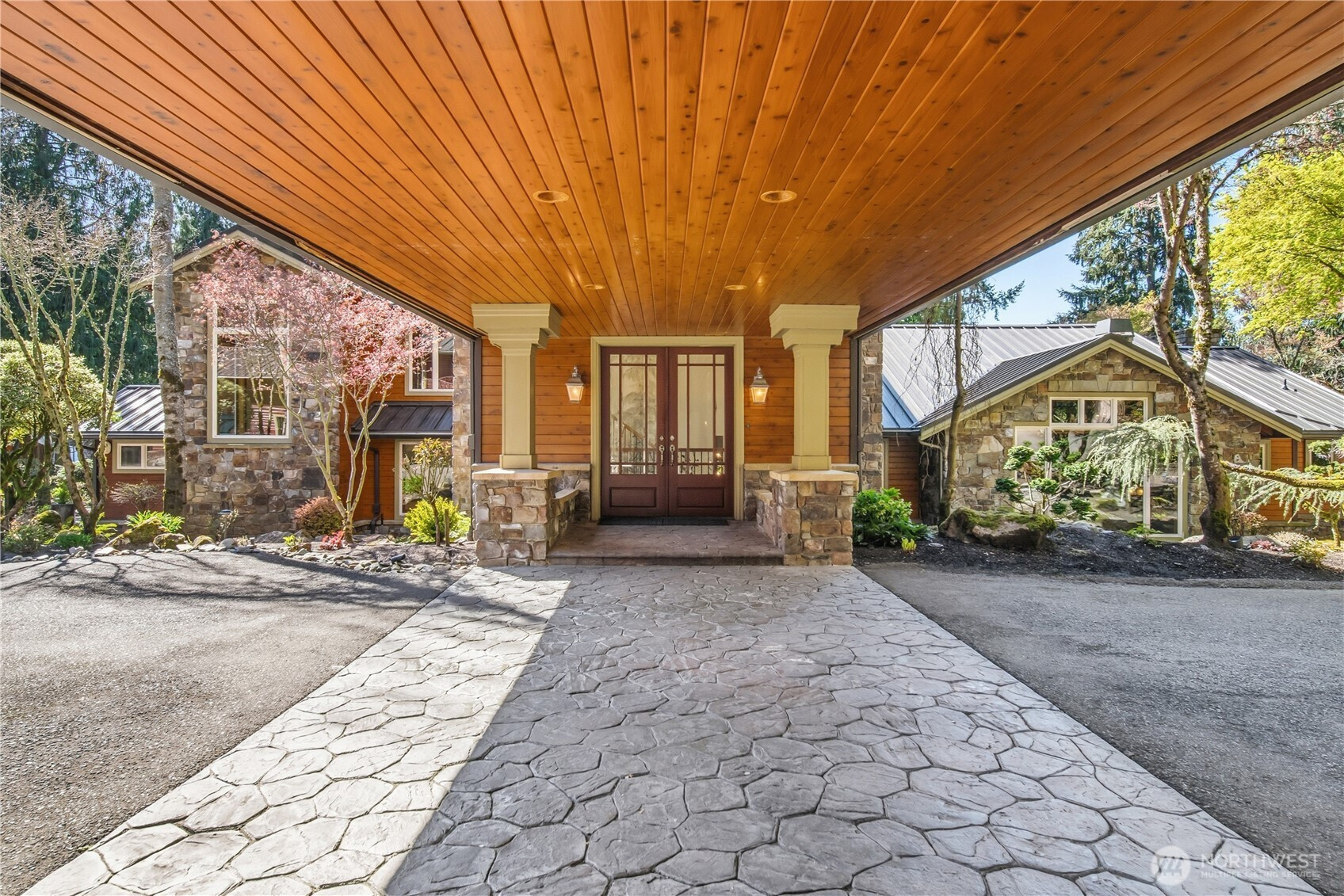 One of Lake Tapps’ most extraordinary waterfront estates, this rare Snag Island property offers 2.56 private acres with an incredible 290 feet of no-bank frontage and sweeping western-facing open water views. The impressive lodge-style residence spans over 7,000 square feet and showcases soaring two-story vaulted ceilings, rich wood and stone accents, and expansive windows framing breathtaking lake views throughout. Designed for both luxurious living and unforgettable entertaining, the home features 5 bedrooms, 4 bathrooms, an exercise room, and an oversized bonus room complete with a second kitchen—ideal for gatherings or extended living. The expansive chef’s kitchen overlooks the lake and flows seamlessly into the grand living spaces. Outdoors, the impeccably landscaped grounds create a resort-like retreat with an in-ground swimming pool, tranquil water features, and a covered outdoor BBQ area with fireplace for year-round entertaining. Additional highlights include five fireplaces, a massive 2,400 sq ft six-car attached garage with portico entry, and a 1,886 sq ft detached RV garage offering exceptional storage. Gated entry, abundant parking, private dead-end lane, covered dock slip with lift, and located within the highly sought-after Dieringer School District. Truly a one-of-a-kind property.