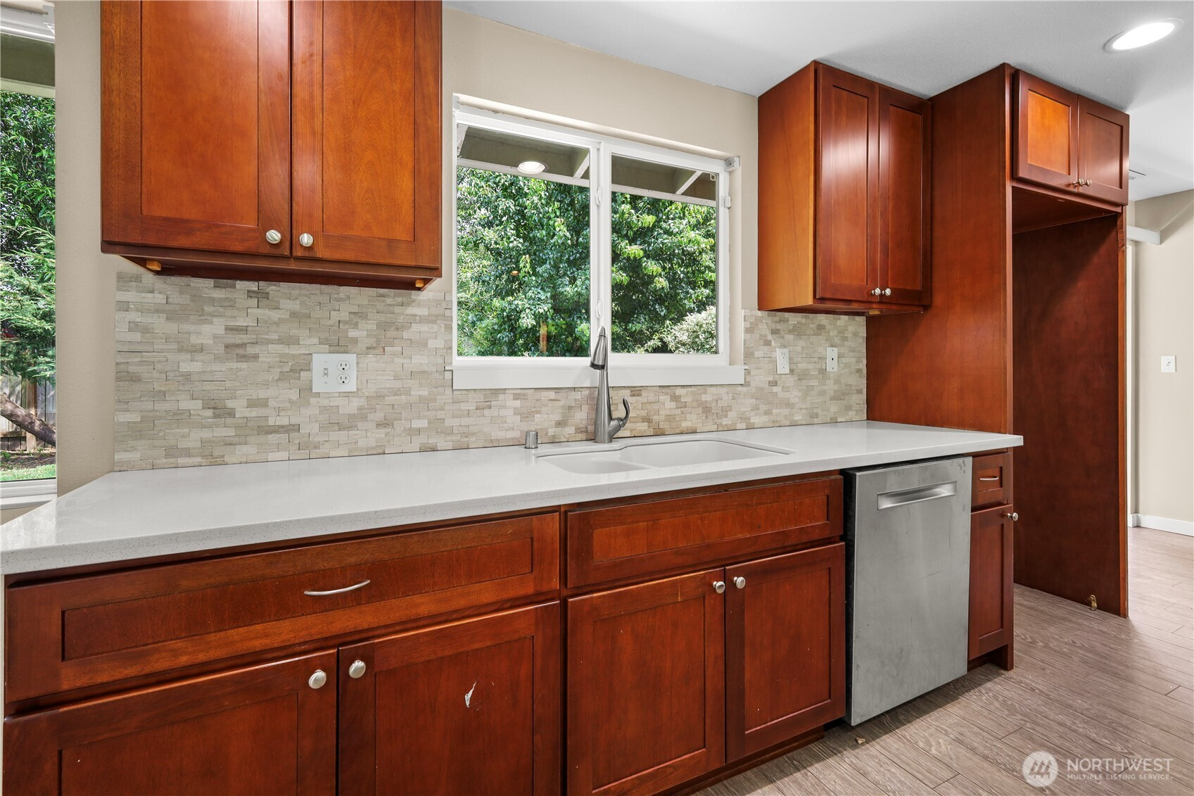 This fully renovated and stylish rambler is nestled in the heart of Lake Tapps, 1/2 block from Lake Tapps! Offering modern comfort with timeless charm, this home features a highly sought-after floor plan with 3 spacious bedrooms NEW CARPET, updated baths, and a light-filled great room W/ vaulted ceilings. The open-concept NEW kitchen boasts designer finishes, large island W/ Quartz. Primary suite complete with 3/4 bath. Newer LVP flooring. Step outside to a private yard chicken coop and with an expansive patio, ideal for outdoor gatherings. Additional highlights include Shared well so no water bill Newer roof, RV parking and wired for Gen-Tran for peace of mind. Located in the coveted Dieringer School District, Located on a dead end.