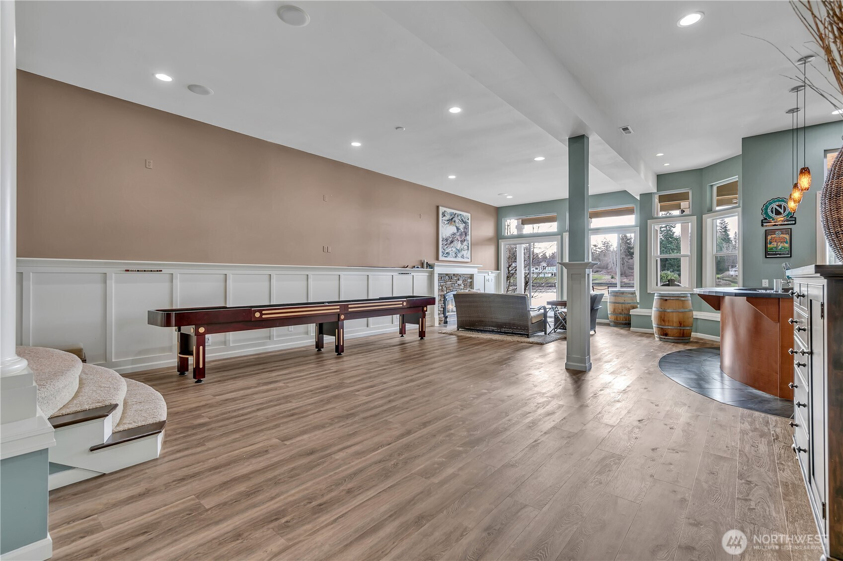 Stunning Lake Tapps Luxury Waterfront Retreat! Welcome to a breathtaking waterfront estate offering 77 feet of prime Lake Tapps shoreline, a private dock, & a boat lift—all w no HOA! This 3-bedroom, 5-bathroom home showcases vaulted ceilings & gourmet kitchen, perfect for entertaining. Indulge in luxury living w tiered home theater featuring six recliners, a full bar, & a wine cellar. The spacious recreation room is ready for all your favorite table games, while the office/den and bonus room provide flexibility for work & play. Enjoy all-day sunshine w western exposure & unwind w breathtaking water views. This is more than a home—it’s a lifestyle! Don’t miss the opportunity to own a one-of-a-kind waterfront sanctuary.