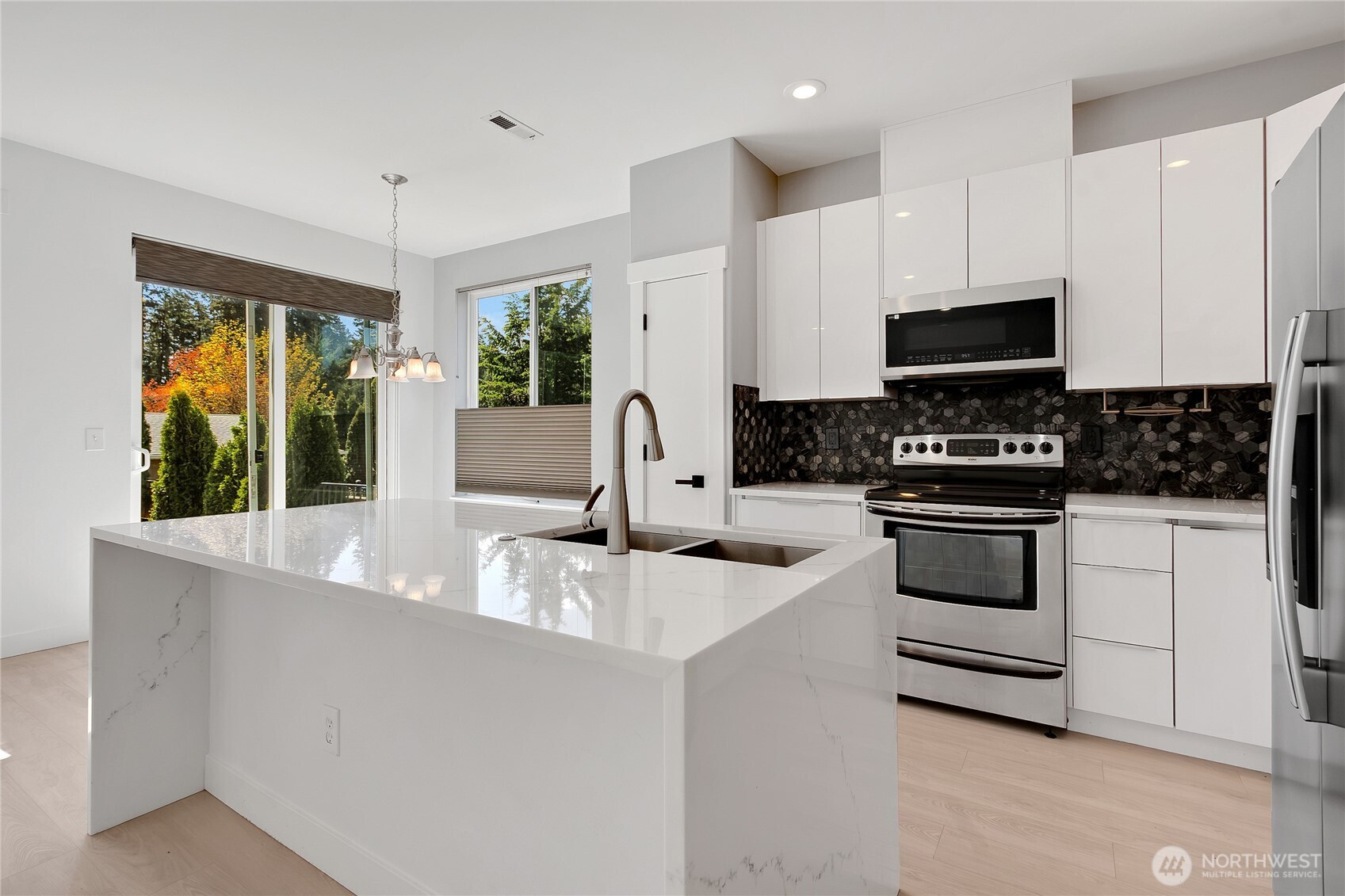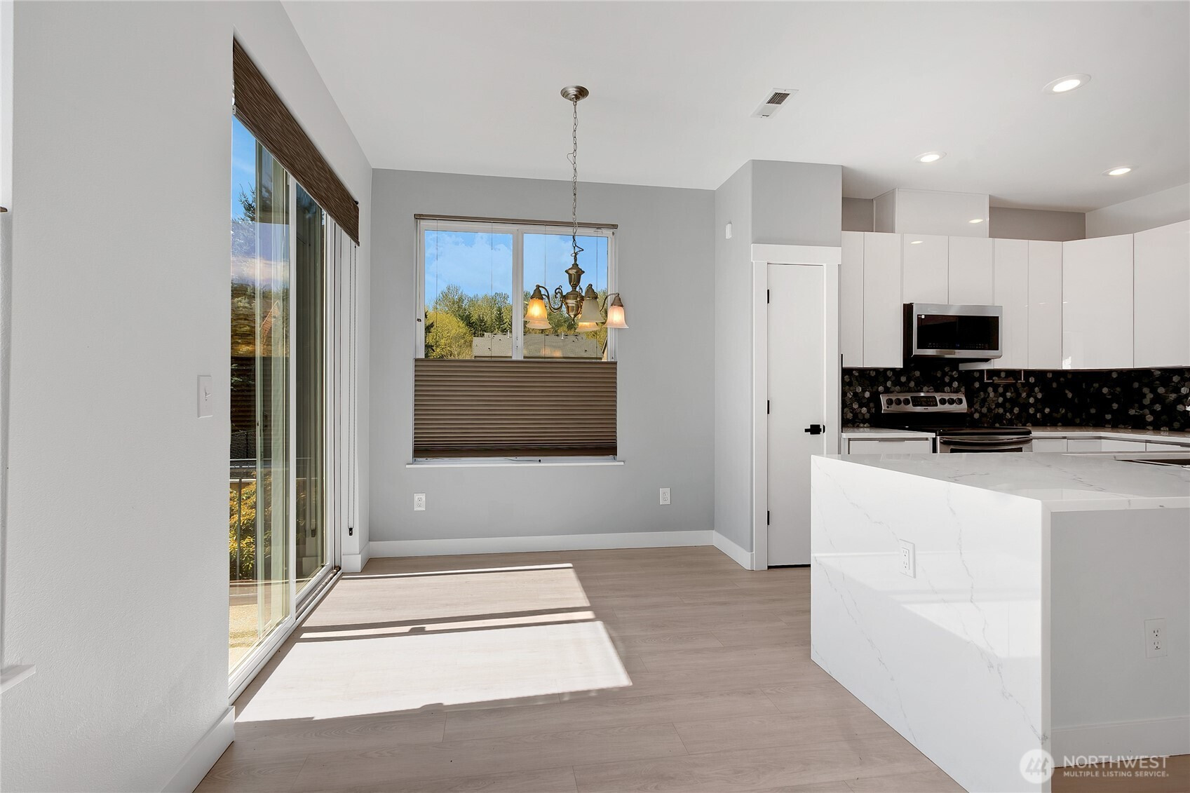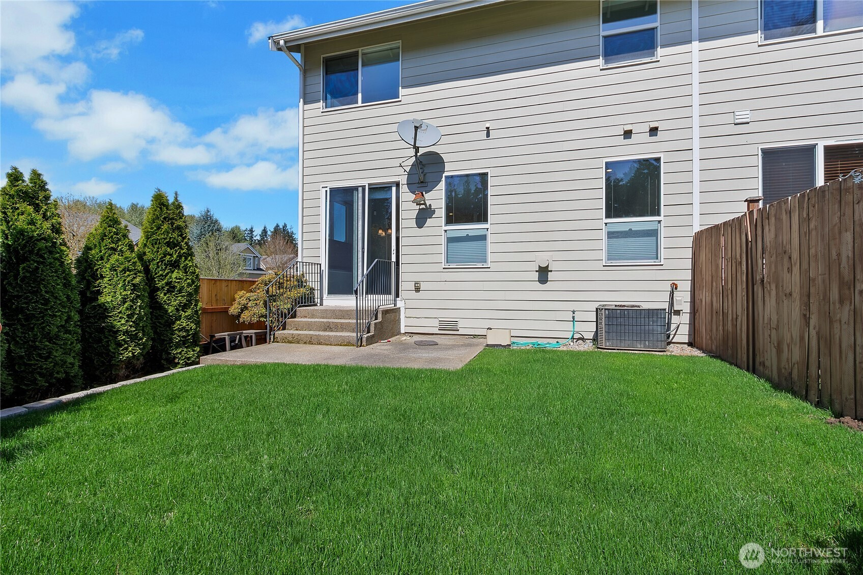 Beautiful former model home in the desirable East Pointe community of Bonney Lake with low HOA dues and thoughtful upgrades throughout. This spacious 1,881 sq ft townhouse offers 4 bedrooms and 2.5 baths, combining comfort, functionality, and style. The main level features durable laminate flooring, a versatile office/bonus room, and a convenient half bath. The open kitchen is designed to impress with quartz countertops, a full-height tile backsplash, stainless steel appliances, and a pantry for added storage.Enjoy year-round comfort with air conditioning and a cozy gas fireplace. Upstairs, the generous primary suite includes an extra-large walk-in closet, ceiling fan, and a private en-suite bath with a soaking tub and separate shower—perfect for relaxing at the end of the day.Additional highlights include wiring for surround sound and security, a fully fenced corner lot, and low-maintenance living with the HOA covering front yard care and irrigation. Ample parking is a bonus with a long driveway and attached 2-car garage. This home offers the perfect blend of space, upgrades, and convenience in a sought-after location!