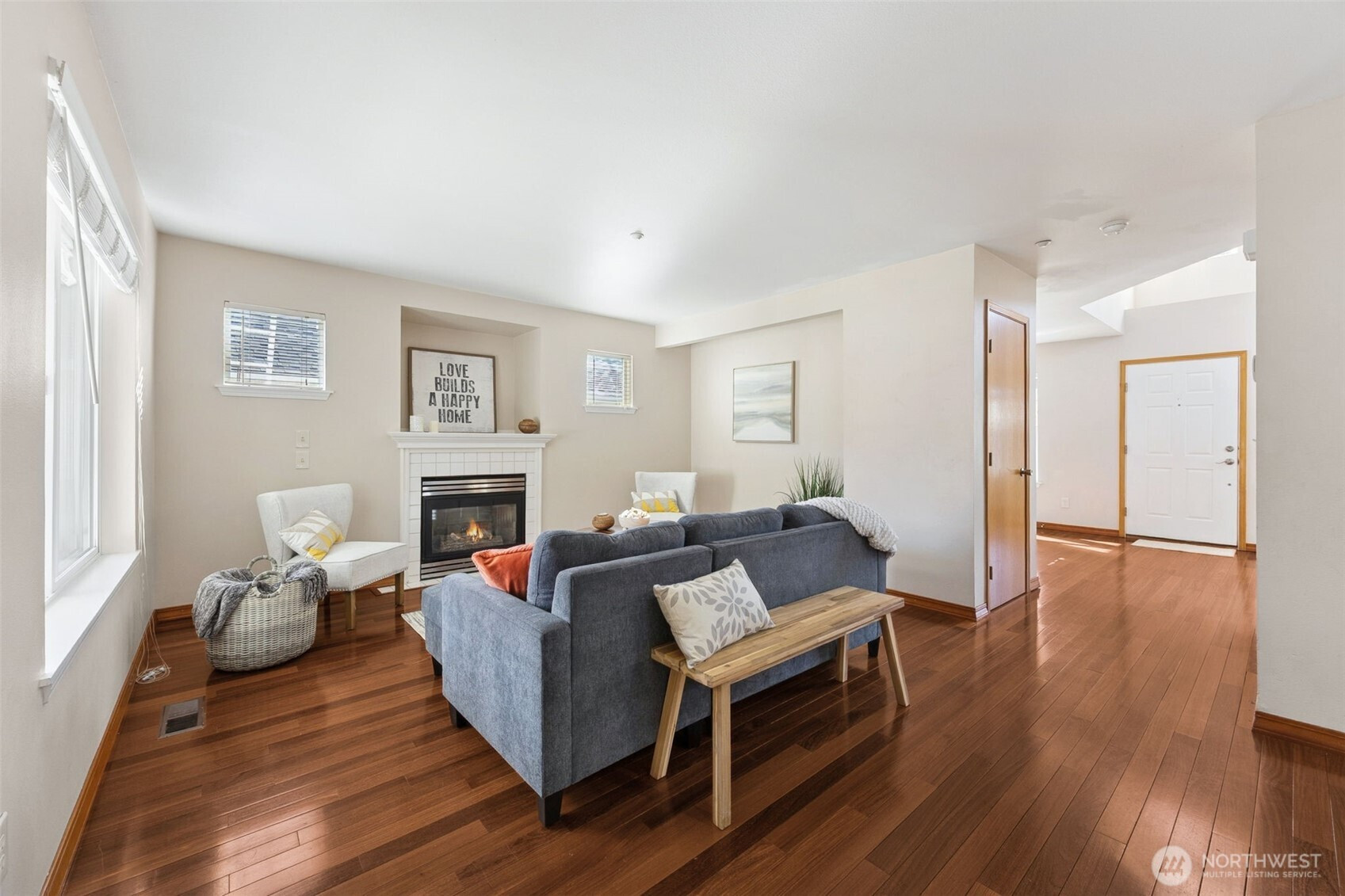 Welcome home to this charming DuPont craftsman where comfort, style, and location come together beautifully. With over 1,800 square feet, this well-designed 3-bedroom, 2.5-bath home offers the space you want and the features you’ll love. Recent updates bring peace of mind, including a brand new roof installed, and trim paint updated, a new furnace in 2024 and an updated water heater. Stay comfortable year-round with central A/C for those warm summer days. Hardwood floors and vaulted ceilings create an open, airy feel, while the cozy gas fireplace anchors the living space—perfect for relaxing evenings at home. The kitchen shines with stainless steel appliances and features a dining nook, plus formal dining space. Outside, enjoy a fully fenced yard ideal for pets, play, or weekend gatherings, plus a 2-car attached garage for convenience and storage. Best of all, you’re just steps from a pocket park and a short stroll to downtown DuPont, multiple parks and playgrounds, and miles of scenic trails—an unbeatable lifestyle right outside your door. This is DuPont living at its best—welcoming, walkable, and ready to feel like home.