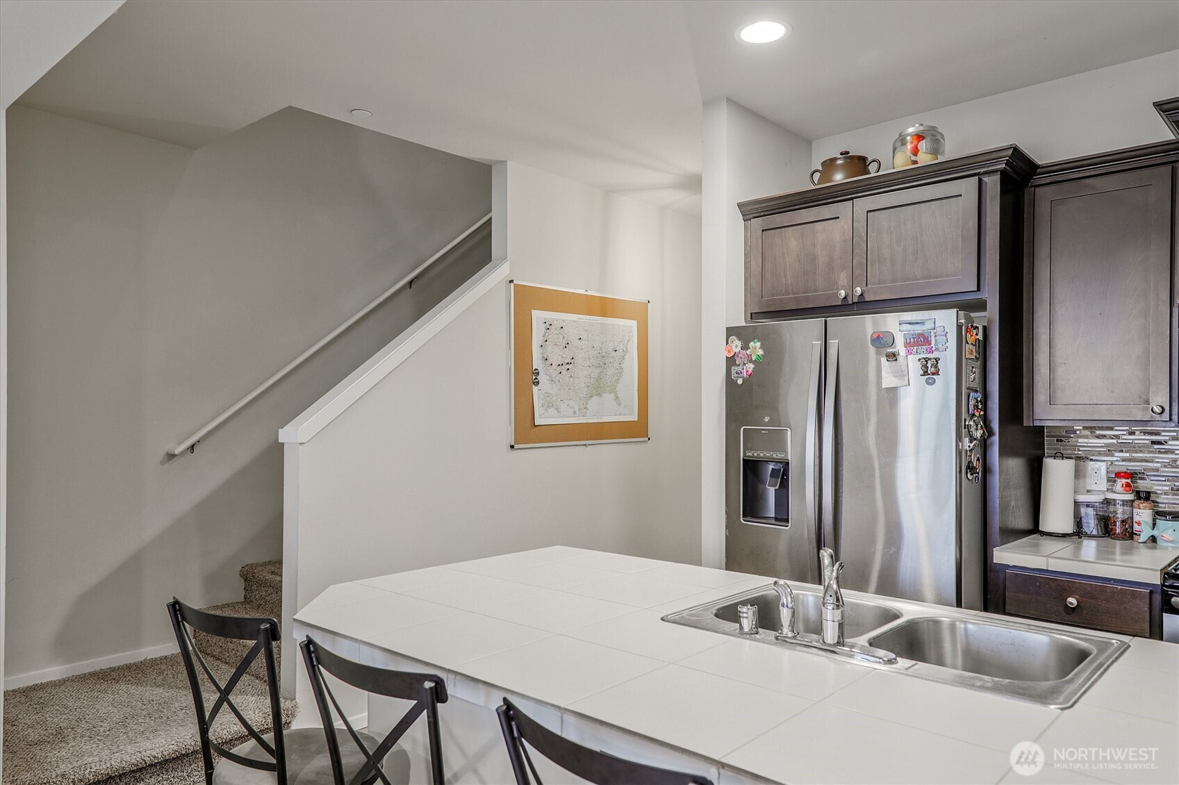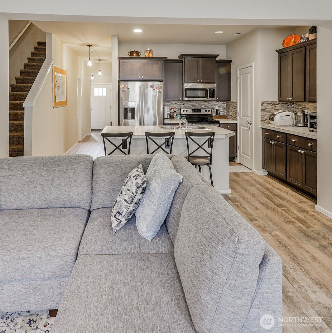 Beautifully maintained and move-in ready! This inviting home is tucked away on a quiet cul-de-sac in the desirable Bonney Lake community. The open-concept main floor features a bright and spacious great room with a cozy gas fireplace is perfect for relaxing or entertaining. The kitchen offers ample cabinetry, a center island with bar seating, stainless steel appliances, and a convenient walk-in pantry. The dining area opens to the back patio, creating an ideal indoor/outdoor living space.Upstairs, you’ll find a generous primary suite complete with a walk-in closet and private bath, along with two additional bedrooms, a full bathroom, and a convenient upstairs laundry area. Enjoy the fully fenced backyard with patio space that's perfect for relaxing or entertaining. Additional highlights include an attached garage and extra parking. Conveniently located near parks, schools, shopping, dining, and easy access to Hwy 410. Bonney Lake living at its best! HOA maintains roof, gutters and exterior paint. Buyer to verify.