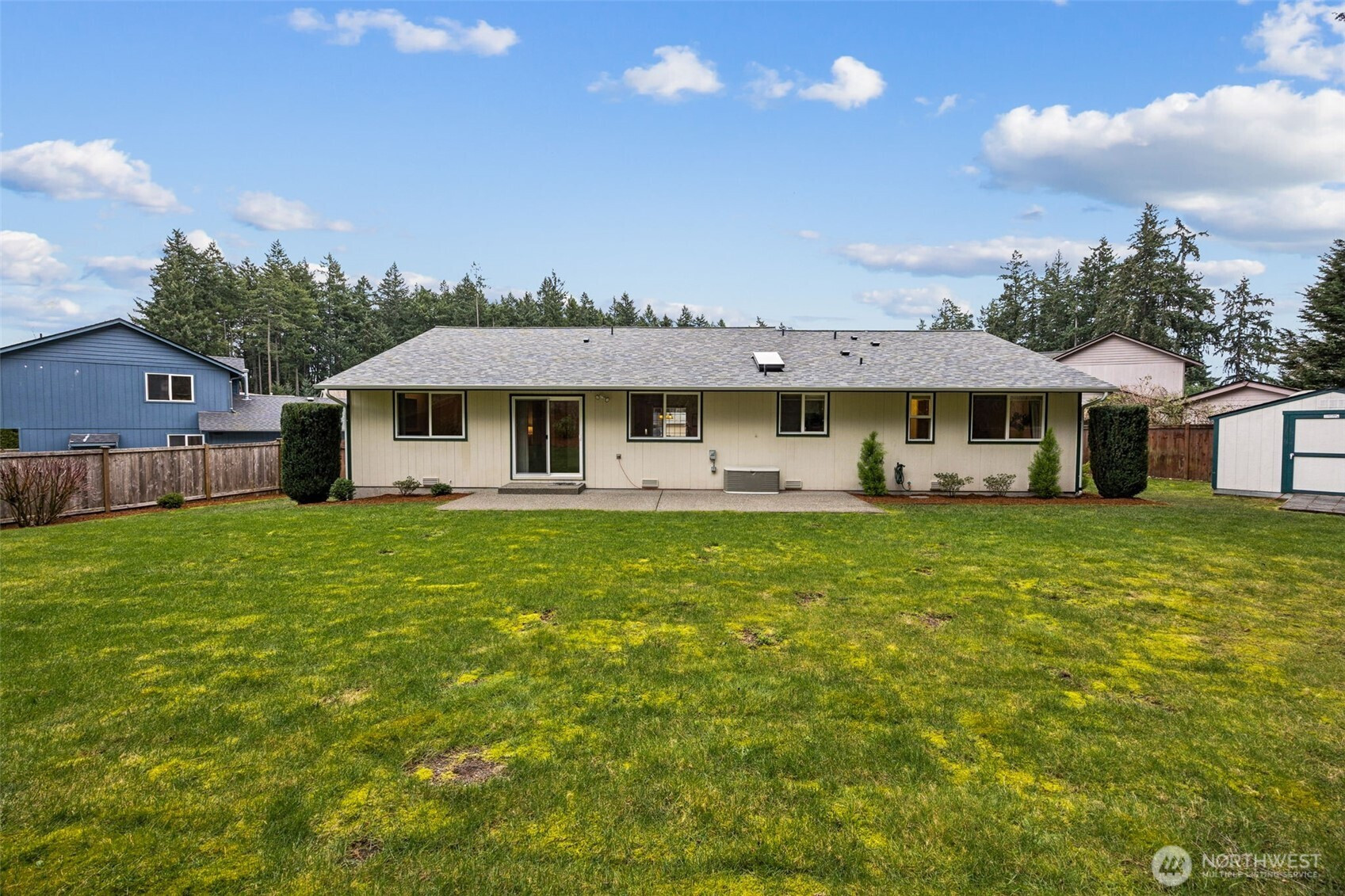 Impeccable, move-in ready one-story home with a brand-new roof and gutters! Tucked on a lightly traveled cul-de-sac, you’re close to major shopping, medical services, outdoor recreation, and local community events. Designed for easy living now and later, the primary suite offers a walk-in shower (great for aging in place) plus a generous walk-in closet. The spacious kitchen has abundant counter space and cabinetry, along with a walk-in pantry. Vaulted ceilings enhance the open, airy feel throughout. Central air makes the summer heat bearable. All appliances stay! The thoughtful layout includes both a living room and a separate family room, ideal for communal living: together, but not on top of each other. Step outside to a large, fully fenced .29-acre yard, beautifully landscaped and supported by a 9-zone sprinkler system and 12’x12’ equipment shed, with a nice patio that's already wired for a hot tub. Enjoy newer flooring and countertops, and start your mornings on the covered front porch, made for coffee and conversation. The oversized garage offers extra space for a workbench, storage, and hobbies. This one is truly a turn-key, forever home! See it today!