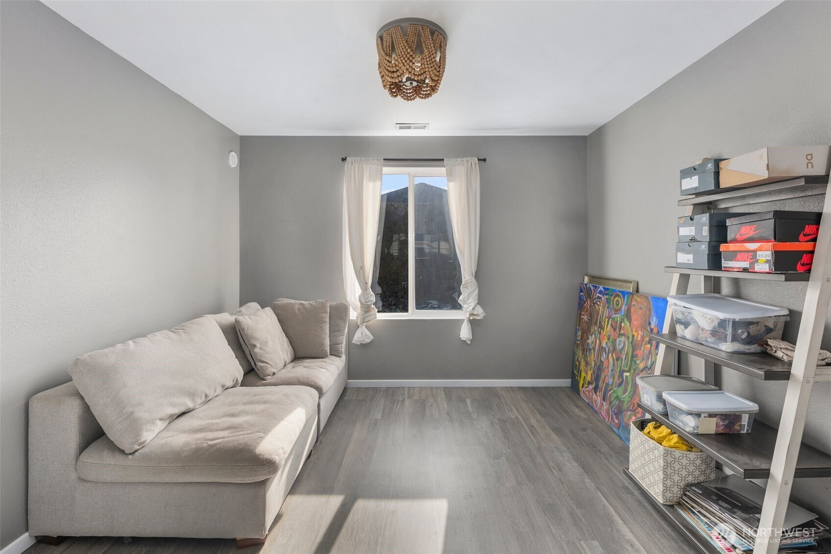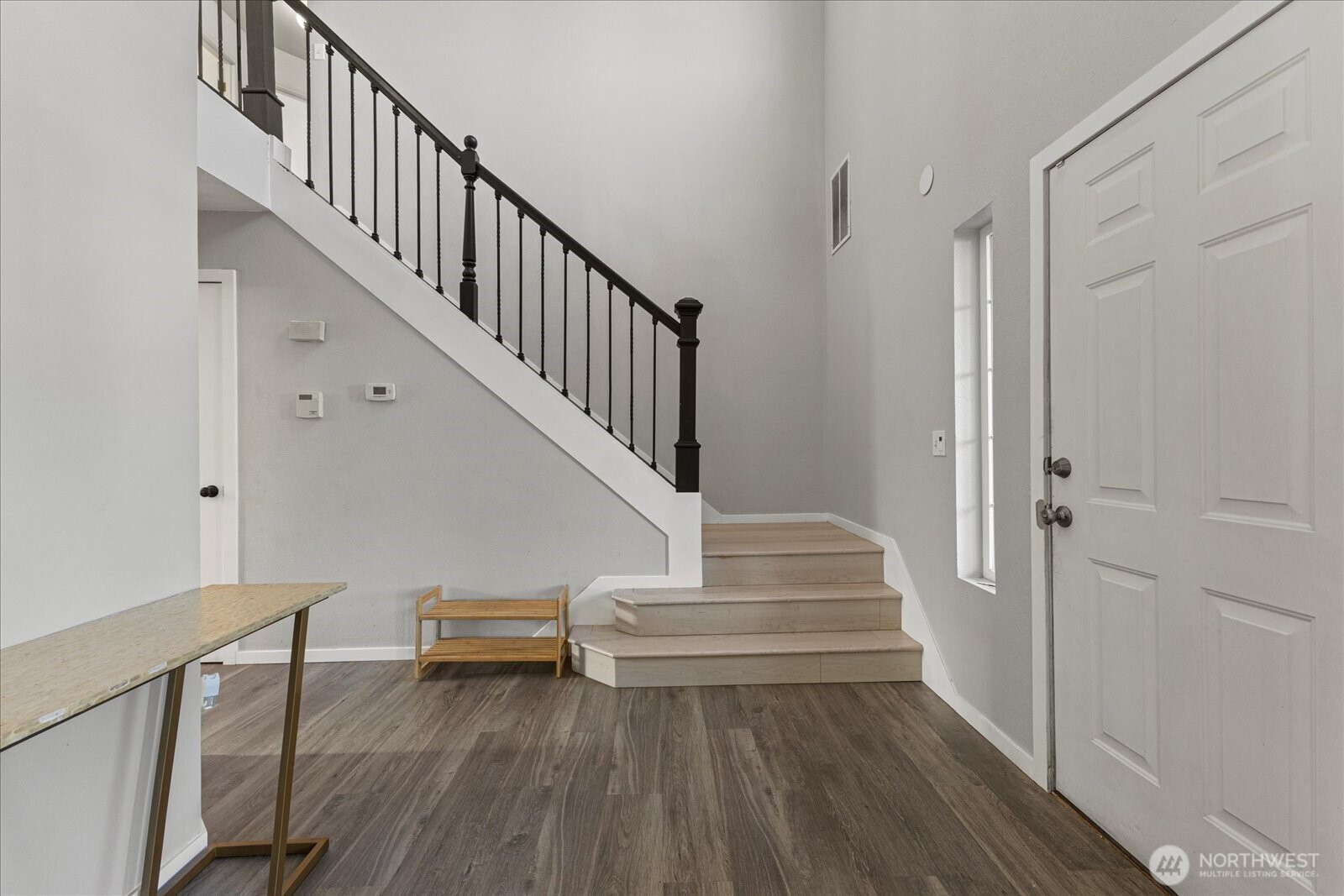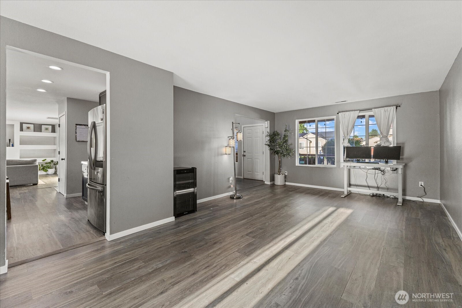 Welcome to this stunning 4-bed 2.5-bath home nestled within a desirable gated community in Spanaway that offers comfort & style. The main floor features a spacious gathering room & separate living room adorned with a cozy gas fireplace. The open-concept kitchen boasts a large island, tile backsplash & pristine cabinetry. The bonus room on the main floor can serve as a 4th bedroom or home office. Updated LVP installed upstairs. 3 generously sized bedrooms await, including a primary suite with vaulted ceilings & a walk-in closet. The fully fenced backyard provides ample space for outdoor activities and relaxation. Conveniently located minutes from JBLM, shopping centers & restaurants this home combines modern amenities with a prime location.