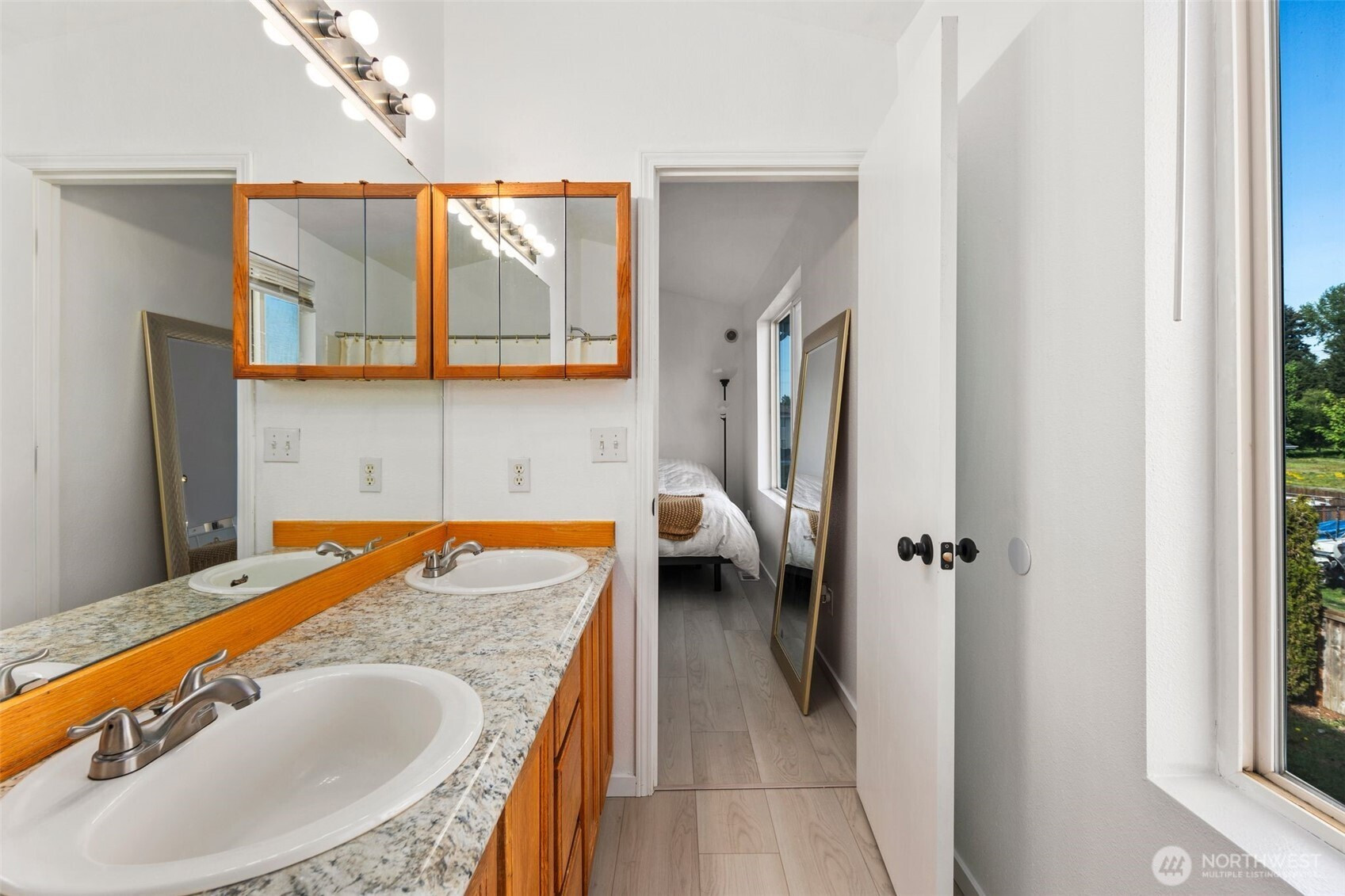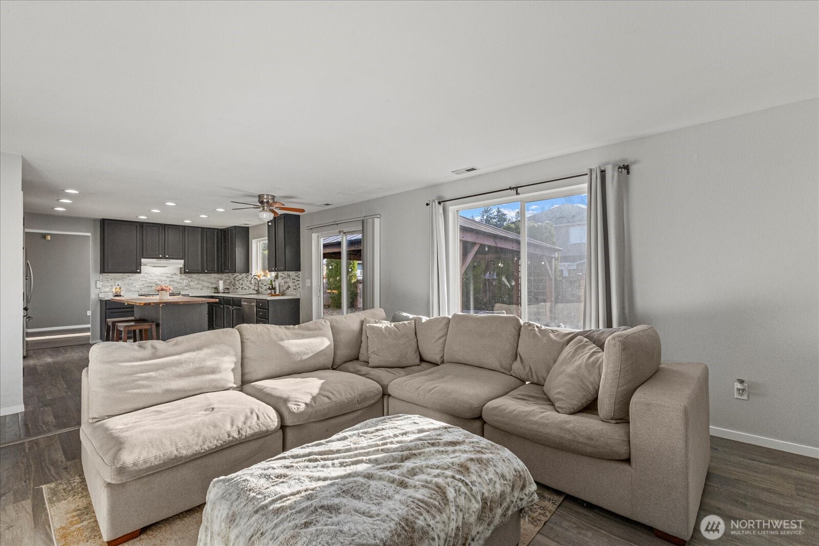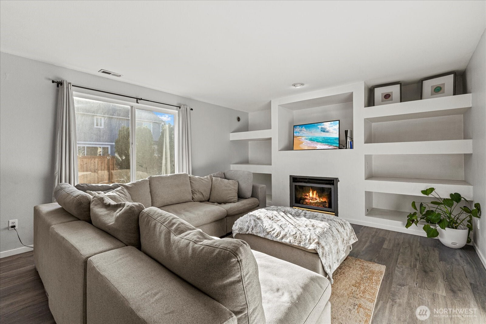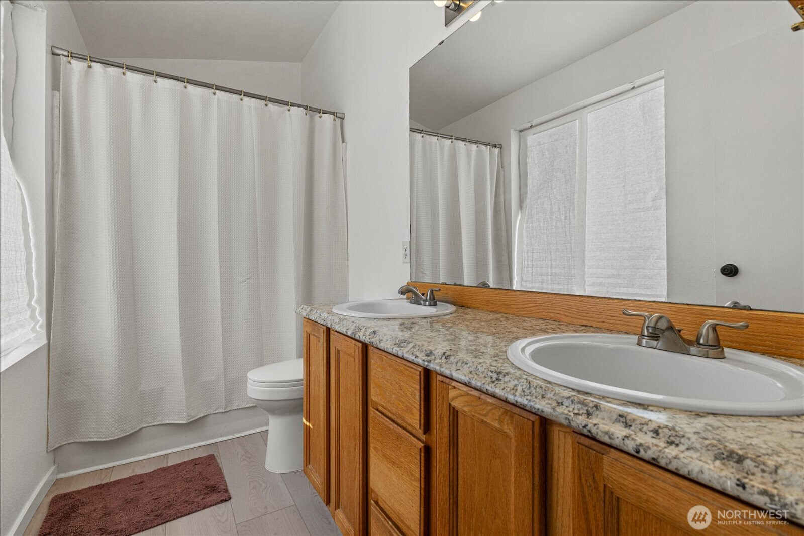 Welcome to this stunning 4-bed 2.5-bath home nestled within a desirable gated community in Spanaway that offers comfort & style. The main floor features a spacious gathering room & separate living room adorned with a cozy gas fireplace. The open-concept kitchen boasts a large island, tile backsplash & pristine cabinetry. The bonus room on the main floor can serve as a 4th bedroom or home office. Updated LVP installed upstairs. 3 generously sized bedrooms await, including a primary suite with vaulted ceilings & a walk-in closet. The fully fenced backyard provides ample space for outdoor activities and relaxation. Conveniently located minutes from JBLM, shopping centers & restaurants this home combines modern amenities with a prime location.