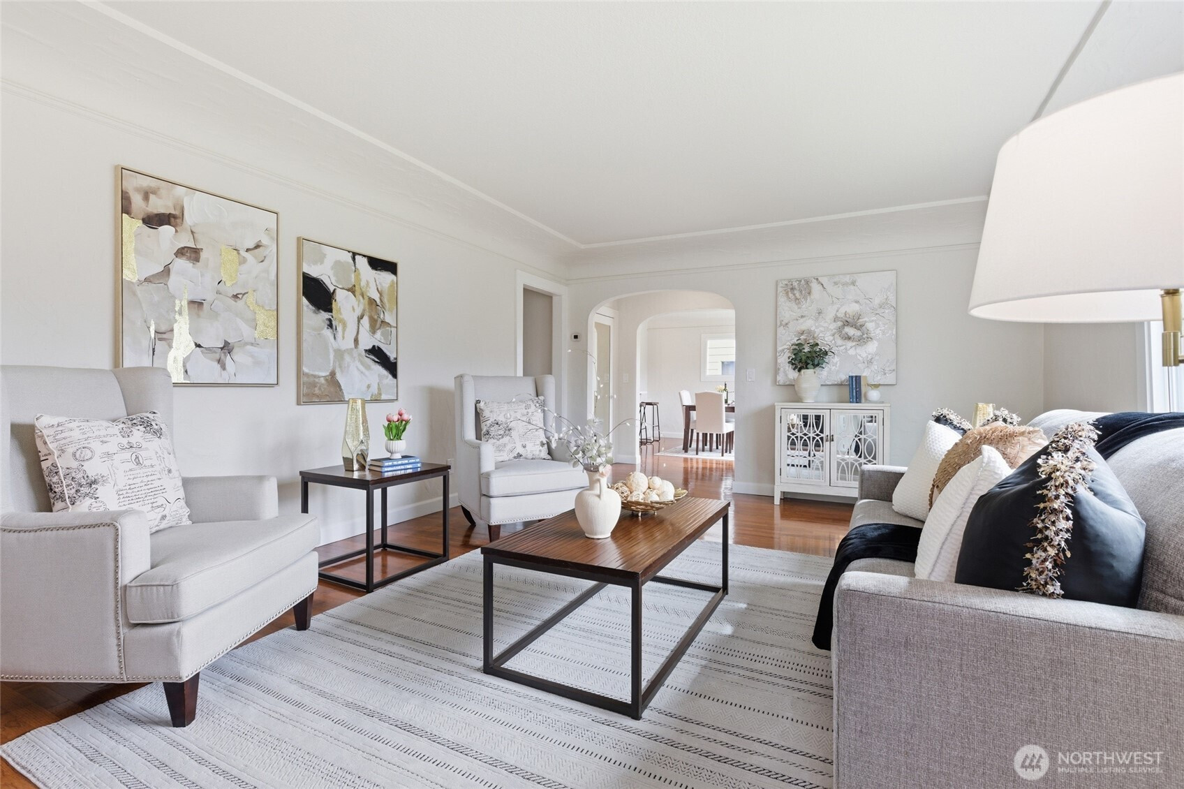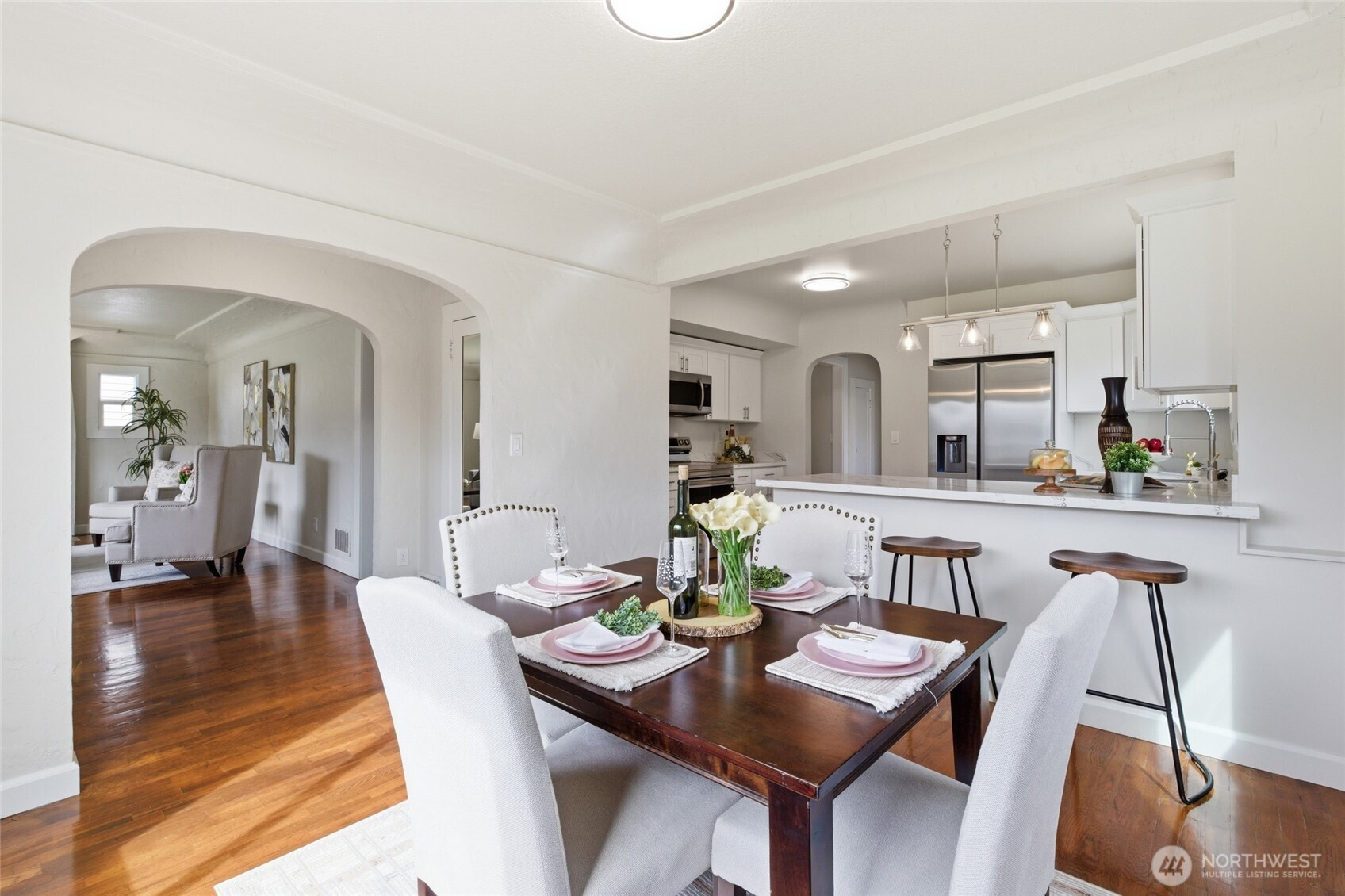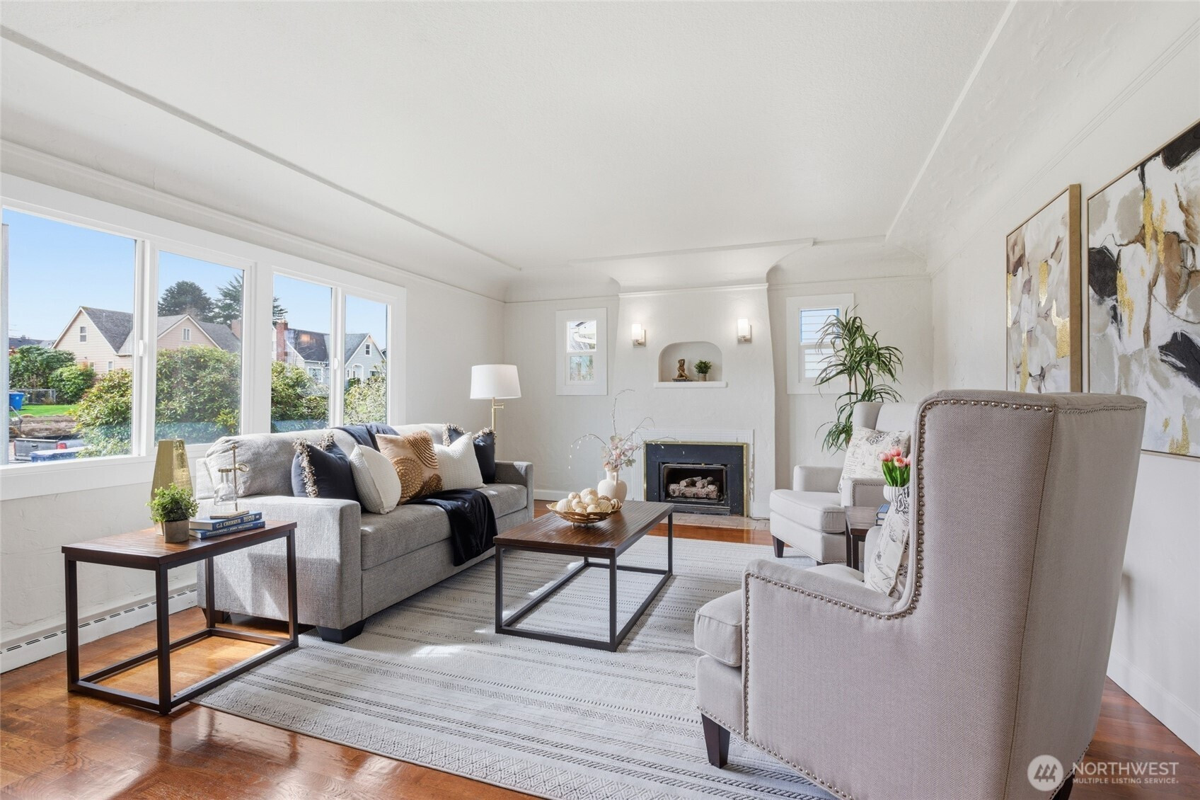 Experience the unique charm of this remodeled 3-bed, 1.5-bath Art Deco-style residence in SE Tacoma. This 1,424 sq ft single-story home features signature Southwest architecture, including a stucco exterior and soft arches throughout the interior. The home has been fully updated with a new kitchen featuring new cabinetry and countertops, alongside refreshed bathrooms with new vanities, showers, toilets, and sinks. Highlights include original flooring, fresh interior and exterior paint, built-in storage cabinets, and landscaped grounds. The layout provides an open feel with large windows and includes an unfinished basement for additional potential. An attached one-car garage offers extra storage space and presents an opportunity for future improvements. This property combines distinct architectural character with modern interior updates in a functional, well-maintained package.