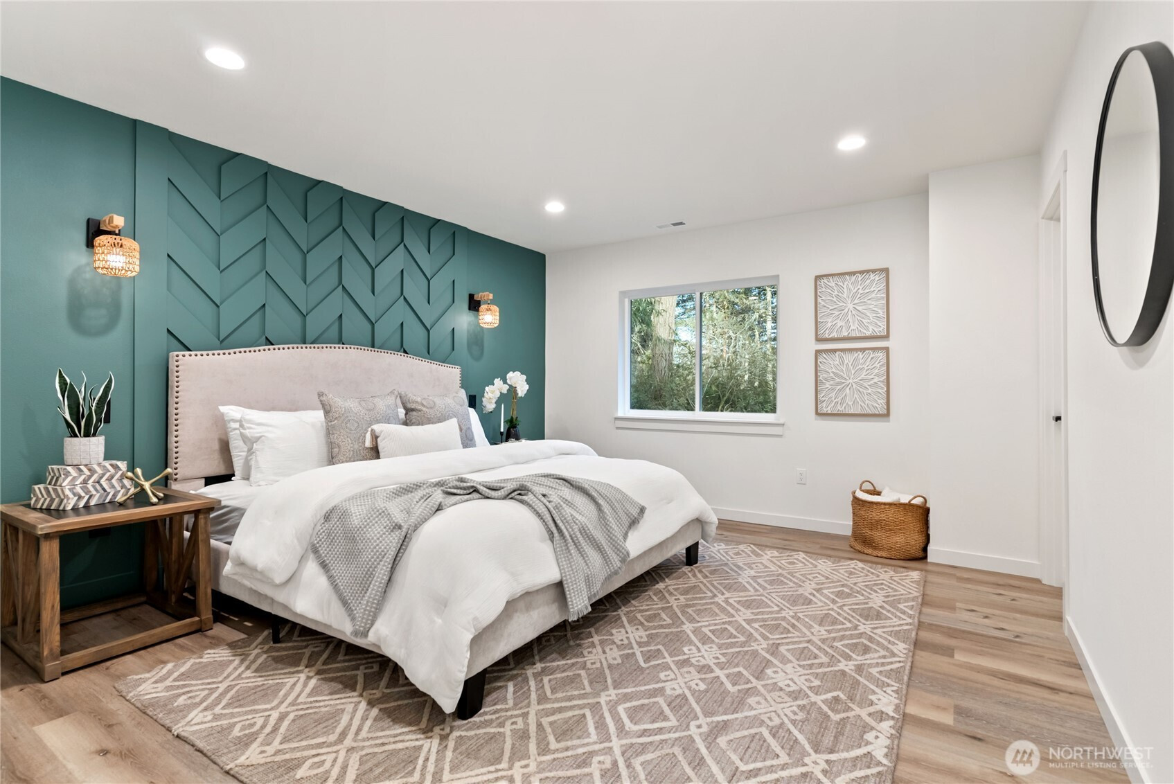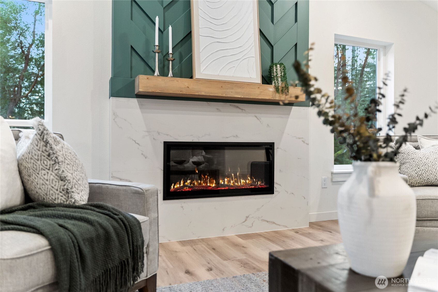 New Construction in Lakebay! Discover the perfect blend of privacy and coastal charm on this level 2.5-acre lot in the serene Joemma Beach Farms community. Set on paved streets with a private neighborhood trail leading directly to Joemma Beach State Park, this beautifully crafted 3-bedroom, 1.75-bath rambler with a bonus room/office offers peaceful living surrounded by nature. Step inside to an open-concept layout with vaulted ceilings, accent paneled walls, and modern LED lighting throughout. The spacious great room showcases a stunning stone surround fireplace with designer accent paneling, creating a warm yet sophisticated focal point. The kitchen is thoughtfully designed with quartz countertops, stylish backsplash, and ample cabinetry, perfect for everyday living and entertaining. The primary bedroom is a true retreat, featuring beautifully designed wall paneling with elegant sconce lighting that adds warmth and character. The primary bath offers a spacious tiled shower for a sleek, spa-inspired feel. Generous secondary bedrooms provide comfort and flexibility, while the bonus room is ideal for a home office, flex space, or guest retreat. Stay comfortable year-round with A/C. Relax on the covered back patio overlooking your expansive 2.5-acre property. Plenty of space for RVs, boats, and extra parking. A rare opportunity to own brand-new construction in a private setting. Just minutes to Gig Harbor and Key Center amenities.