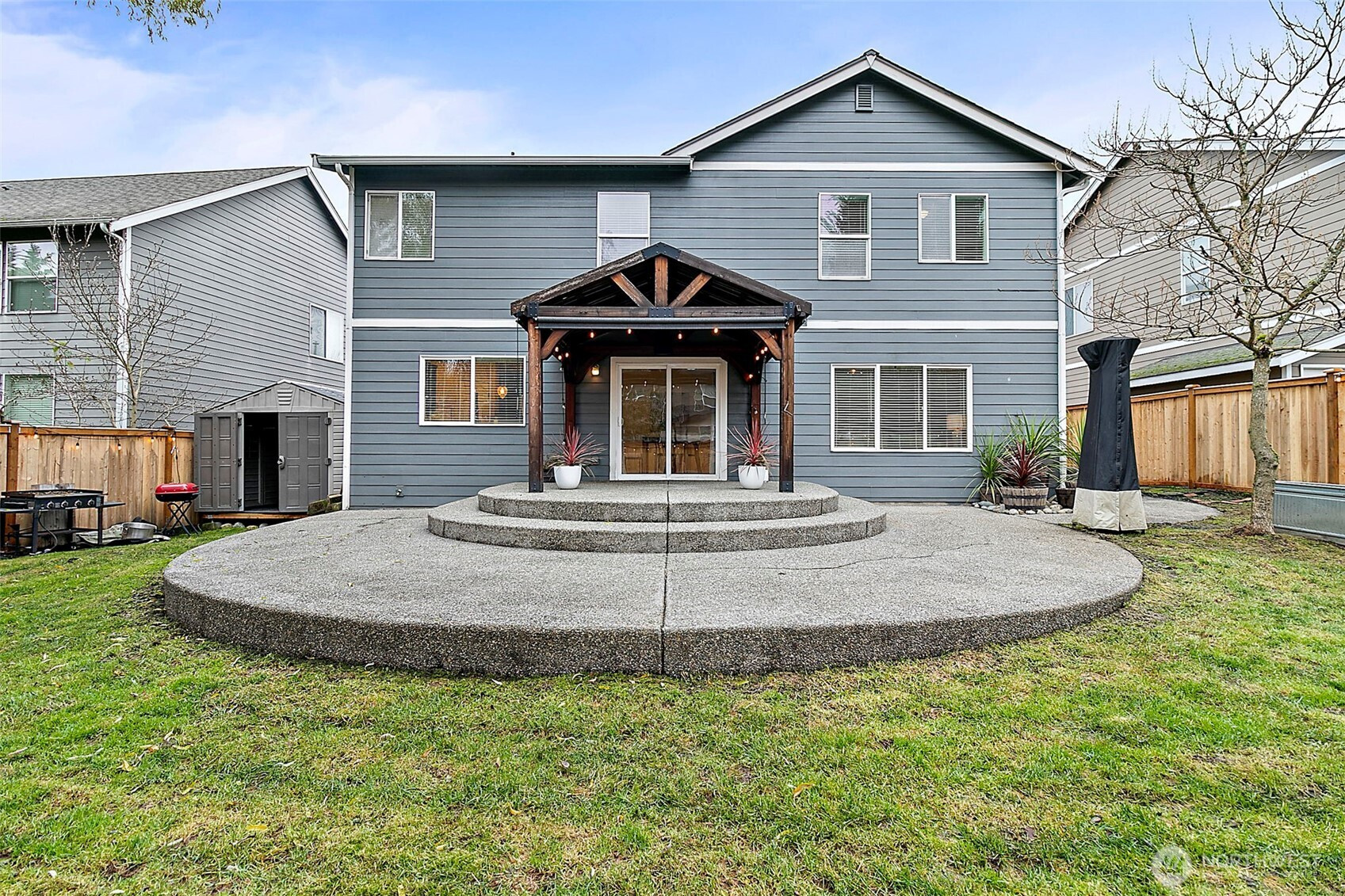Welcome to this stunning home in the highly sought-after Mt. Creek neighborhood! Steps from the community park & close Bonney Lake amenities 1 hour to Crystal Mt. Be wowed the moment you enter w/ soaring ceilings, abundant natural light & an open, spacious floorplan. Work from home in the main-floor office w/ convenient powder room nearby. The heart of the home is the open kitchen & family room—perfect for gatherings. Upstairs: 4 generous bedrooms including a luxurious primary suite w/ 5-piece bath, sitting room & cozy fireplace. Enjoy outdoor living under the backyard gazebo. This one checks all the boxes! Don't miss the oversized shed in the corner. Roof and exterior paint new in 2023. Interior paint brand new.