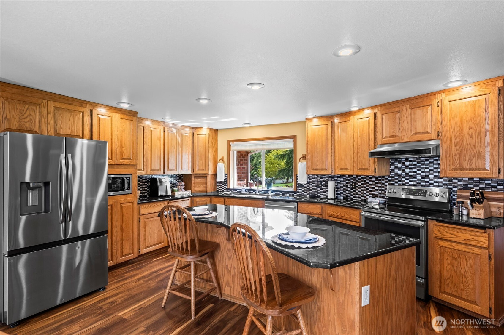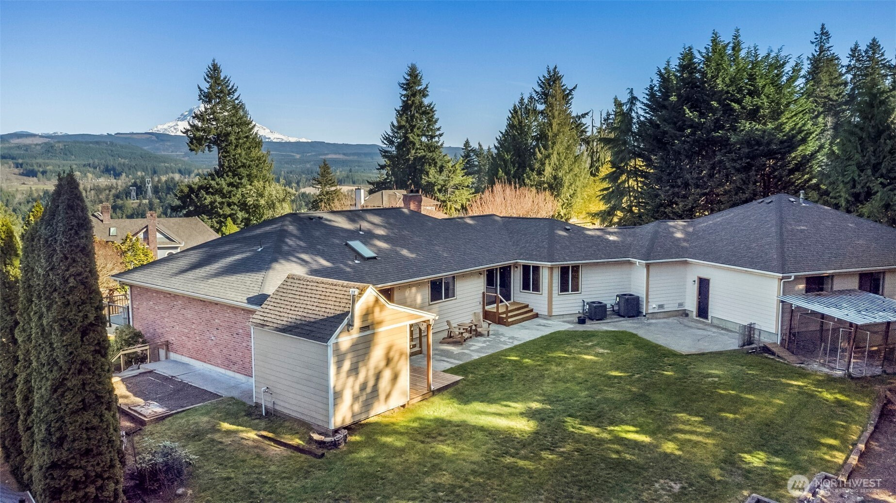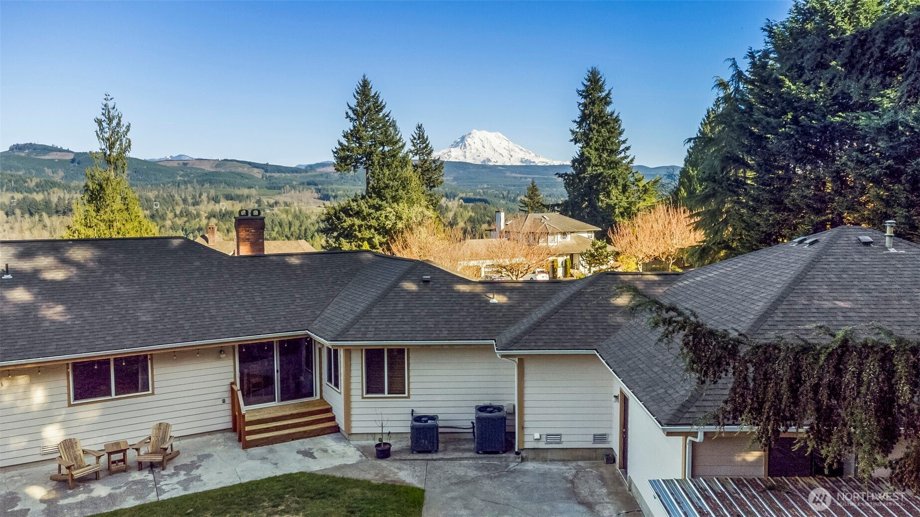 Enjoy peaceful, country style living with stunning territorial, river, and Mt. Rainier views, all just minutes from everyday conveniences. This thoughtfully designed home offers exceptional functionality, abundant storage, and is set in a great community with neighborhood walking trails and a clubhouse. The large kitchen with granite counters provides the perfect space for cooking and gathering, seamlessly connecting to the home’s inviting living and dining areas. This sprawling estate on over 1 acre is ideal for multigenerational living. The wheelchair accessible ADU/MIL suite on the lower level has two bedrooms, a full kitchen, massive laundry room, giant pantry/storage closet and two living spaces. Outdoor living truly shines with a serene backyard, frequent wildlife sightings, and beautifully landscaped grounds complete with a private walking path and gazebo in a forested setting. The grilling shed creates a standout space for year round entertaining. Additional highlights include a newer roof, new windows, air conditioning, generator, updated bathrooms, 220V charging station, and a heated 4 car garage with RV parking. An unfinished space currently used as a wine room offers endless potential, bring your vision and make it your own.