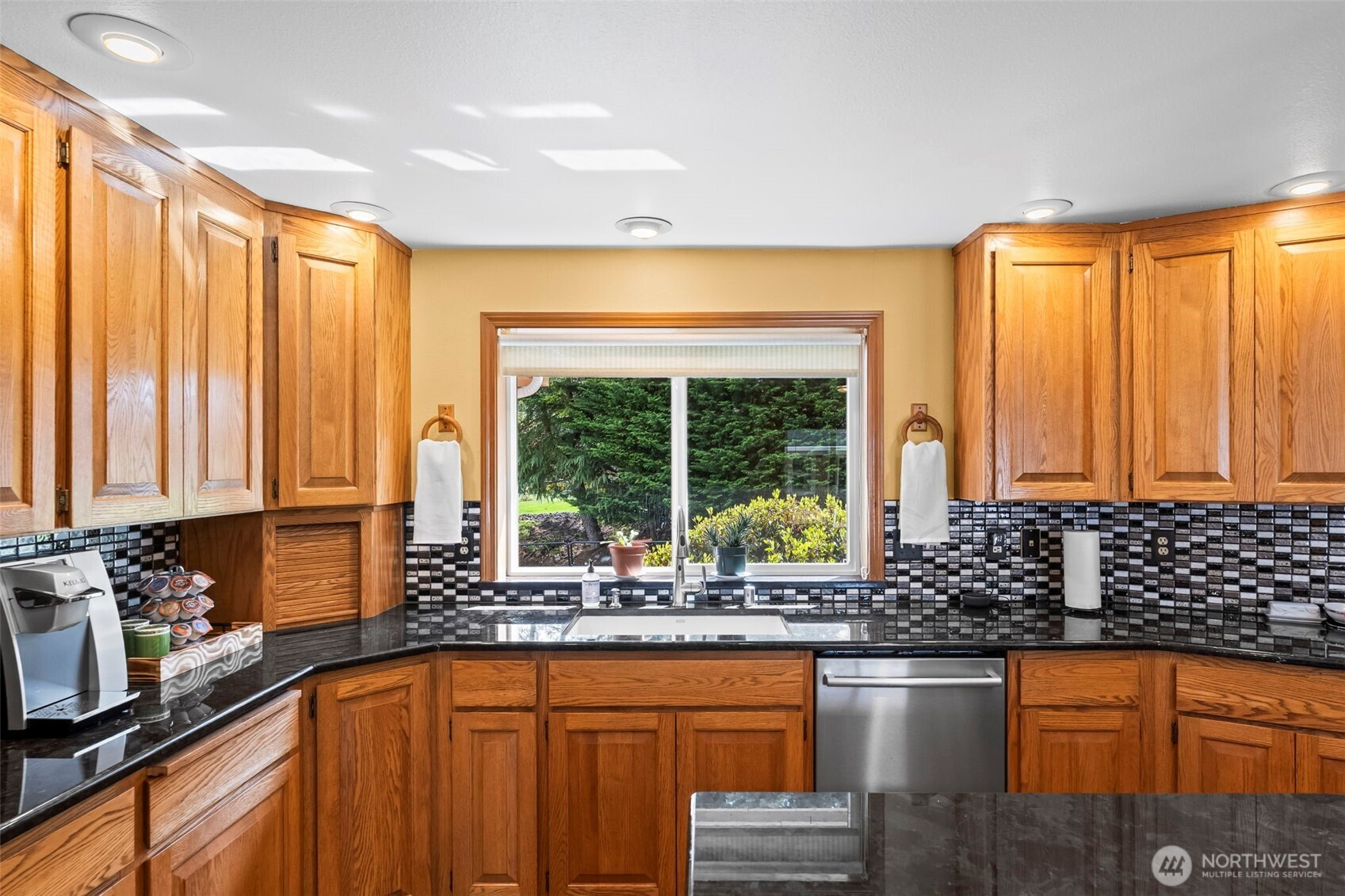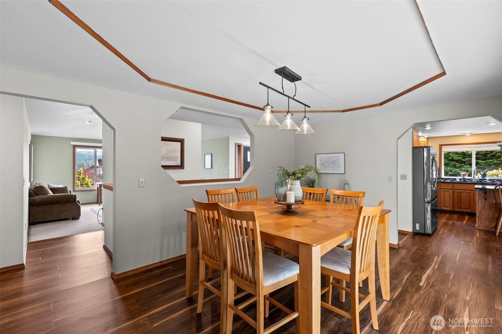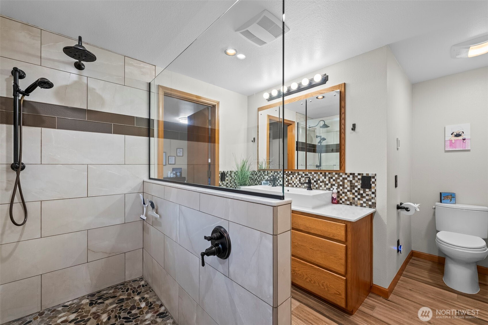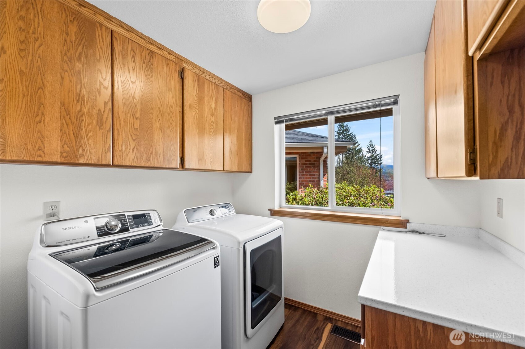 Enjoy peaceful, country style living with stunning territorial, river, and Mt. Rainier views, all just minutes from everyday conveniences. This thoughtfully designed home offers exceptional functionality, abundant storage, and is set in a great community with neighborhood walking trails and a clubhouse. The large kitchen with granite counters provides the perfect space for cooking and gathering, seamlessly connecting to the home’s inviting living and dining areas. This sprawling estate on over 1 acre is ideal for multigenerational living. The wheelchair accessible ADU/MIL suite on the lower level has two bedrooms, a full kitchen, massive laundry room, giant pantry/storage closet and two living spaces. Outdoor living truly shines with a serene backyard, frequent wildlife sightings, and beautifully landscaped grounds complete with a private walking path and gazebo in a forested setting. The grilling shed creates a standout space for year round entertaining. Additional highlights include a newer roof, new windows, air conditioning, generator, updated bathrooms, 220V charging station, and a heated 4 car garage with RV parking. An unfinished space currently used as a wine room offers endless potential, bring your vision and make it your own.