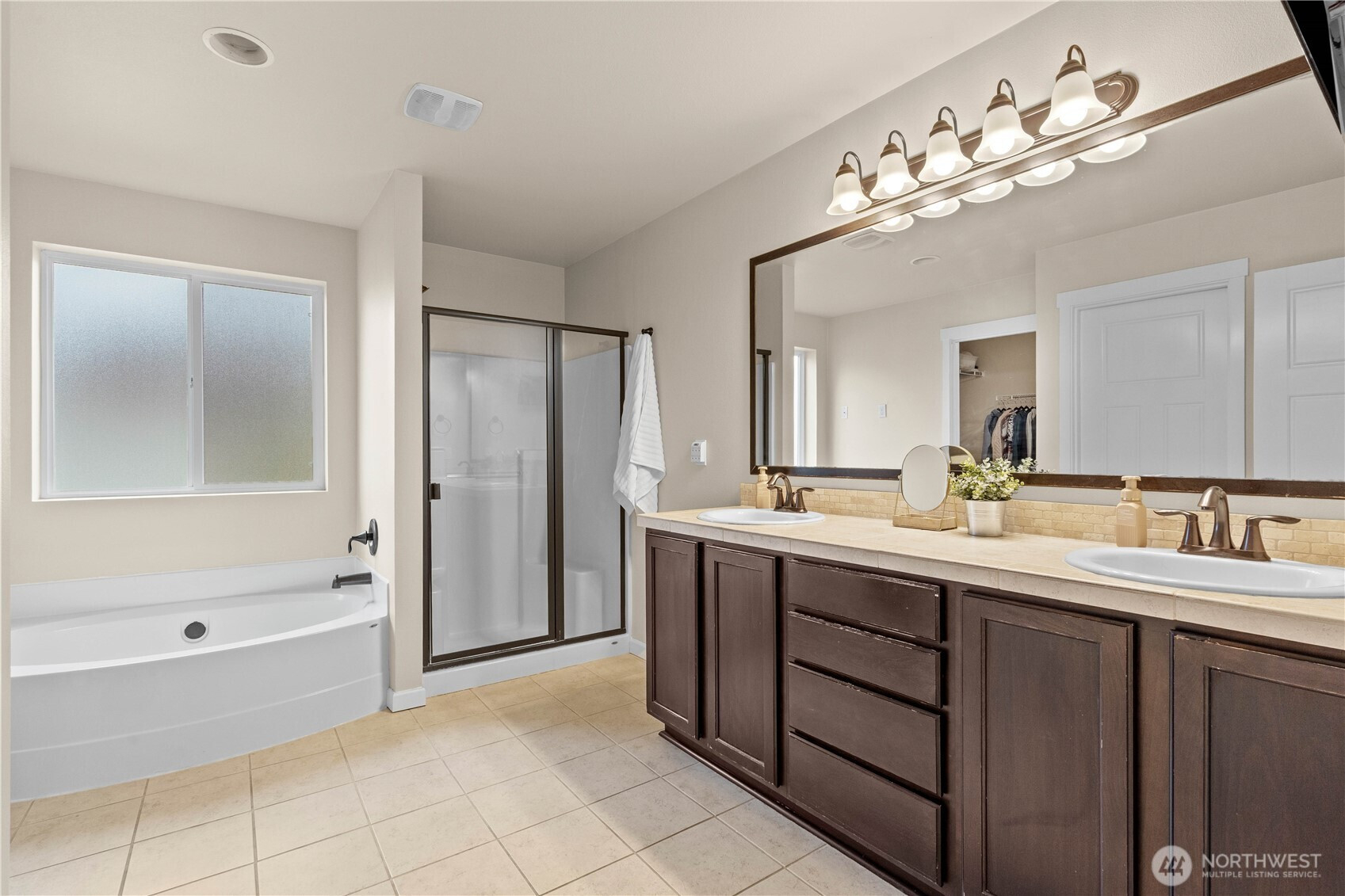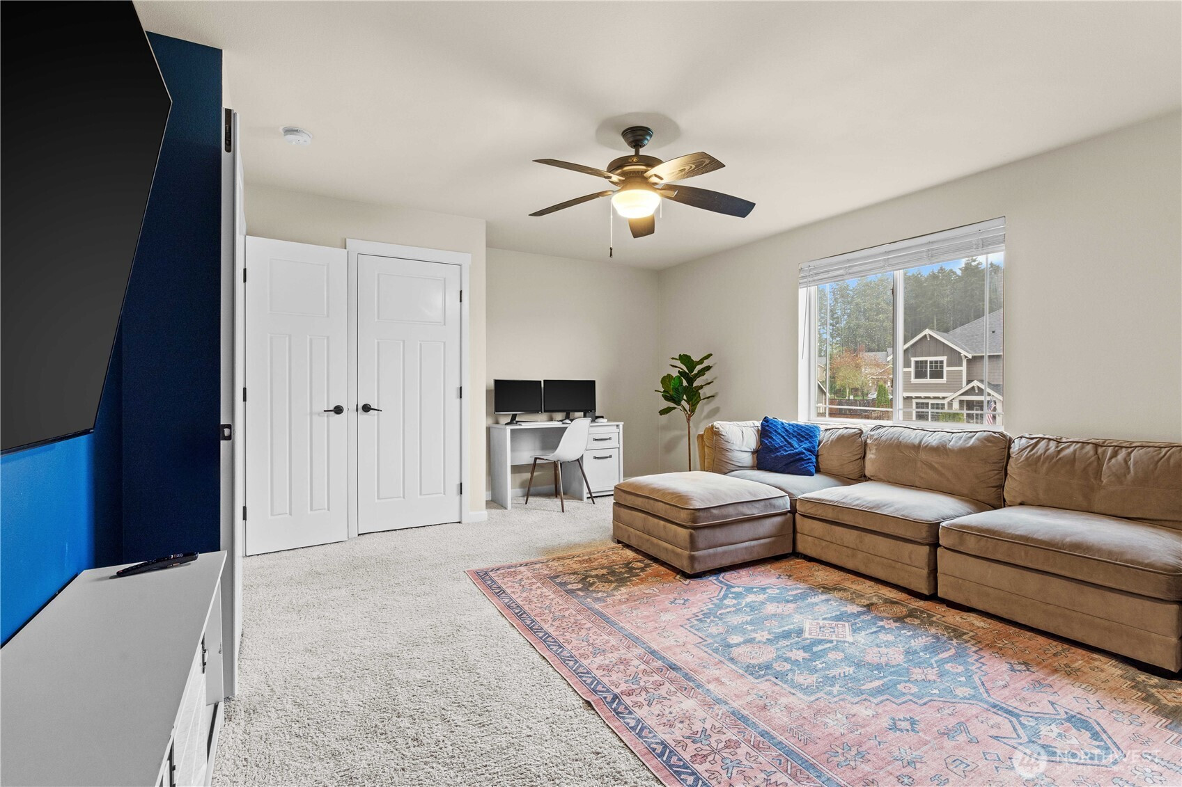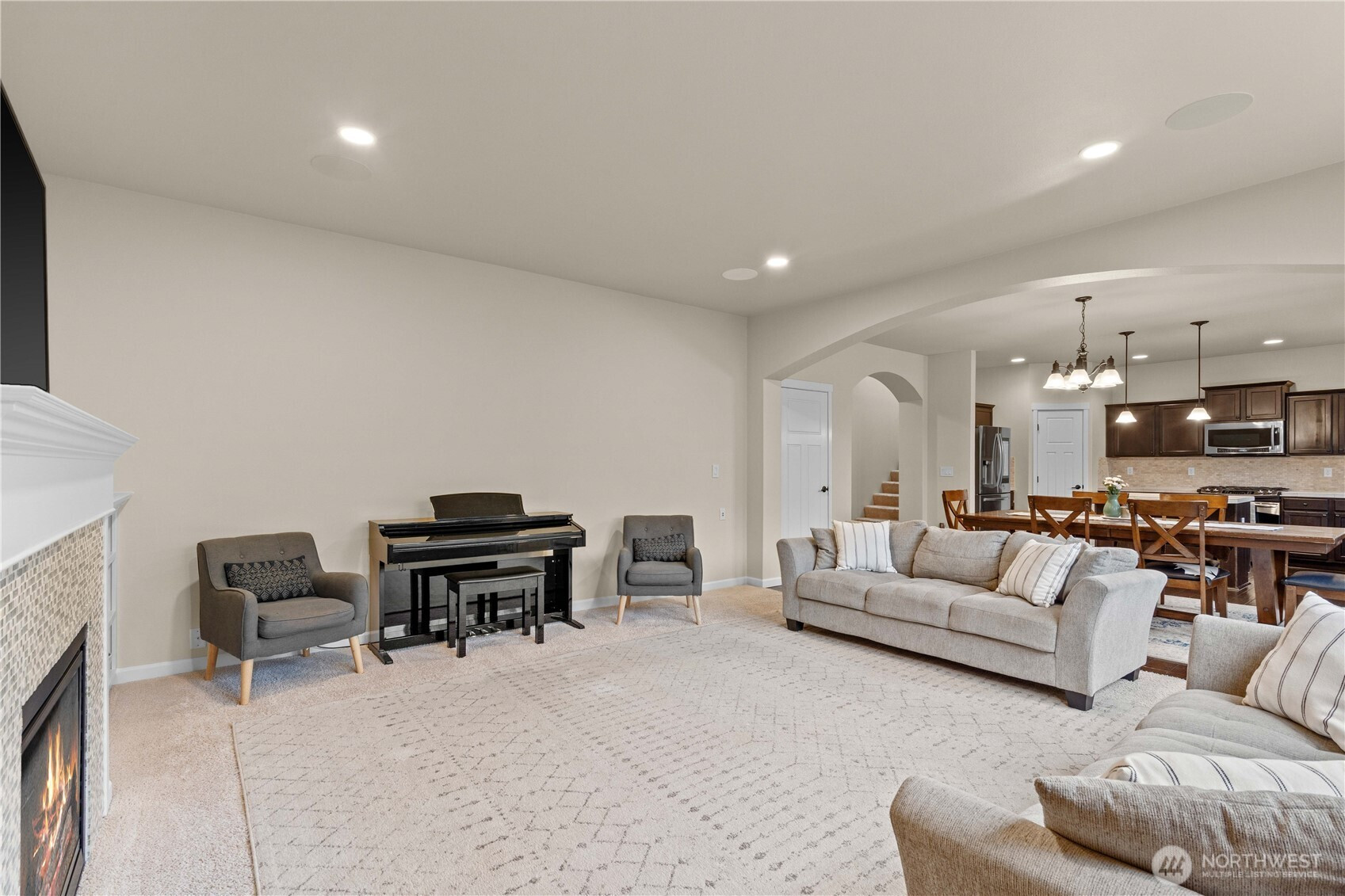 Welcome to your Grand Firs, five-bedroom, three-car garage home, located in a gated community with a neighborhood offering three parks, trails, and more. Drive up to your oversized driveway and step inside to your welcoming entrance hall. Walk into our open great room featuring a sizable living room with a gas fireplace and custom built-in storage, dining area and grand kitchen with a spacious island with bar seating, stainless steel appliances, and a convenient walk-in pantry. Right off your great room provides quick access to your fully fenced backyard with room for all and the perfect backyard BBQ space for this upcoming Summer. Before heading upstairs, check out the office on the main floor, allowing privacy and a quiet space for those who work from home. Upstairs offers a total of five bedrooms including a large primary suite with a five-piece primary bathroom including a jetted tub and a walk-in closet with built-in shelving. The utility room is also conveniently placed upstairs for quick laundry access outside the bedrooms or a space to hide your laundry pile from your visiting guests downstairs. Don't miss the green-belt behind for added privacy, wired in security system, air conditioning, upgraded cabling, sprinkler system, tool bench and storage space in the three-car garage, what the neighborhood has to offer, the gated community for added security, and more. Let's schedule your showing today.
