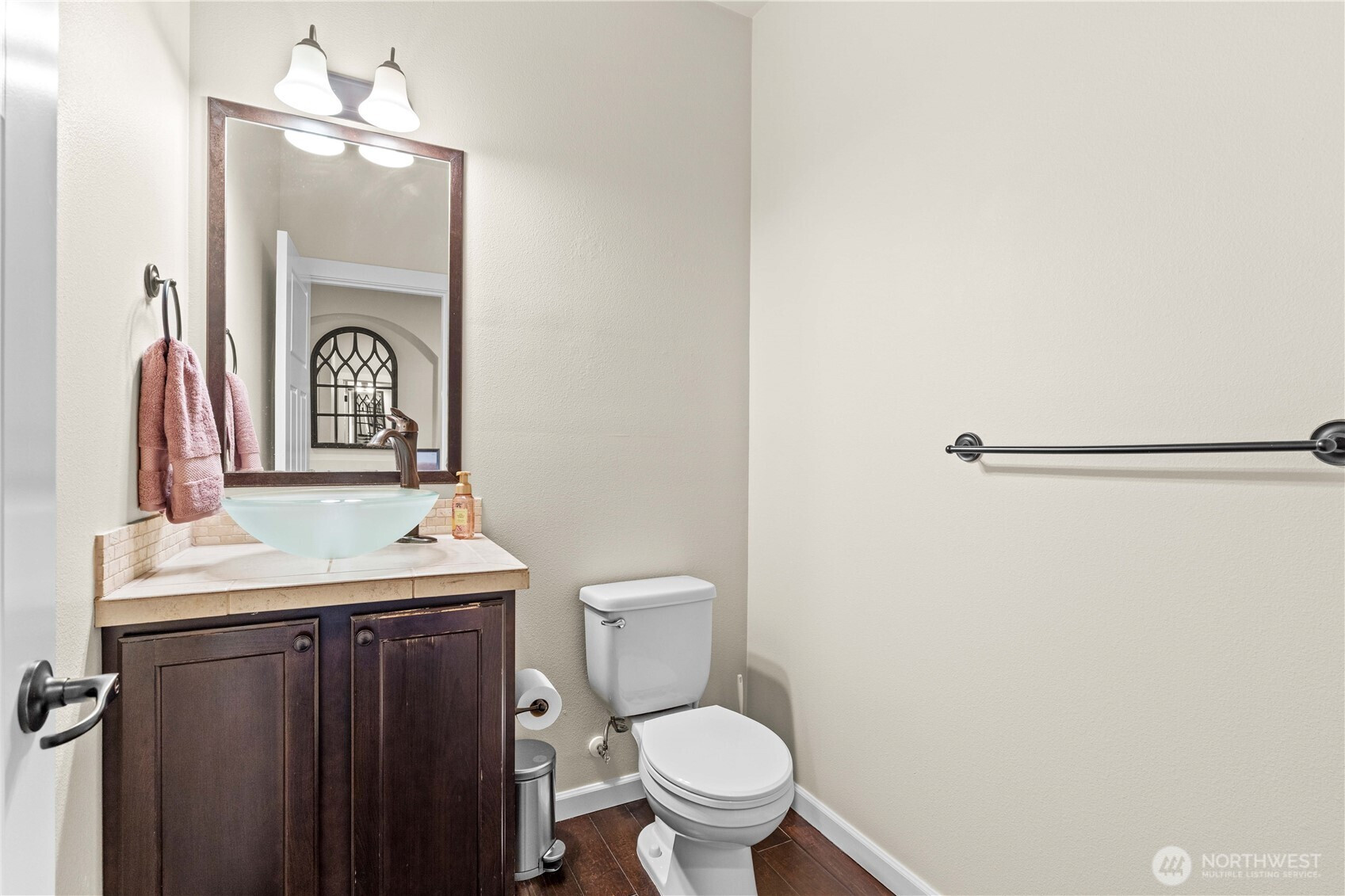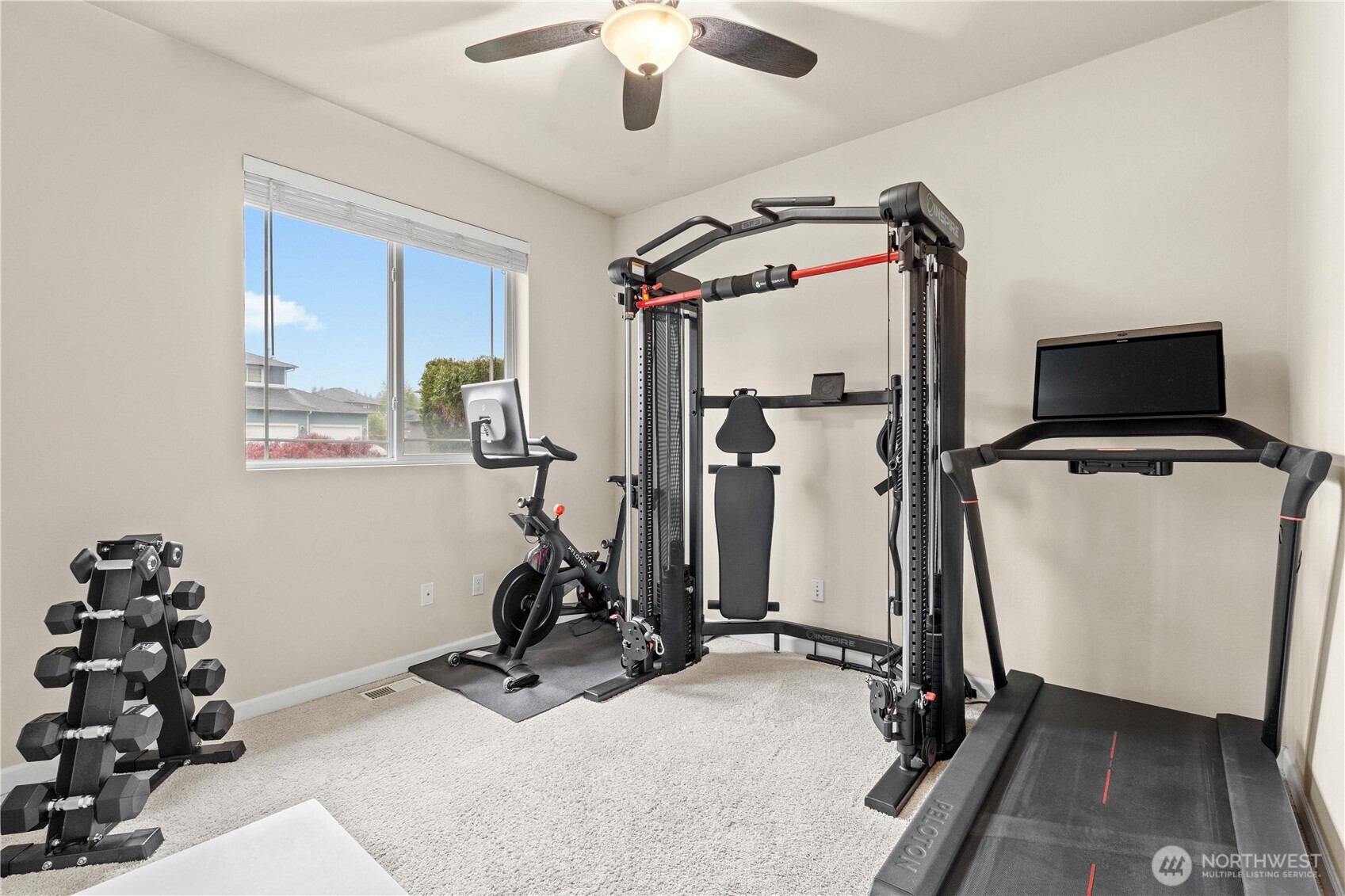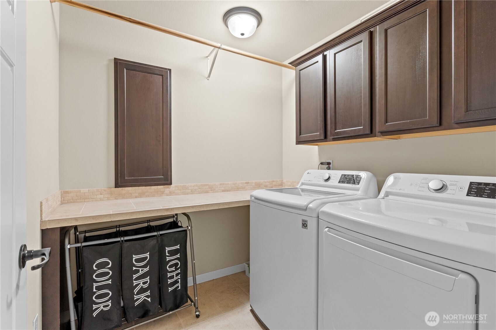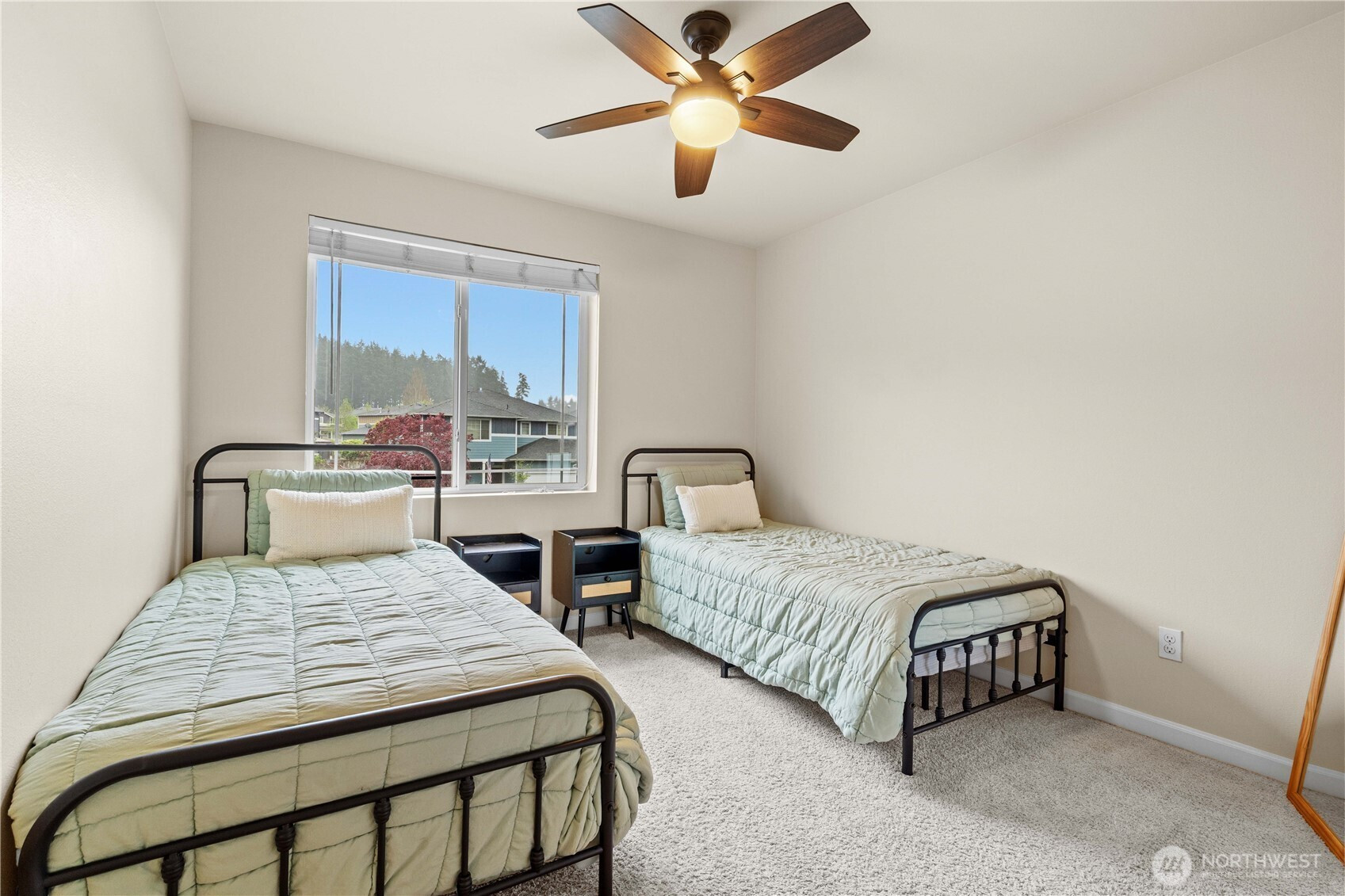 Welcome to your Grand Firs, five-bedroom, three-car garage home, located in a gated community with a neighborhood offering three parks, trails, and more. Drive up to your oversized driveway and step inside to your welcoming entrance hall. Walk into our open great room featuring a sizable living room with a gas fireplace and custom built-in storage, dining area and grand kitchen with a spacious island with bar seating, stainless steel appliances, and a convenient walk-in pantry. Right off your great room provides quick access to your fully fenced backyard with room for all and the perfect backyard BBQ space for this upcoming Summer. Before heading upstairs, check out the office on the main floor, allowing privacy and a quiet space for those who work from home. Upstairs offers a total of five bedrooms including a large primary suite with a five-piece primary bathroom including a jetted tub and a walk-in closet with built-in shelving. The utility room is also conveniently placed upstairs for quick laundry access outside the bedrooms or a space to hide your laundry pile from your visiting guests downstairs. Don't miss the green-belt behind for added privacy, wired in security system, air conditioning, upgraded cabling, sprinkler system, tool bench and storage space in the three-car garage, what the neighborhood has to offer, the gated community for added security, and more. Let's schedule your showing today.