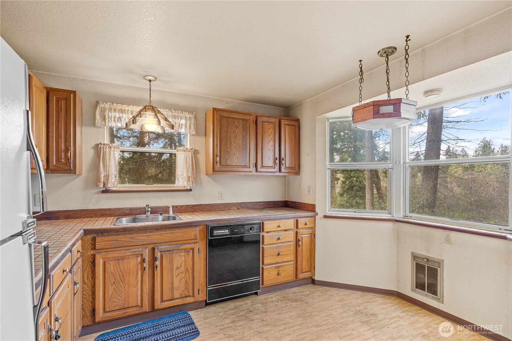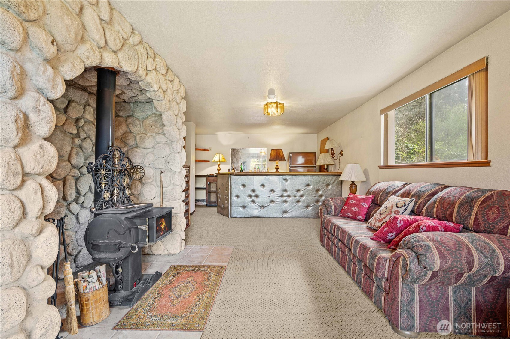 Tucked away on over an acre of private, wooded grounds, yet close to Mt. Hwy, shopping, amenities, golf, and JBLM, this property offers space, character, and incredible potential. With 1,811 square feet, the home features a functional layout with a daylight basement and an upstairs loft, plus a main-level primary bedroom for convenient living. Inside, you’ll find warm wood accents throughout, a spacious kitchen, and an open living area filled with natural light. The lower level is a standout, featuring an impressive stone fireplace positioned next to the wet bar, creating the perfect setting for entertaining or a cozy retreat. The expansive basement space offers excellent flexibility for gatherings or future conversion. This home is ready for its next chapter and will likely be updated or reimagined, making it a great opportunity for an investor or first-time homebuyer looking to build equity. The durable tile roof adds long-term value, and the home is serviced by a private well, while the surrounding acreage offers privacy and room to expand. ***Estate property being sold as is. Rare opportunity with location, land, and upside. Come see it today.