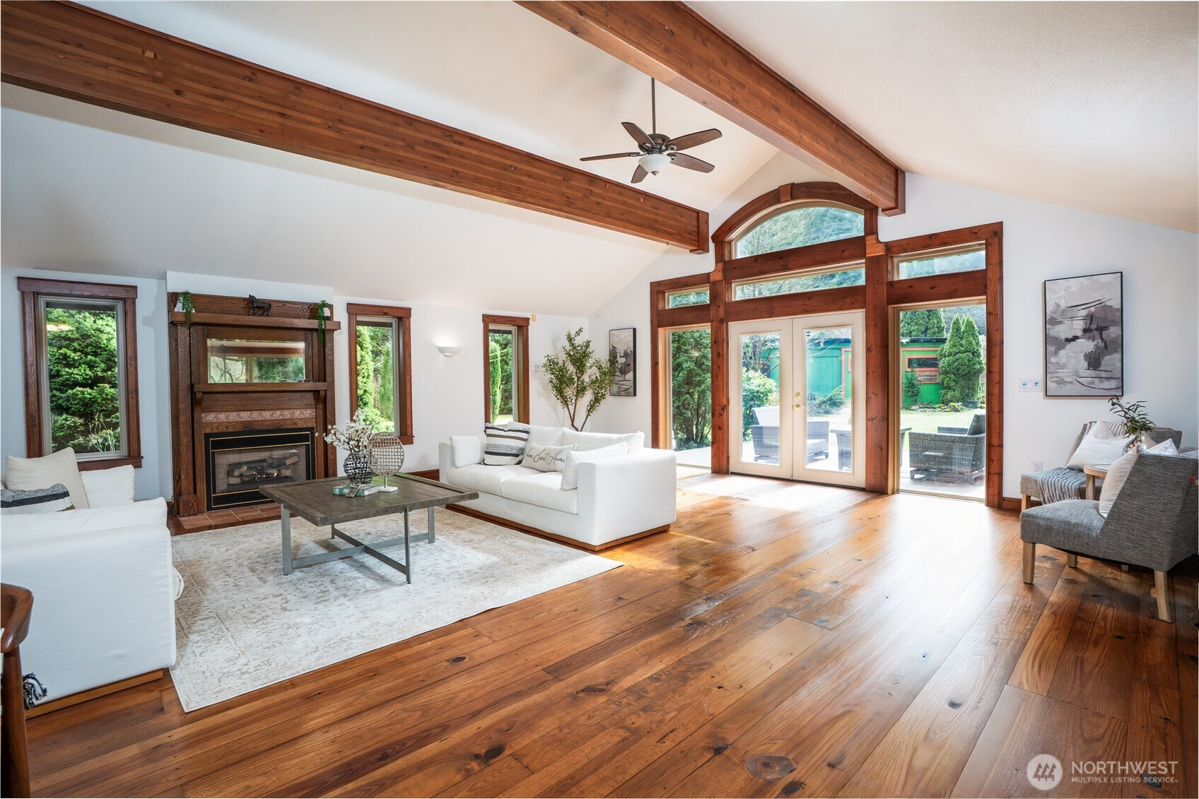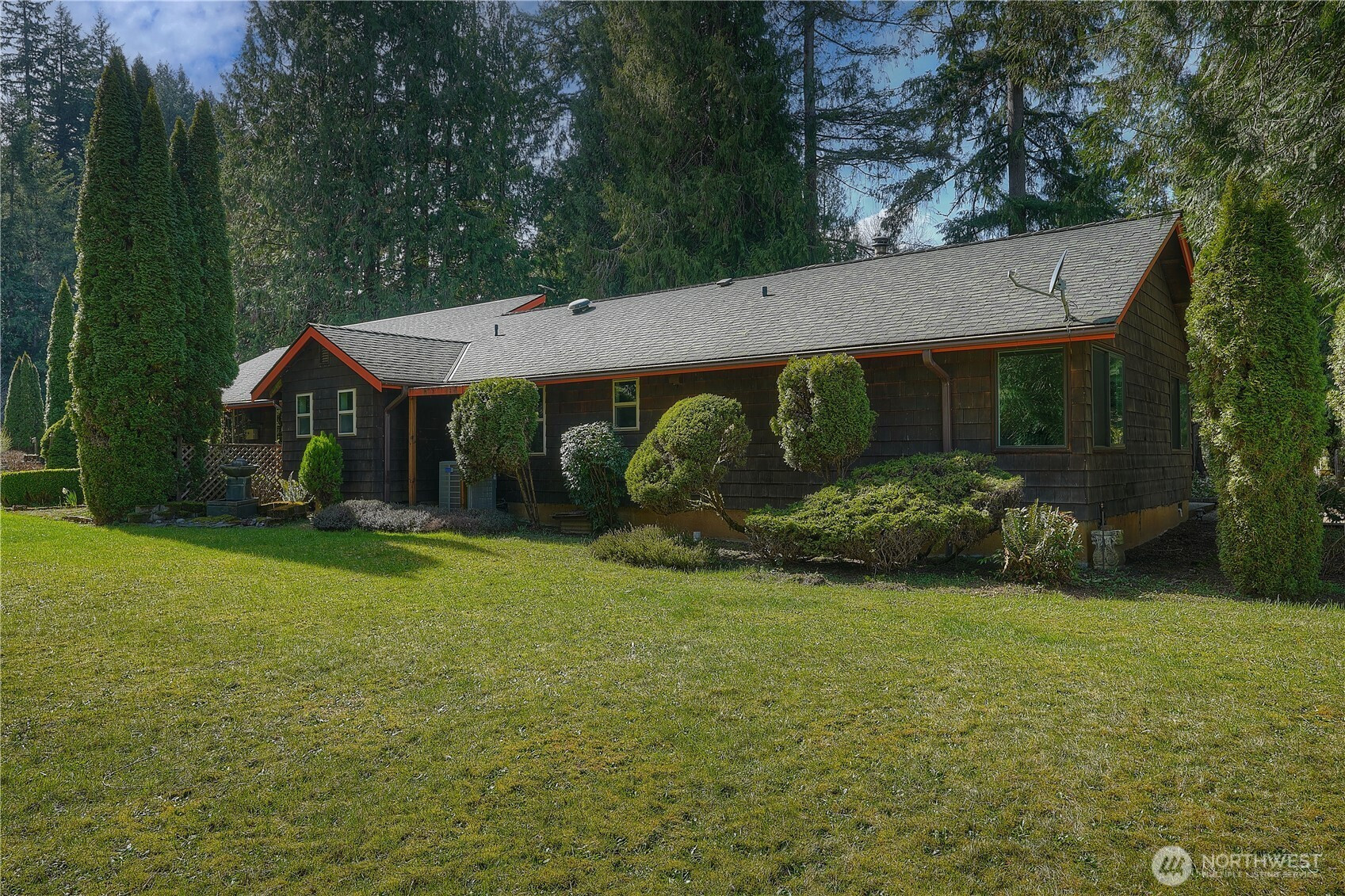 Welcome home to this stunning Northwest retreat offering main-level living, a large shop, and a private setting just minutes from downtown Orting. New wall-to-wall carpeting and updated appliances make this a truly turnkey home ready for its next owner. Inside, you’ll find an impressive 24x32 great room with soaring 15-foot open beam ceilings, abundant natural light, and one of three fireplaces, creating a warm and inviting space for both everyday living and entertaining. The custom kitchen with vaulted ceilings provides an ideal space for cooking and gathering, flowing seamlessly into the main living areas. Situated on a beautifully landscaped property with mature trees, fruit trees, garden space, and thoughtfully designed outdoor areas, this home captures the essence of Pacific Northwest living. Enjoy outdoor entertaining, summer barbecues, and peaceful privacy with multiple areas to relax and unwind. The grounds offer potential for hosting events or creating your own private venue-style setting. A large, detached shop adds versatility for storage or hobbies. Conveniently located near downtown Orting, parks, schools, and commuter routes, this property combines privacy, function, and lifestyle in one exceptional opportunity.