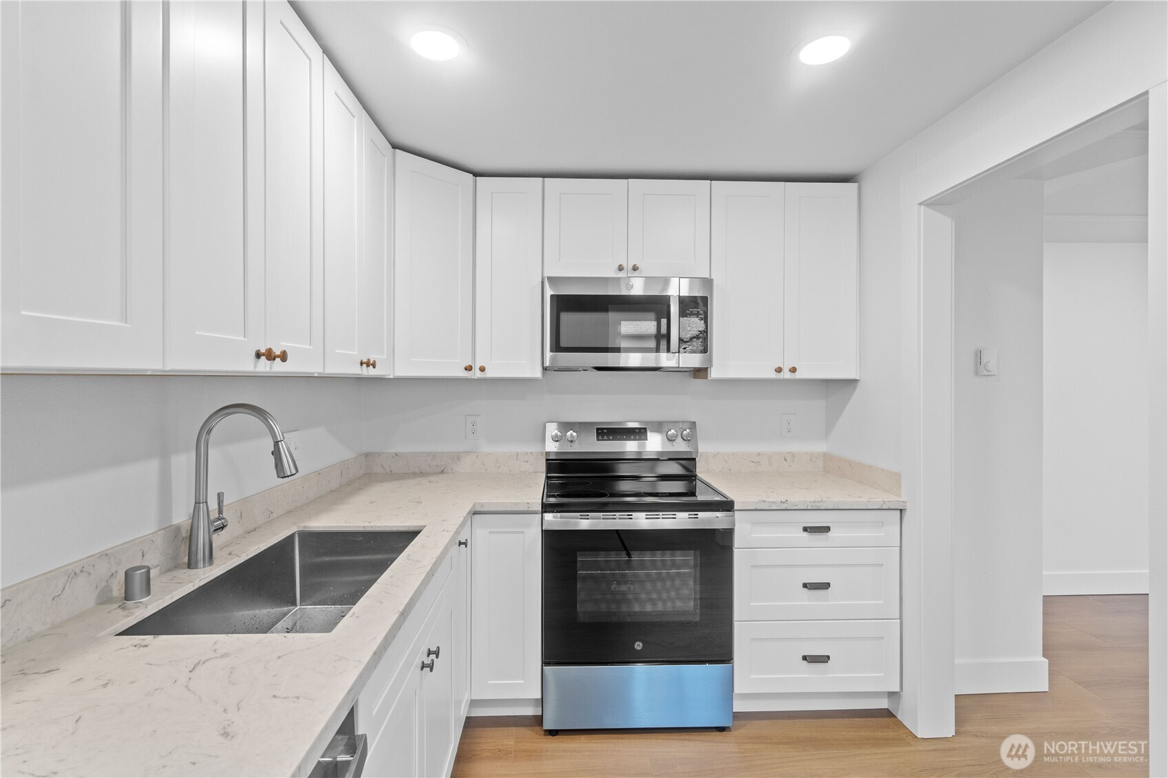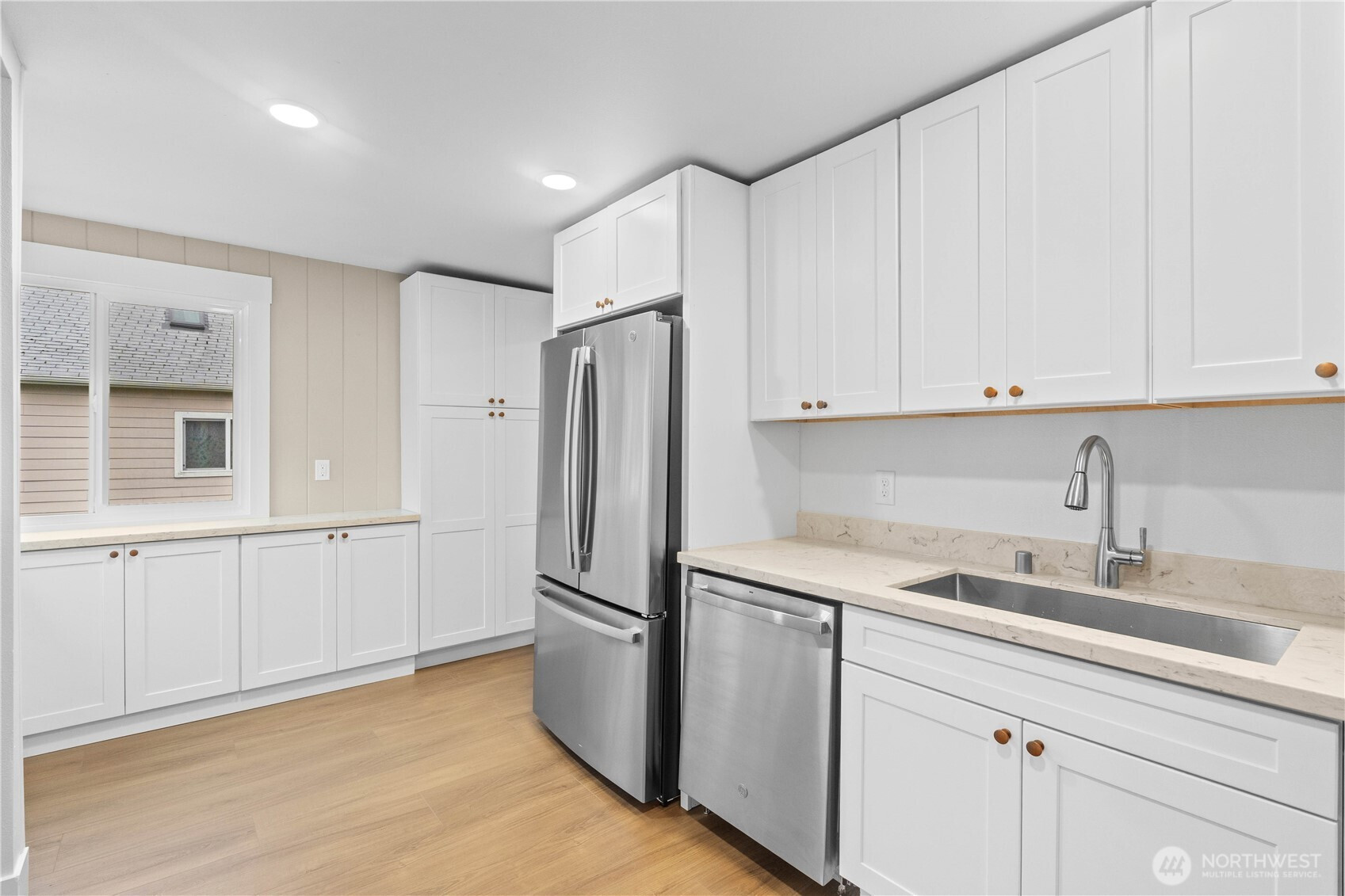 Beautifully updated single story home with major upgrades throughout, including a new roof, electrical, plumbing, kitchen, water heater, flooring, tile, and bathrooms. Vinyl windows provide efficiency. The excellent floor plan features a spacious new kitchen with abundant counter space, ample cabinetry and new stainless steel appliances. Enjoy the large, fully fenced backyard with a concrete pad ready for a new shed or garage. Large lot with alley access could mean the potential for a DADU build in the future. Conveniently located near downtown Tacoma, local parks, and easy I-5 access for commuting. Pre-inspection completed and is available by request.